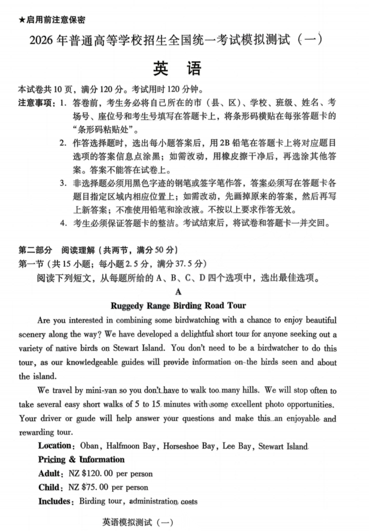 【广东卷】广东省2026年普通高等学校招生全国统一考试模拟测试(一)(广东一模)(3.17-3.19) 数学物理英语语文历史试题卷+答案