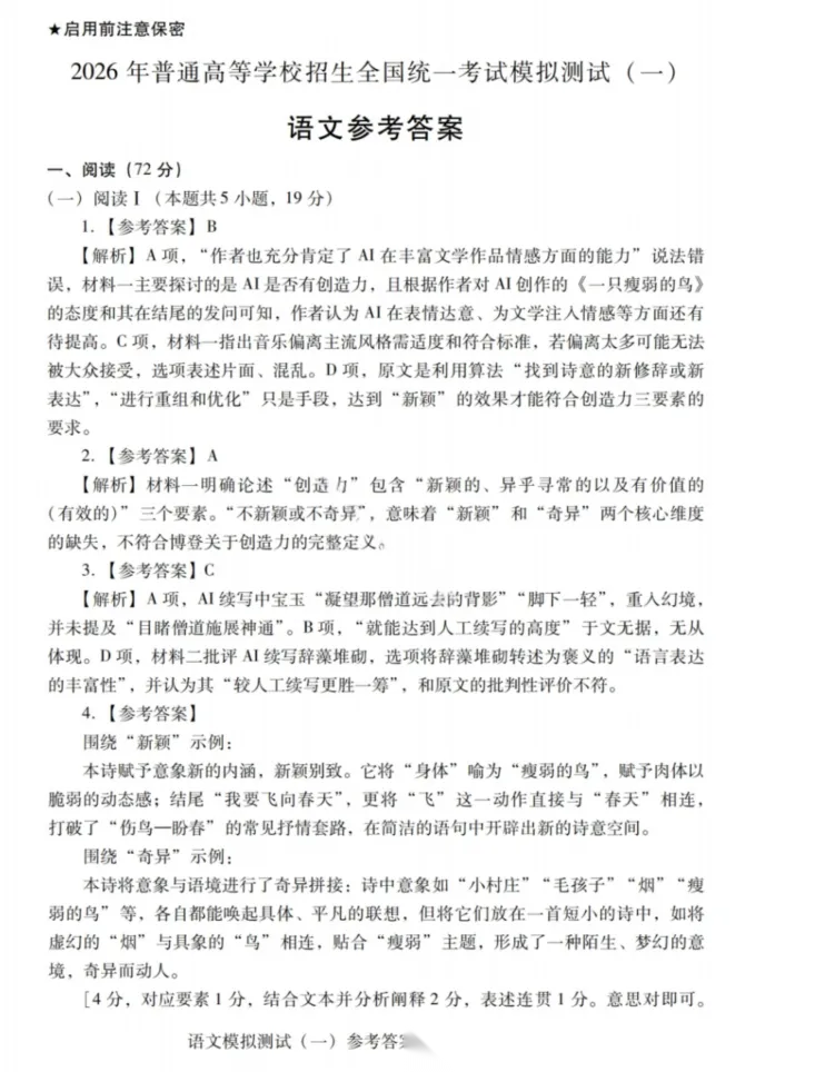 【安徽卷】安徽省安庆市2026年高三年级模拟考试(安庆二模)(3.18-3.20) 数学语文试题卷+答案 【安徽卷】安徽省安庆市2026年高三年级模拟考试(安庆二模)(3.18-3.20) 数学语文试题卷+答案