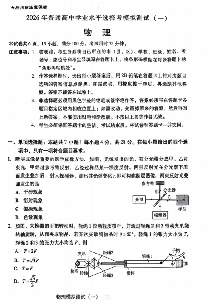 【江苏卷】江苏省2025-2026学年度苏锡常镇高三年级教学情况调研(一)(苏锡常镇一模)(3.17-3.19)数学物理英语语文历史试题卷+答案 【江苏卷】江苏省2025-2026学年度苏锡常镇高三年级教学情况调研(一)(苏锡常镇一模)(3.17-3.19)数学物理...