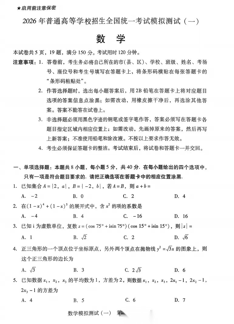 【江西卷】江西省南昌市2026届南昌市高三年级三月测试暨一模考试(南昌一模)(3.18-3.20) 数学语文试题卷+答案 【江西卷】江西省南昌市2026届南昌市高三年级三月测试暨一模考试(南昌一模)(3.18-3.20) 数学...
