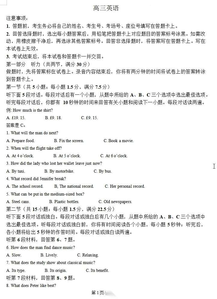 【广东卷】广东省广州市2026年广州市普通高中毕业班综合测试(一)(广州一模)(3.17-3.19) 数学物理英语语文历史试题卷+答案 【广东卷】广东省广州市2026年广州市普通高中毕业班综合测试(一)(广州一模)(3.17-3.19) 数学物理英...