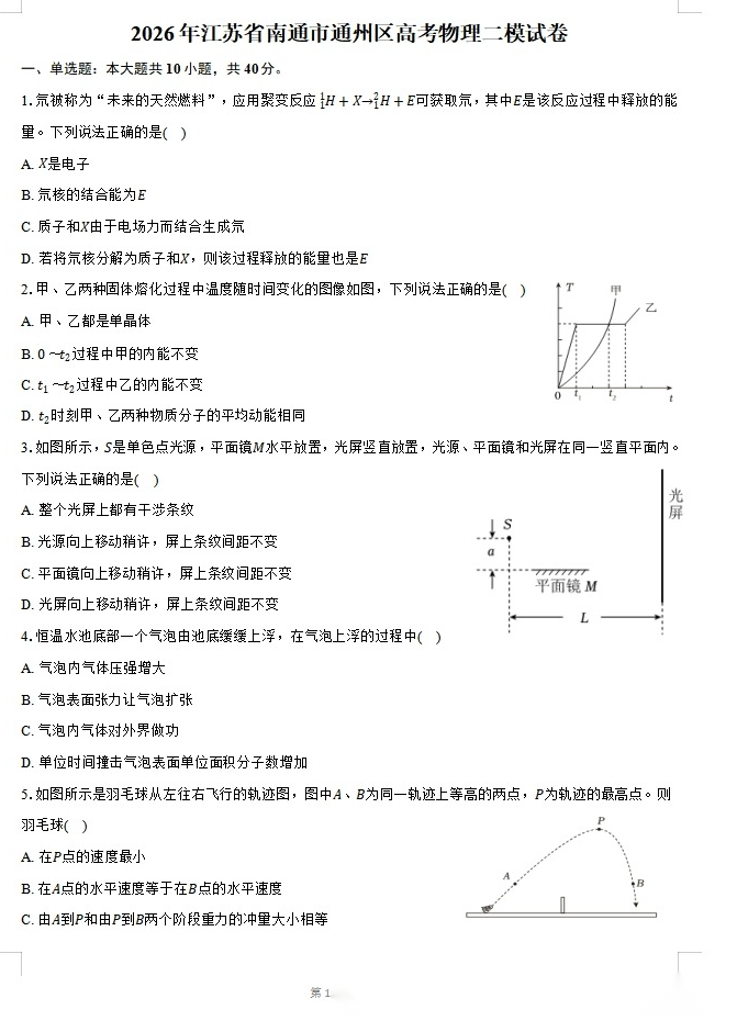 【江苏卷】江苏省2025-2026学年度苏锡常镇高三年级教学情况调研(一)(苏锡常镇一模)(3.17-3.19)数学物理英语语文历史试题卷+答案 【江苏卷】江苏省2025-2026学年度苏锡常镇高三年级教学情况调研(一)(苏锡常镇一模)(3.17-3.19)数学物理...