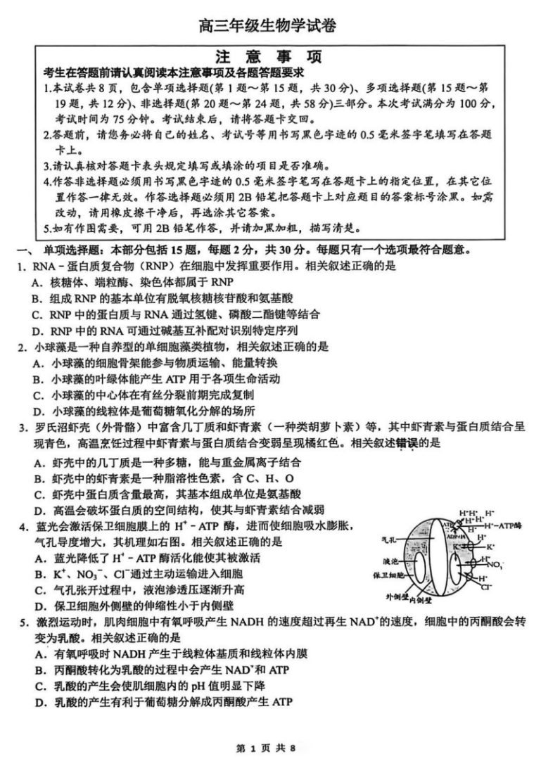 【江苏卷】江苏省南通市通州区2026届高三下学期模拟预测(南通1.5模)(3.11-3.12) 理科全科试题卷+答案