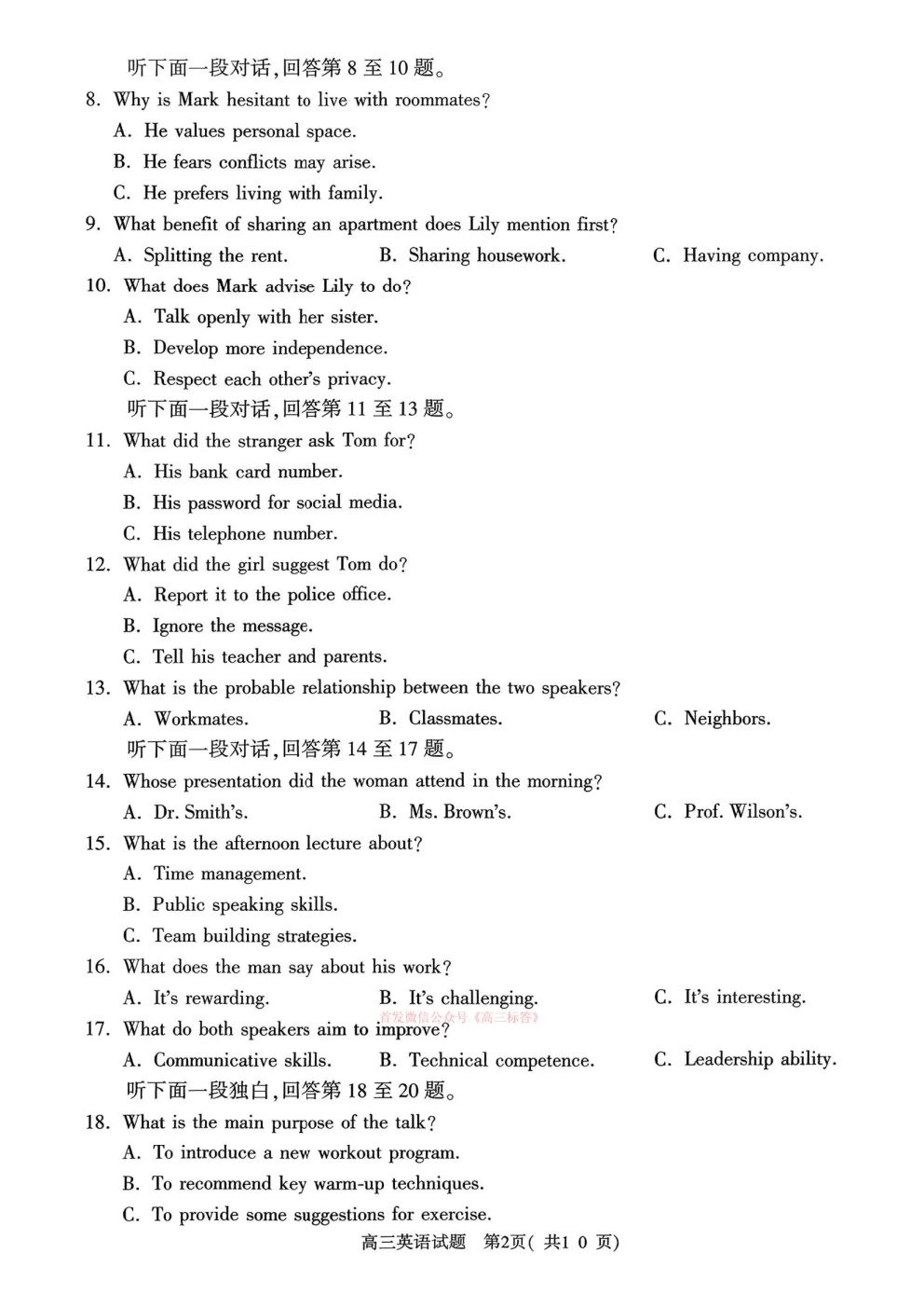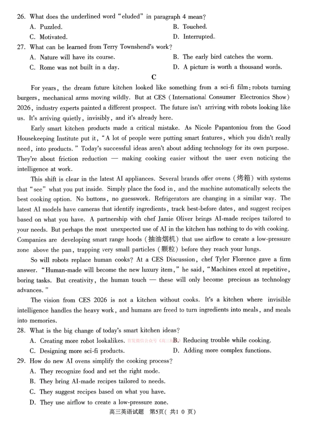 2026届湖北省楚天协作体高三3月联考 2026届湖北省楚天协作体高三3月联考