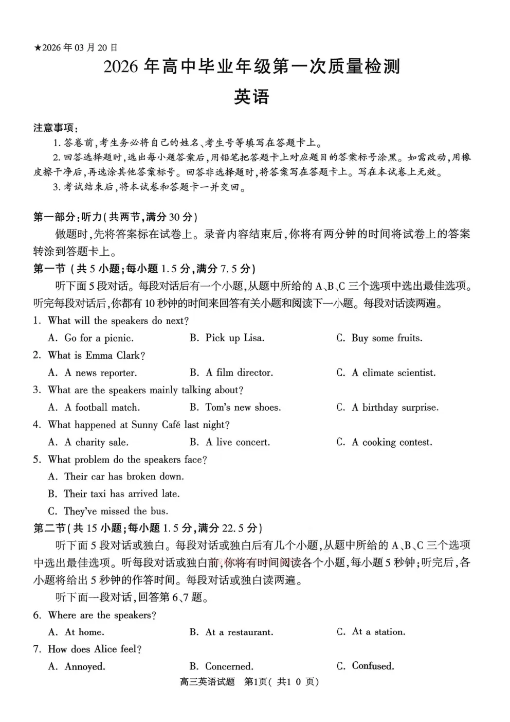 2026河南五市高三第一次模拟考试全科下载