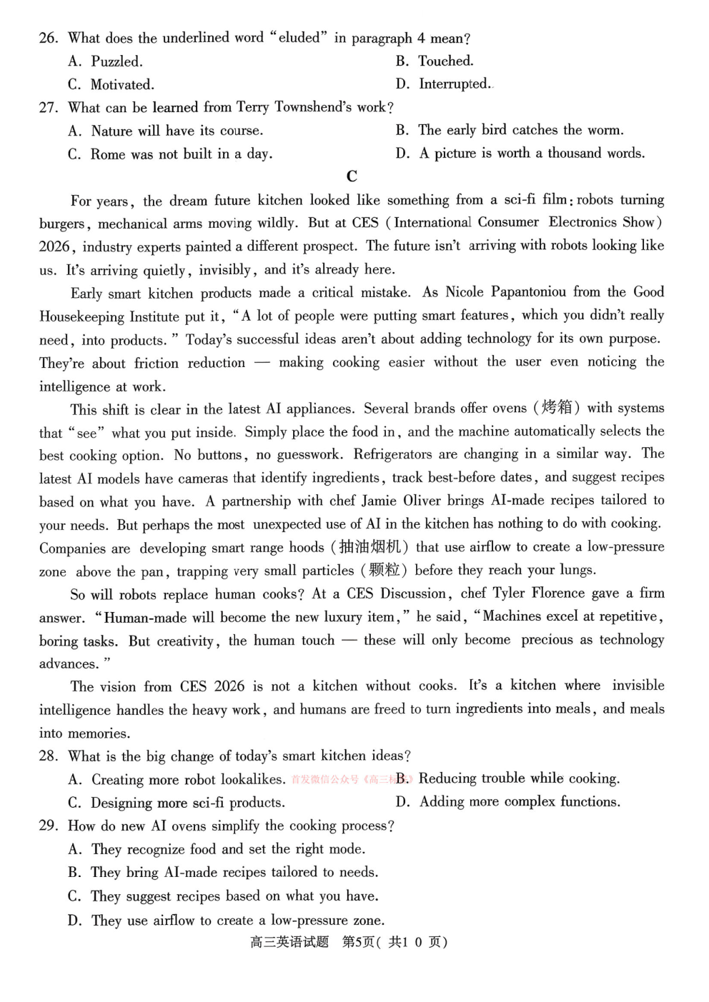 四川省2026届高三下学期3月联考(26-157C)下载 四川省2026届高三下学期3月联考(26-157C)下载