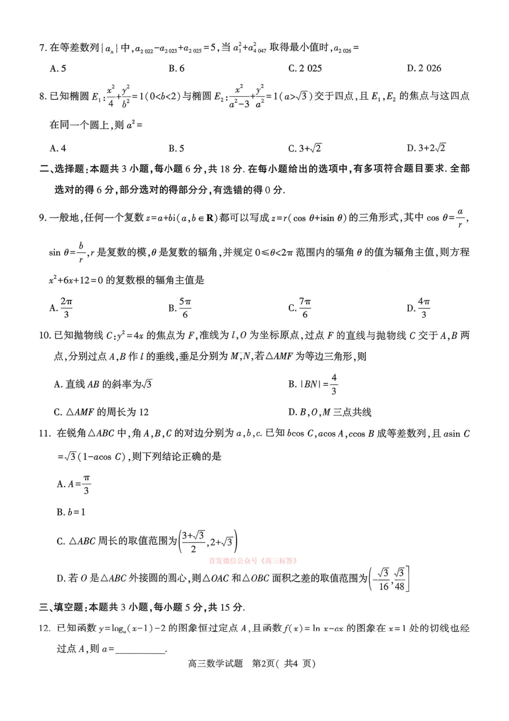 四川省2026届高三下学期3月联考(26-157C)下载 四川省2026届高三下学期3月联考(26-157C)下载