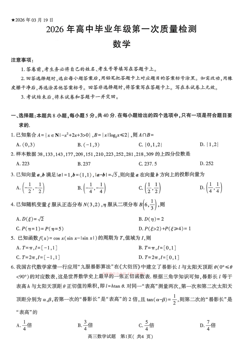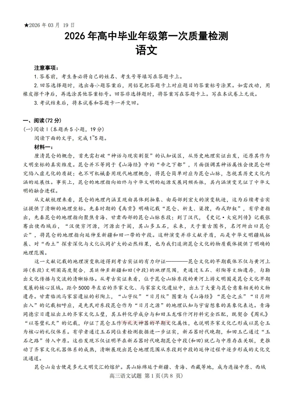 【南昌一模】南昌2026届高三年级三月测试全科下载 【南昌一模】南昌2026届高三年级三月测试全科下载