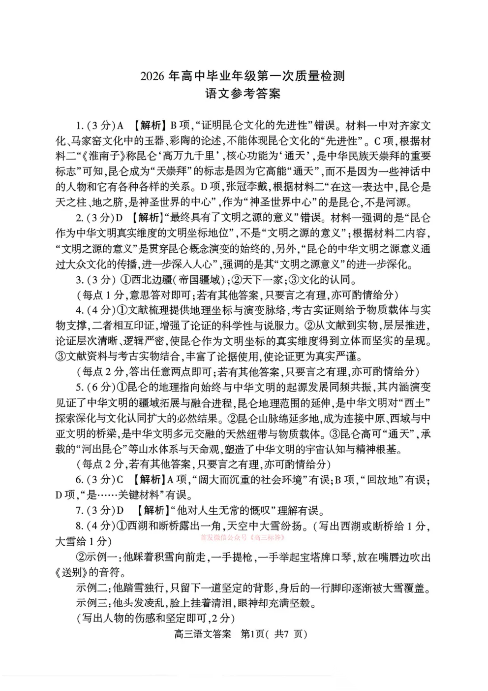 2026河南五市高三第一次模拟考试英语答案 2026河南五市高三第一次模拟考试英语答案