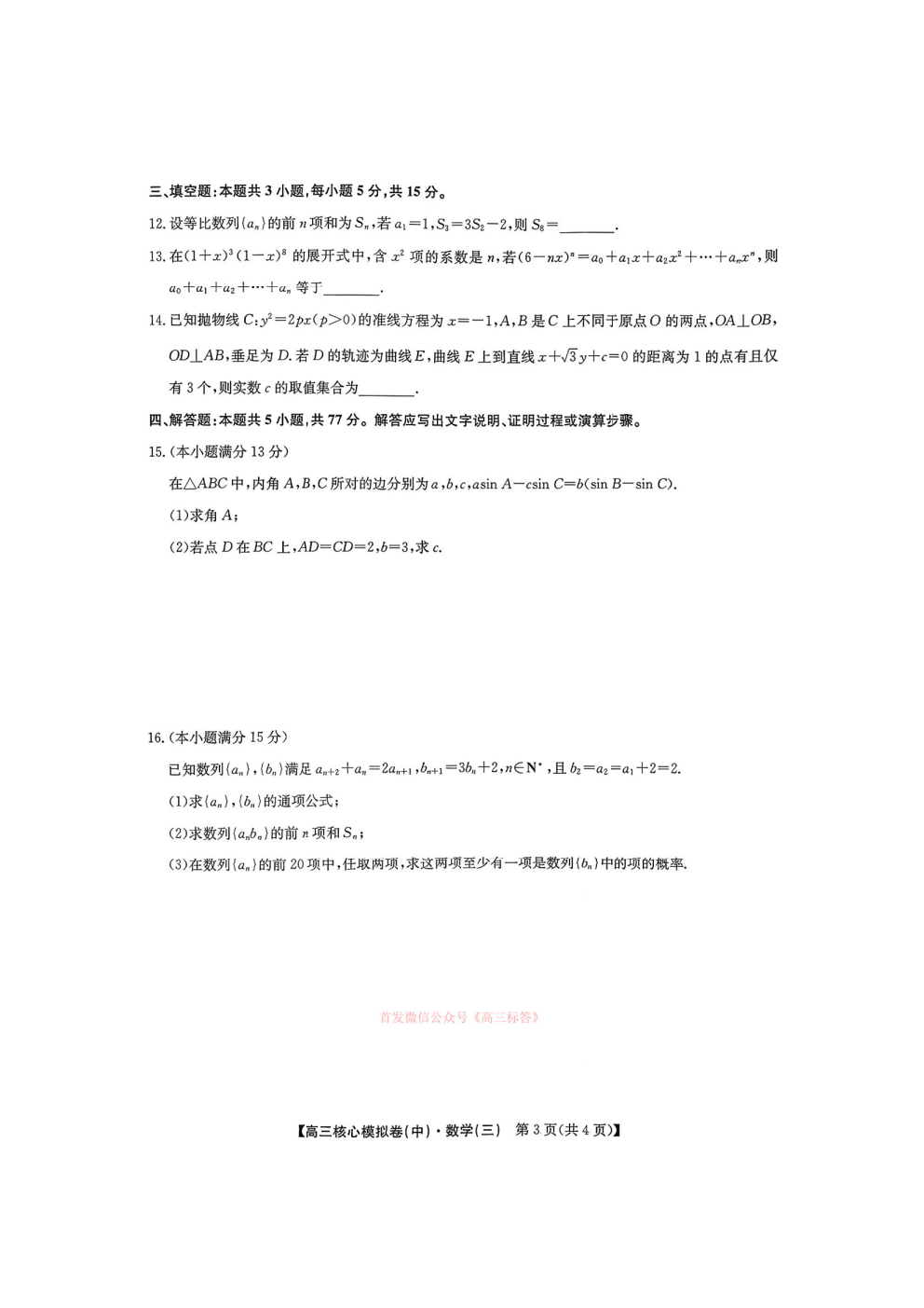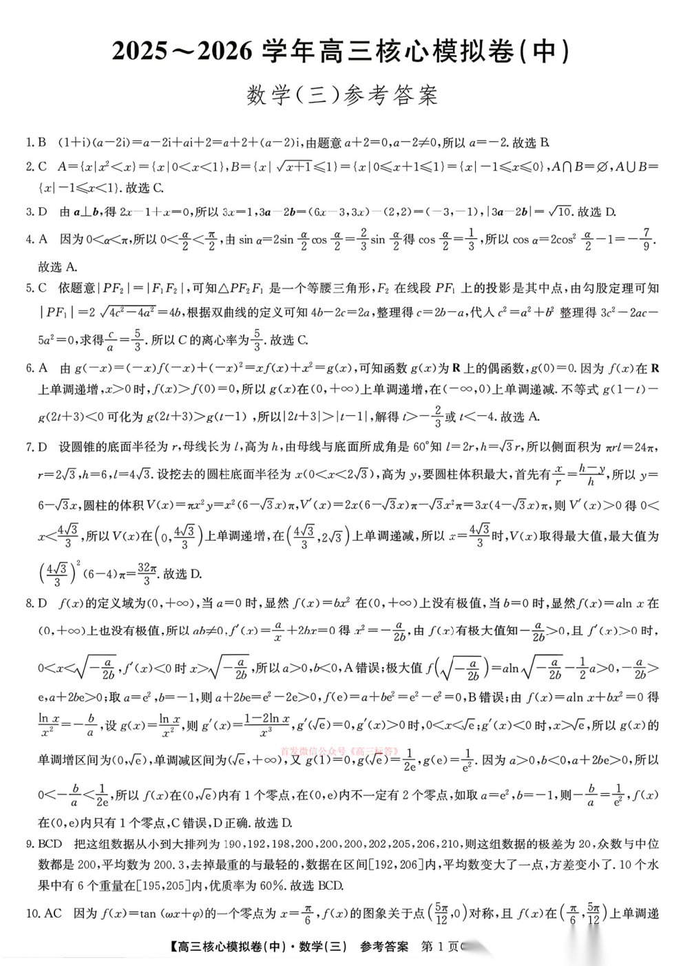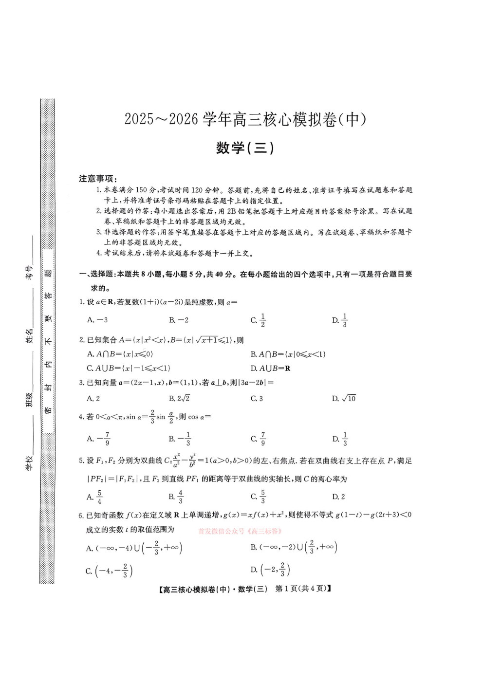 九师联盟2025-2026学年高三核心模拟卷中三下载