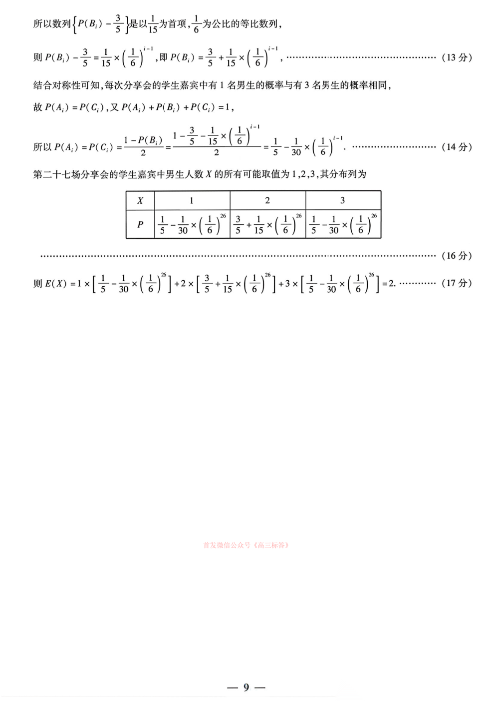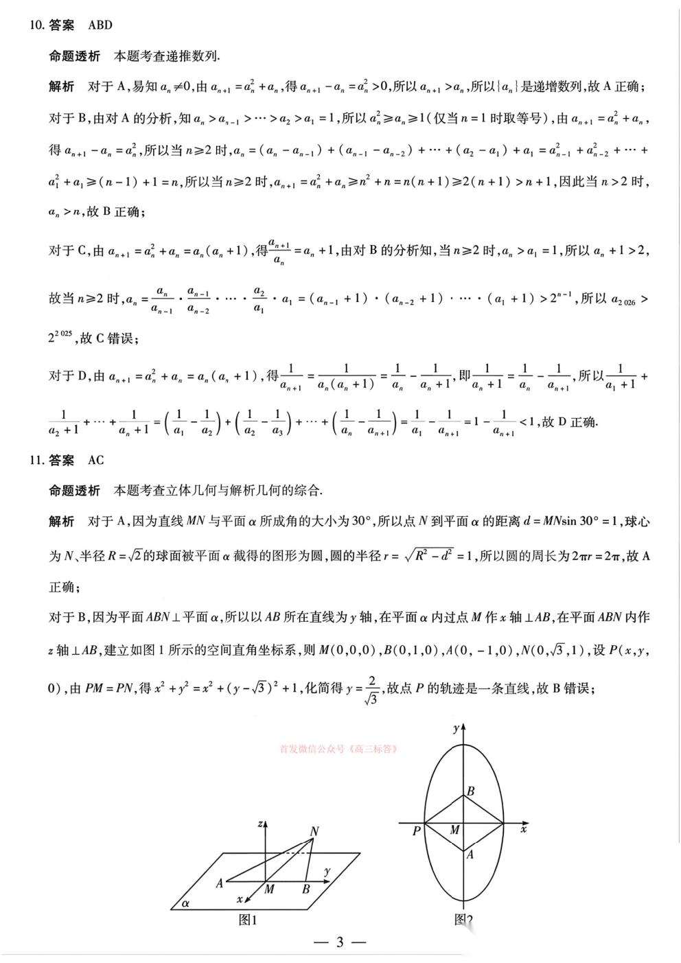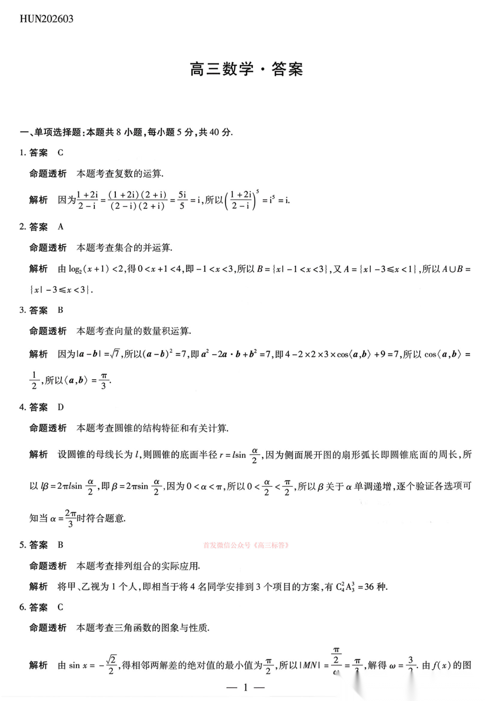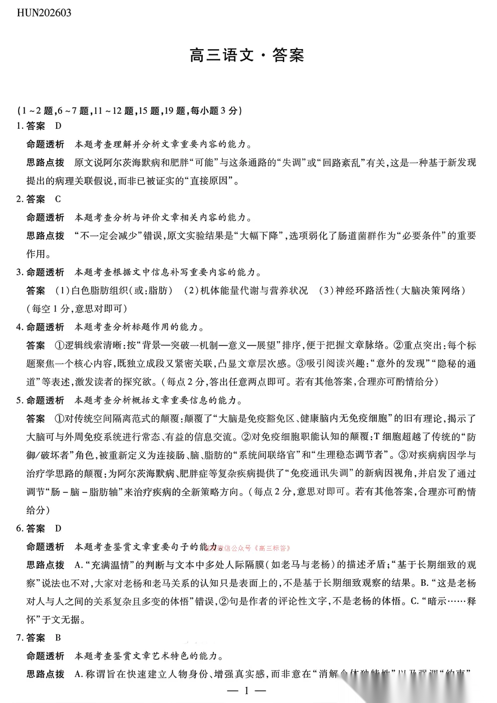 2026湖南高三3月联考答案