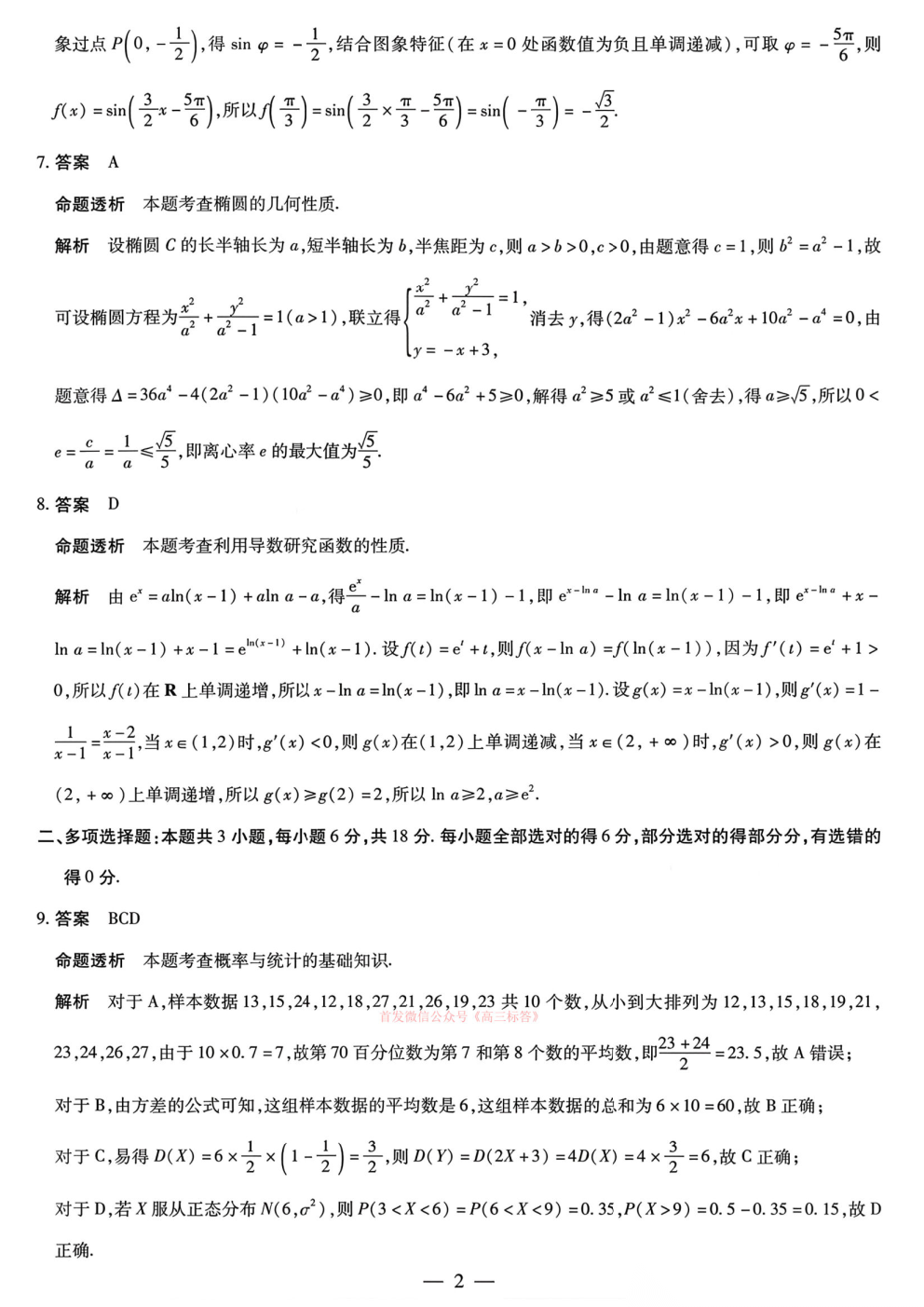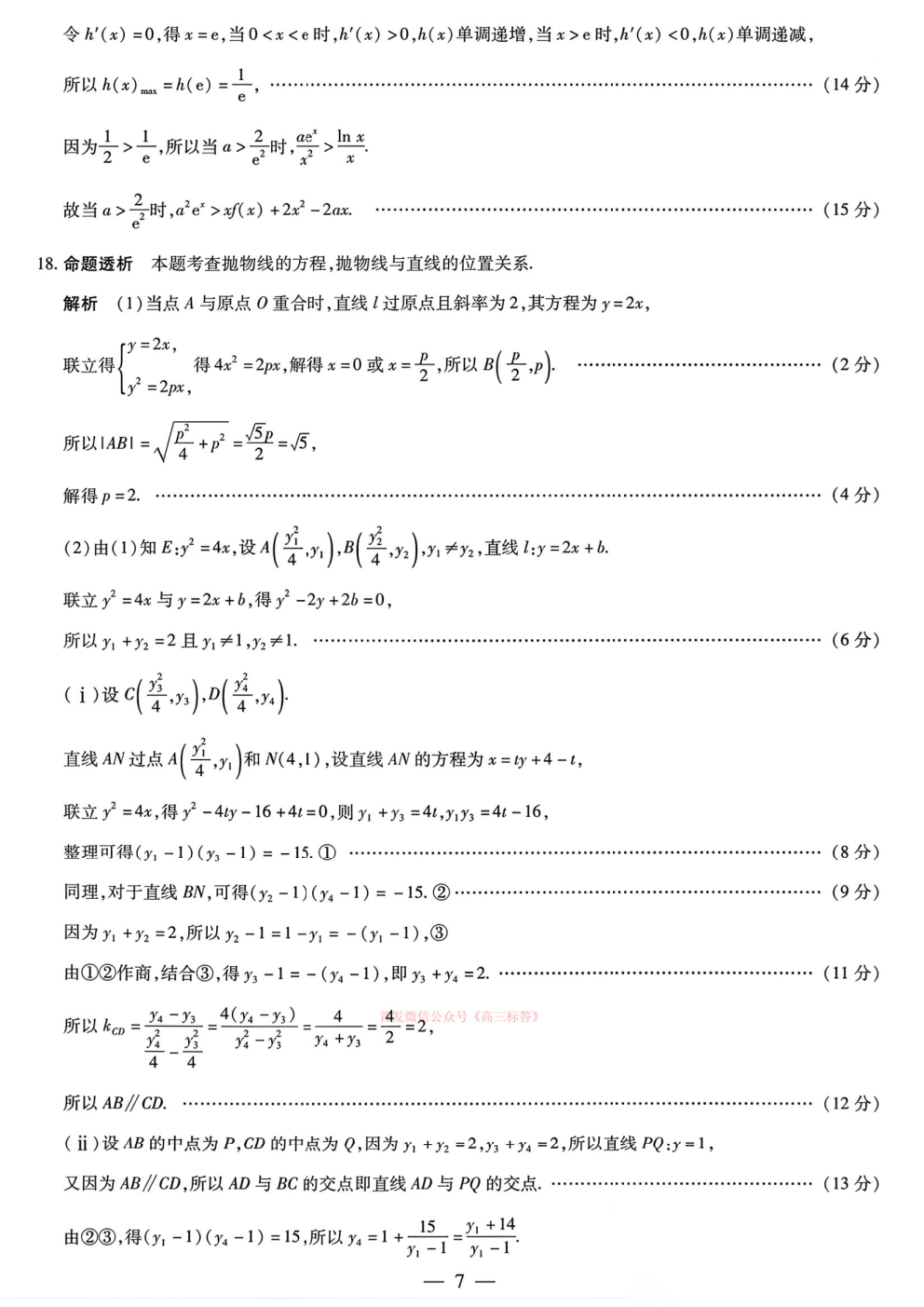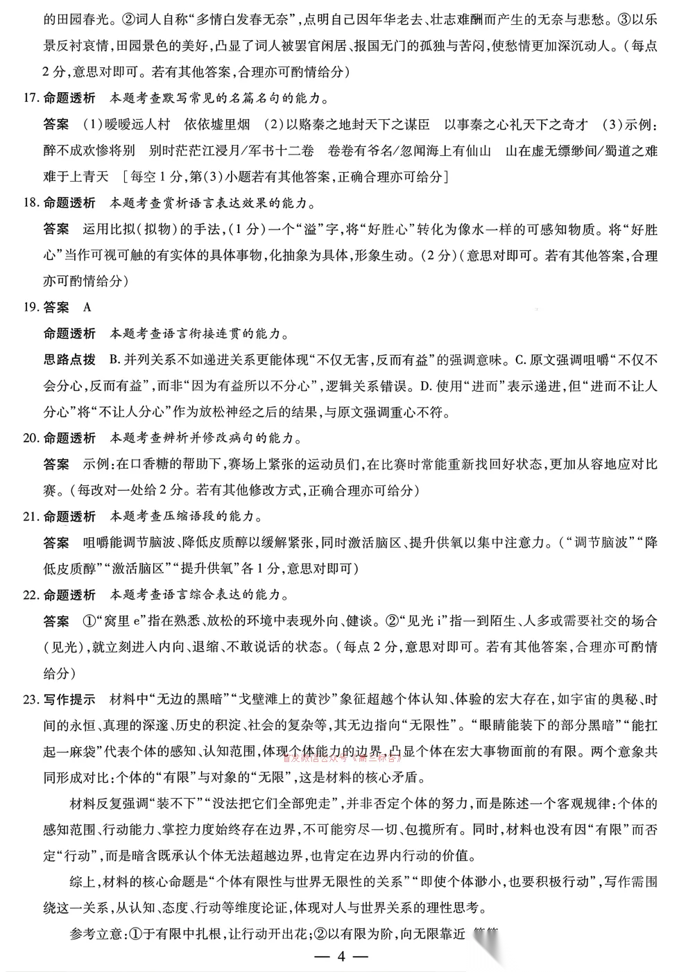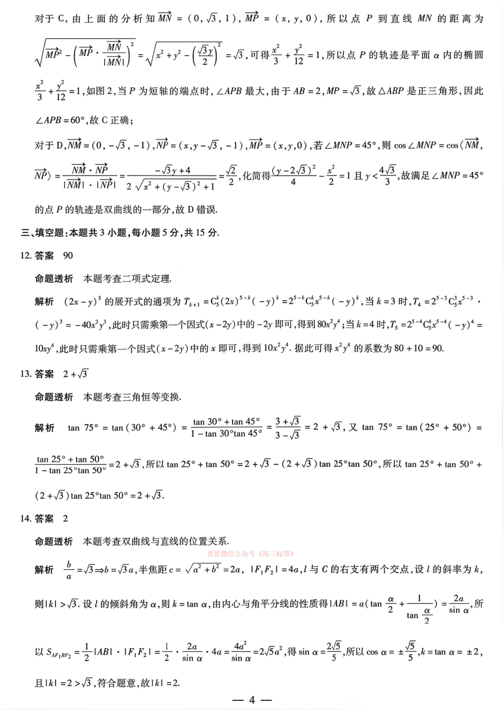 2026湖南高三3月联考答案