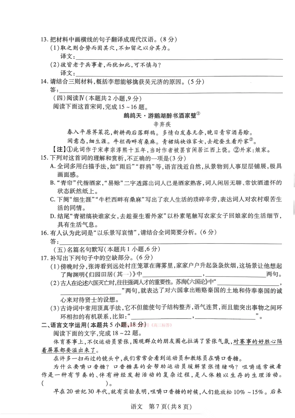九师联盟2025-2026学年高三核心模拟卷中三下载 九师联盟2025-2026学年高三核心模拟卷中三下载