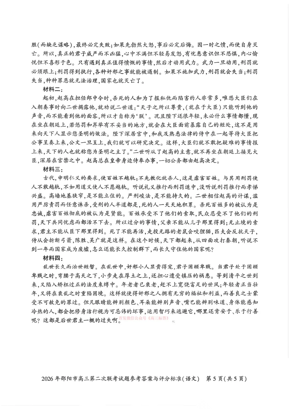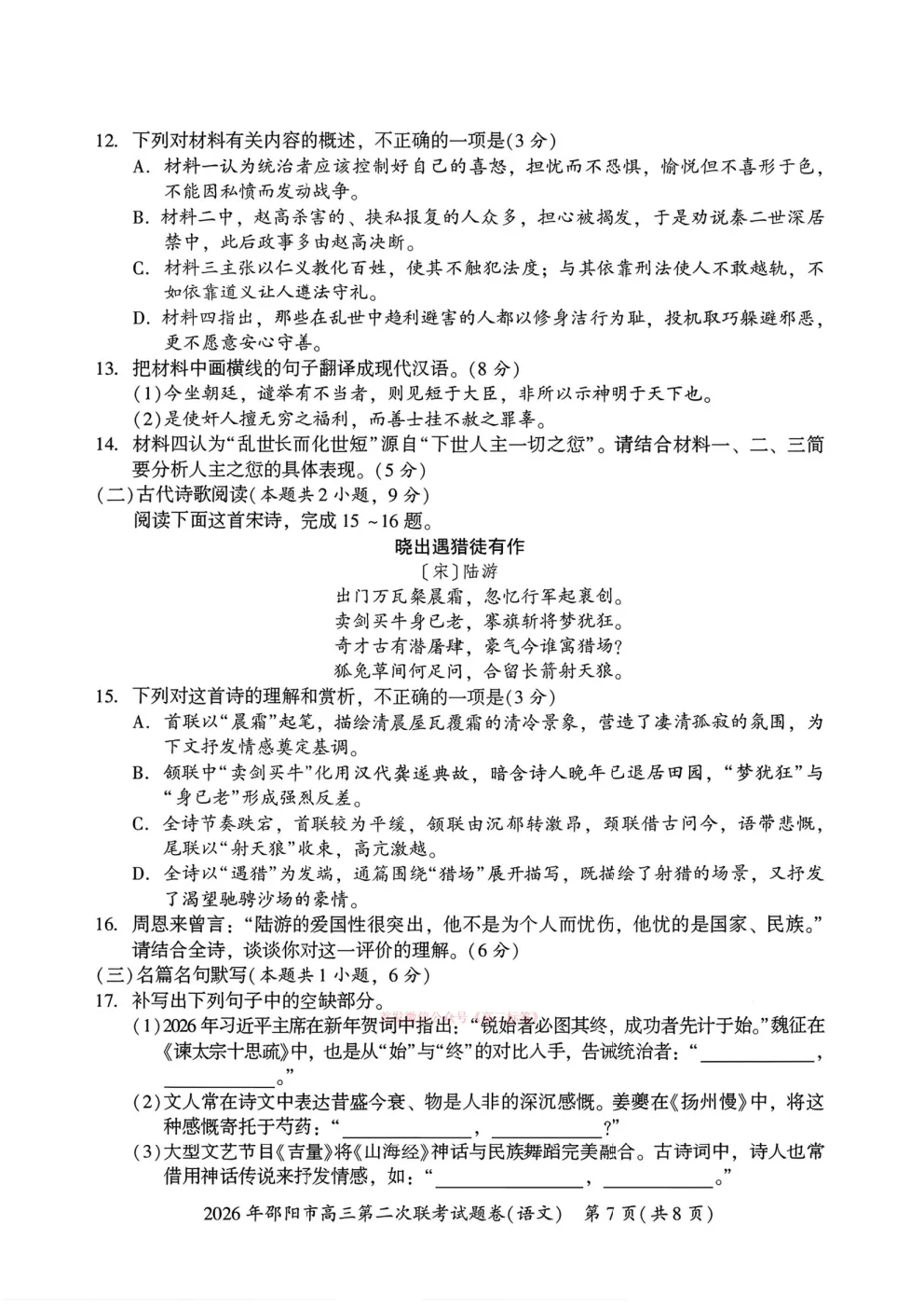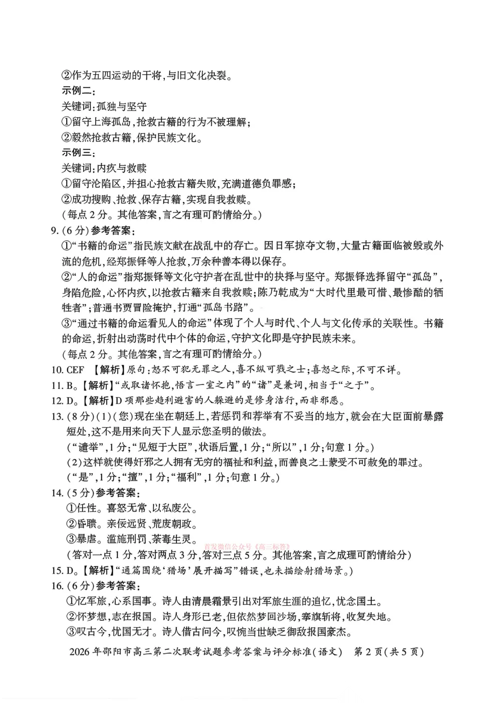 【邵阳二模】2026年邵阳市高三第二次联考答案