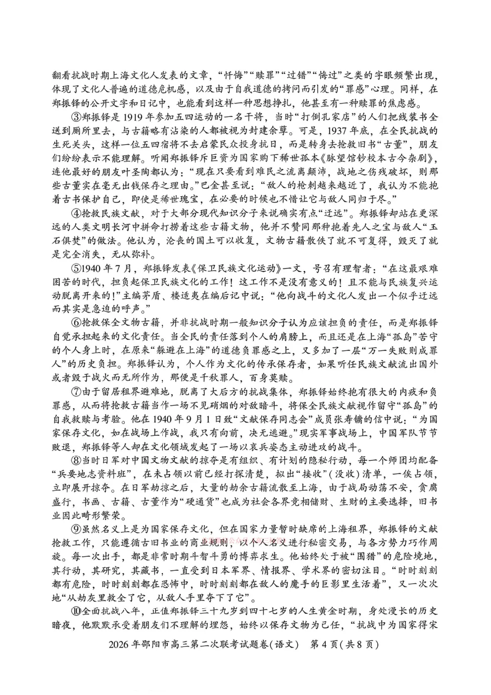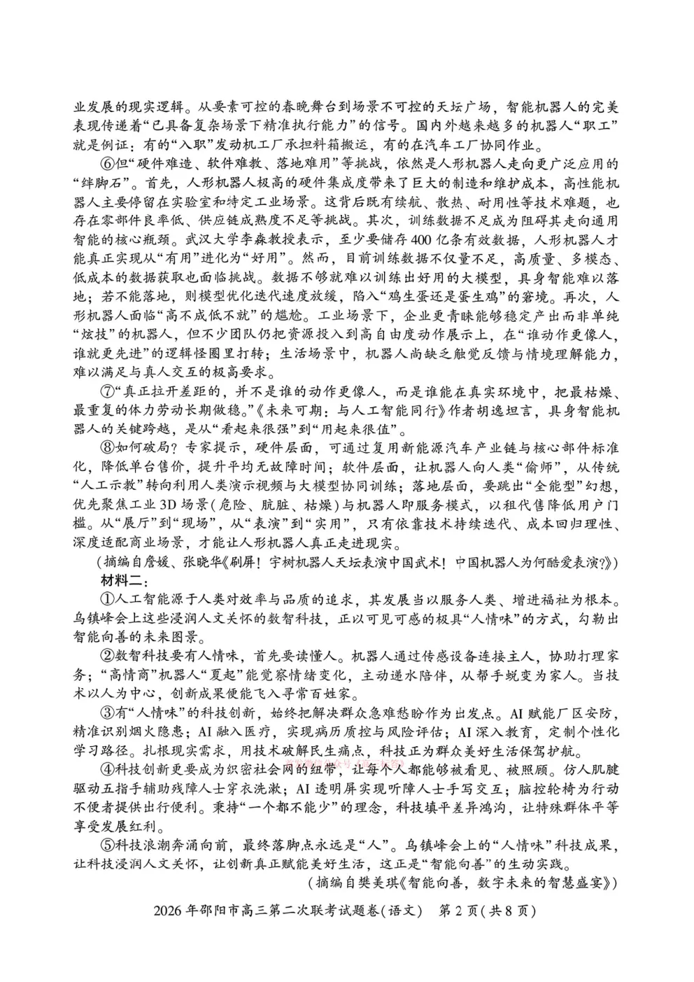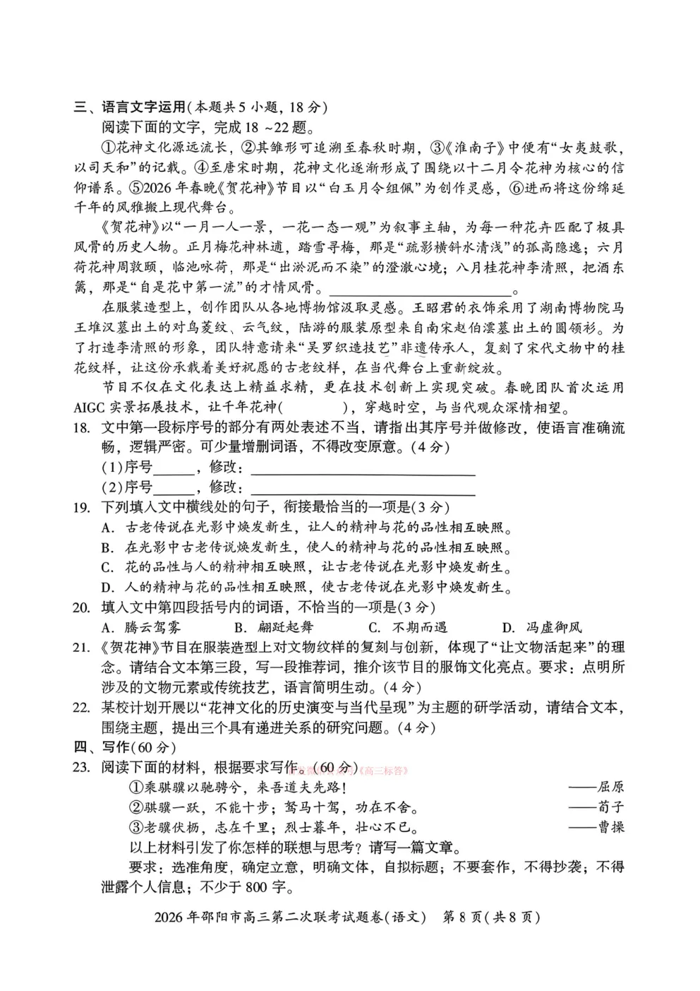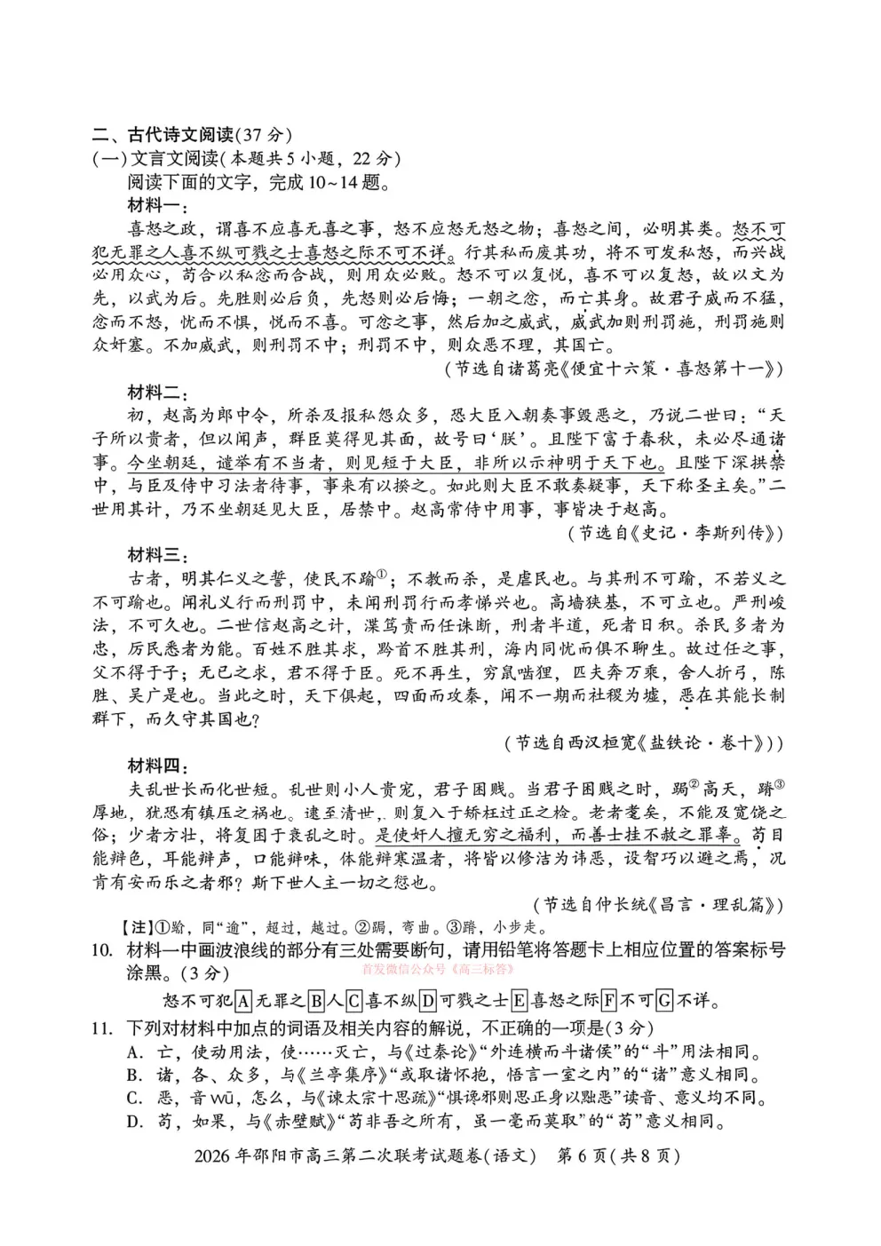 【邵阳二模】2026年邵阳市高三第二次联考答案