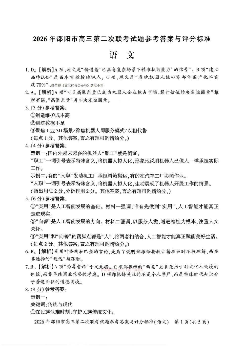 2026河南五市高三第一次模拟考试英语答案 2026河南五市高三第一次模拟考试英语答案