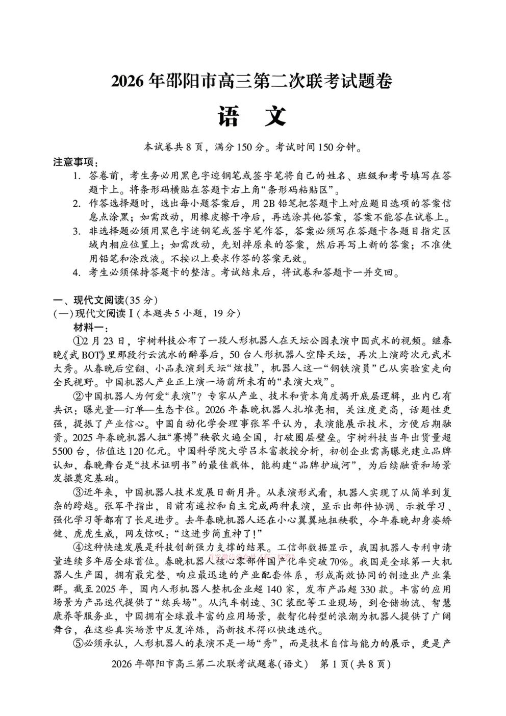【南昌一模】南昌2026届高三年级三月测试全科下载 【南昌一模】南昌2026届高三年级三月测试全科下载
