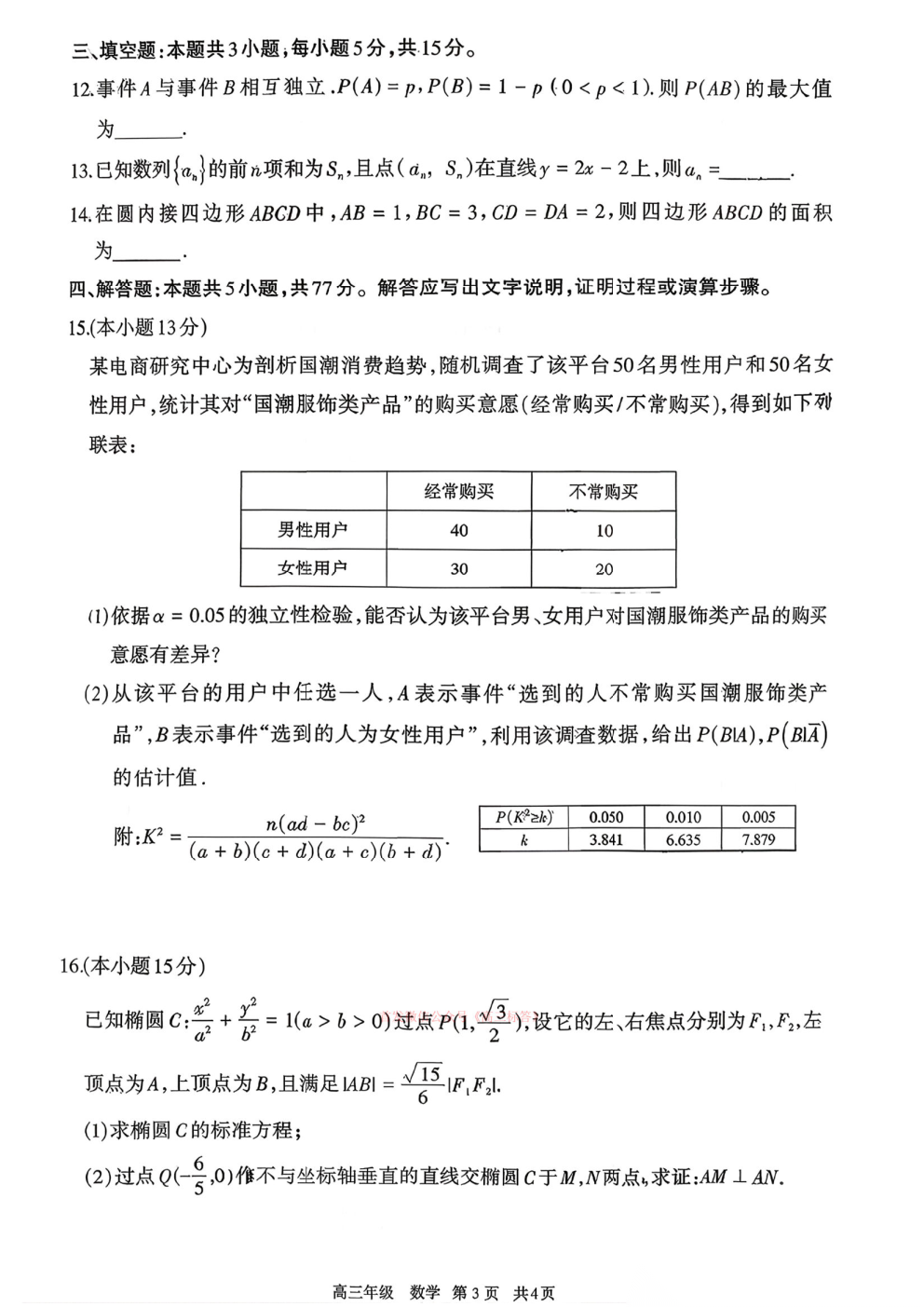 2026湖南高三3月联考答案 2026湖南高三3月联考答案
