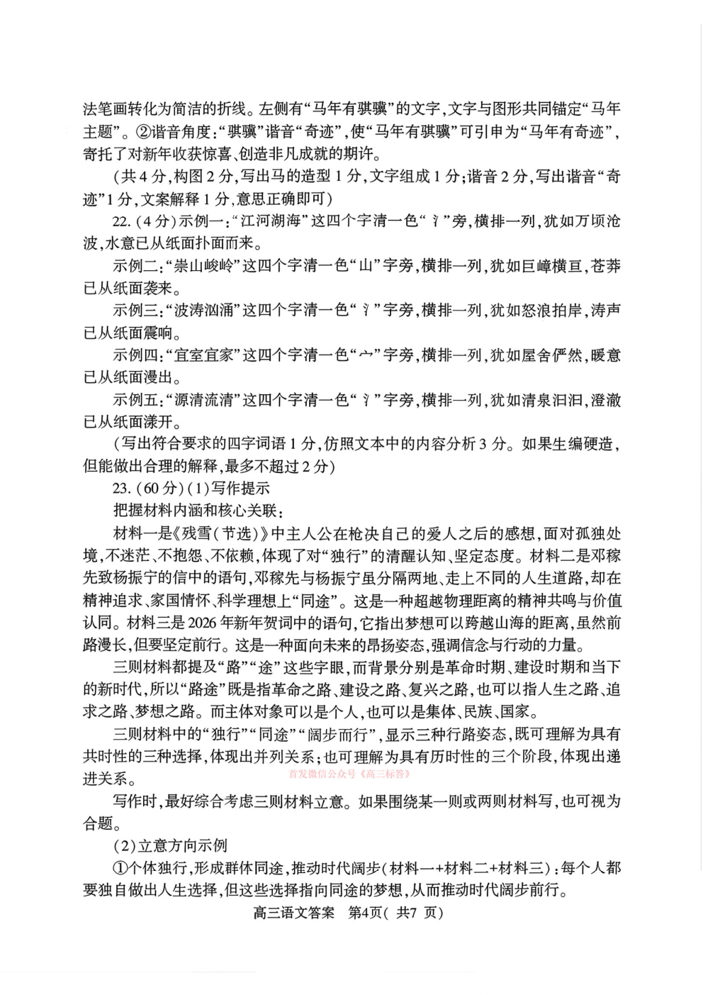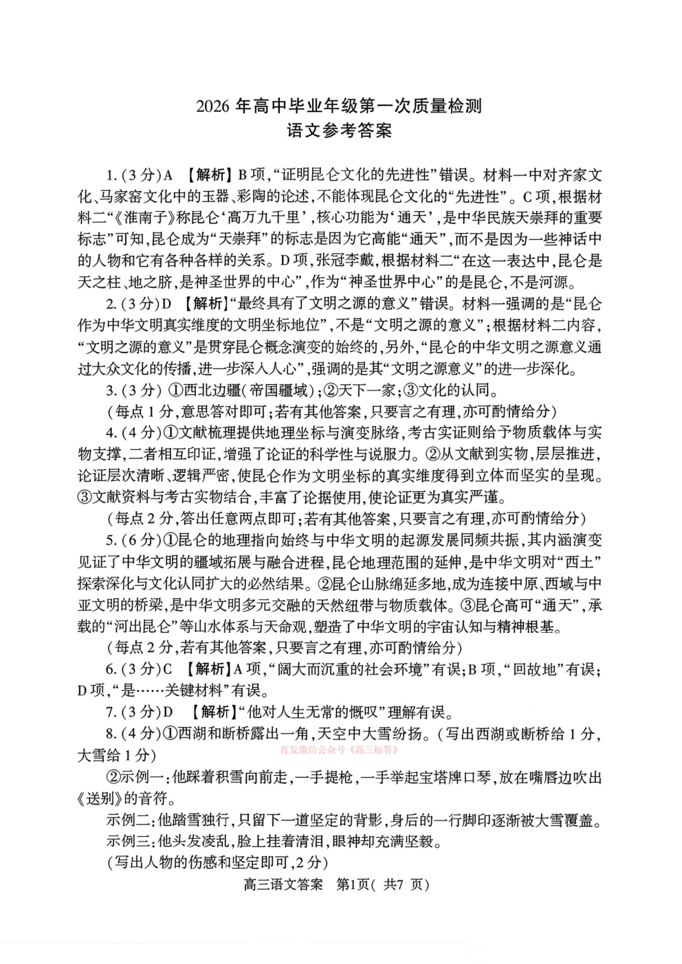 2026湖南高三3月联考答案 2026湖南高三3月联考答案