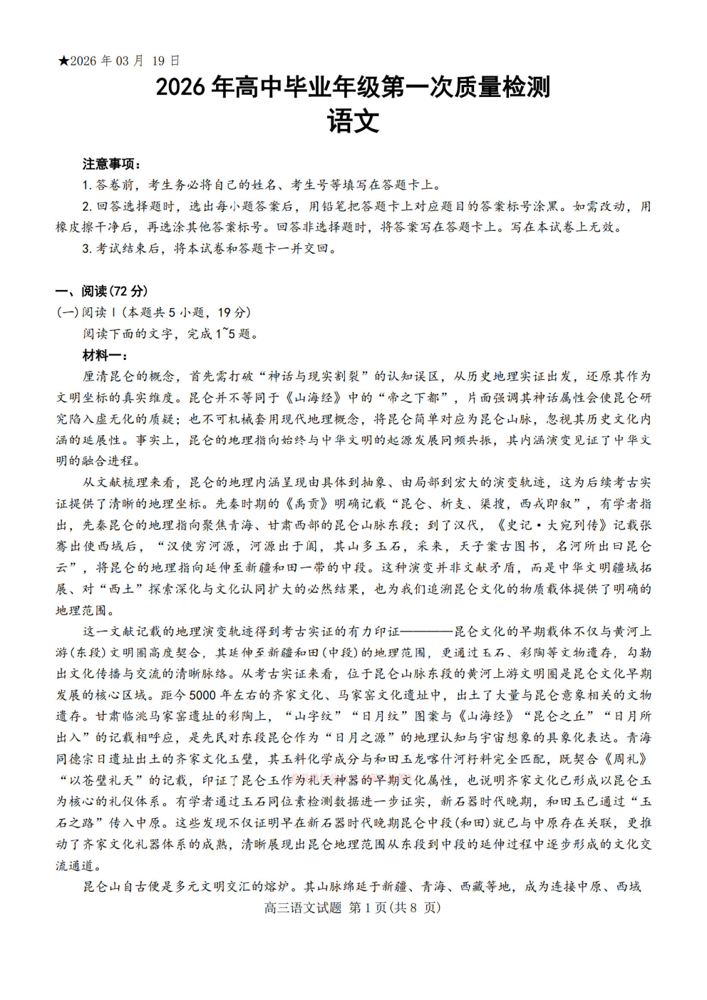 【南昌一模】南昌2026届高三年级三月测试下载 【南昌一模】南昌2026届高三年级三月测试下载