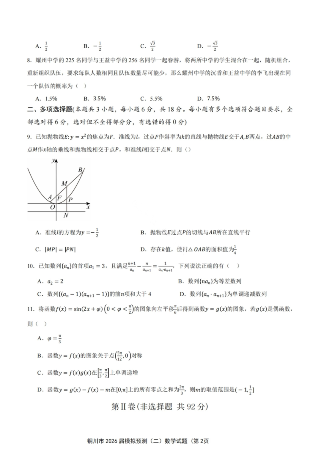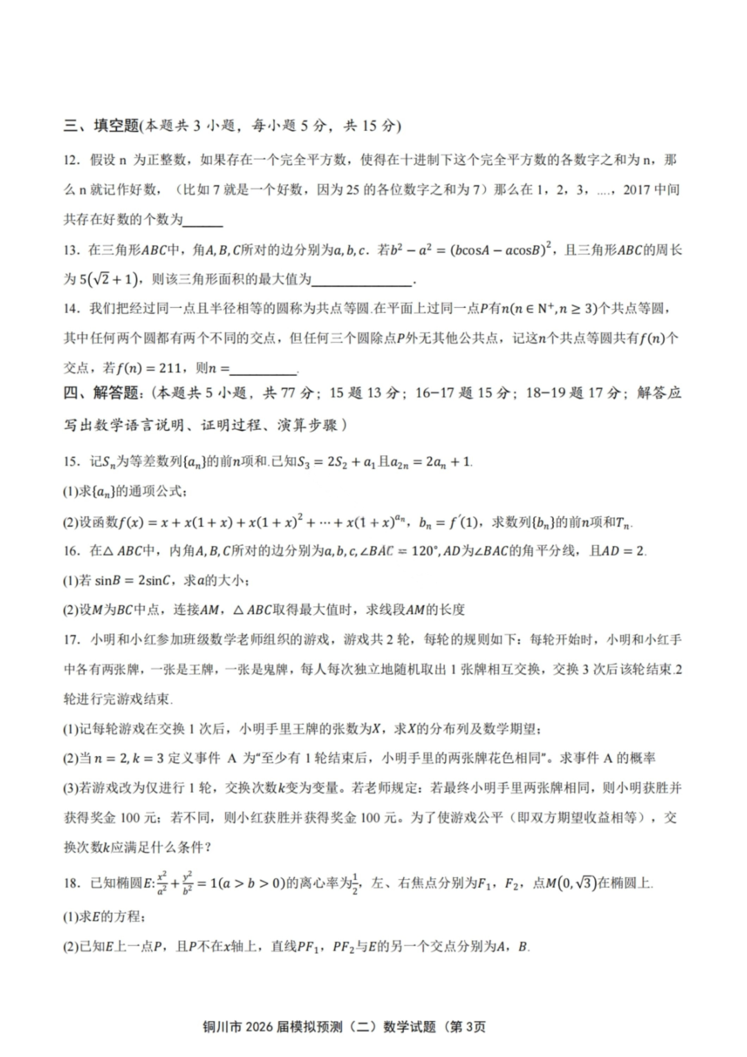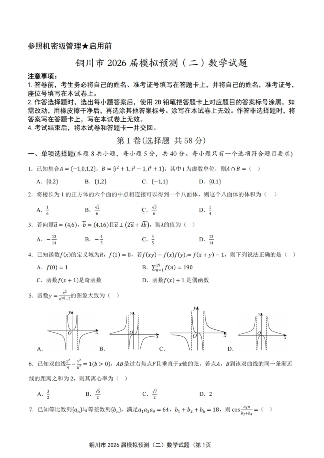 陕西省铜川市2026届高三第二次模拟考试(铜川二模)