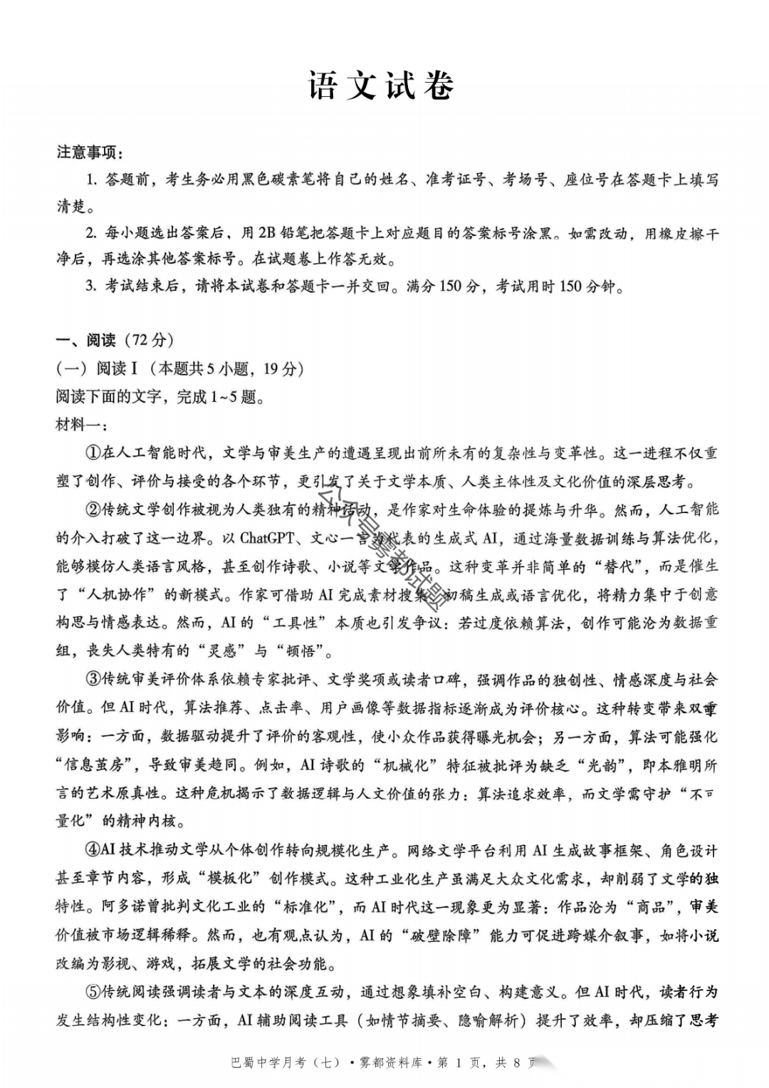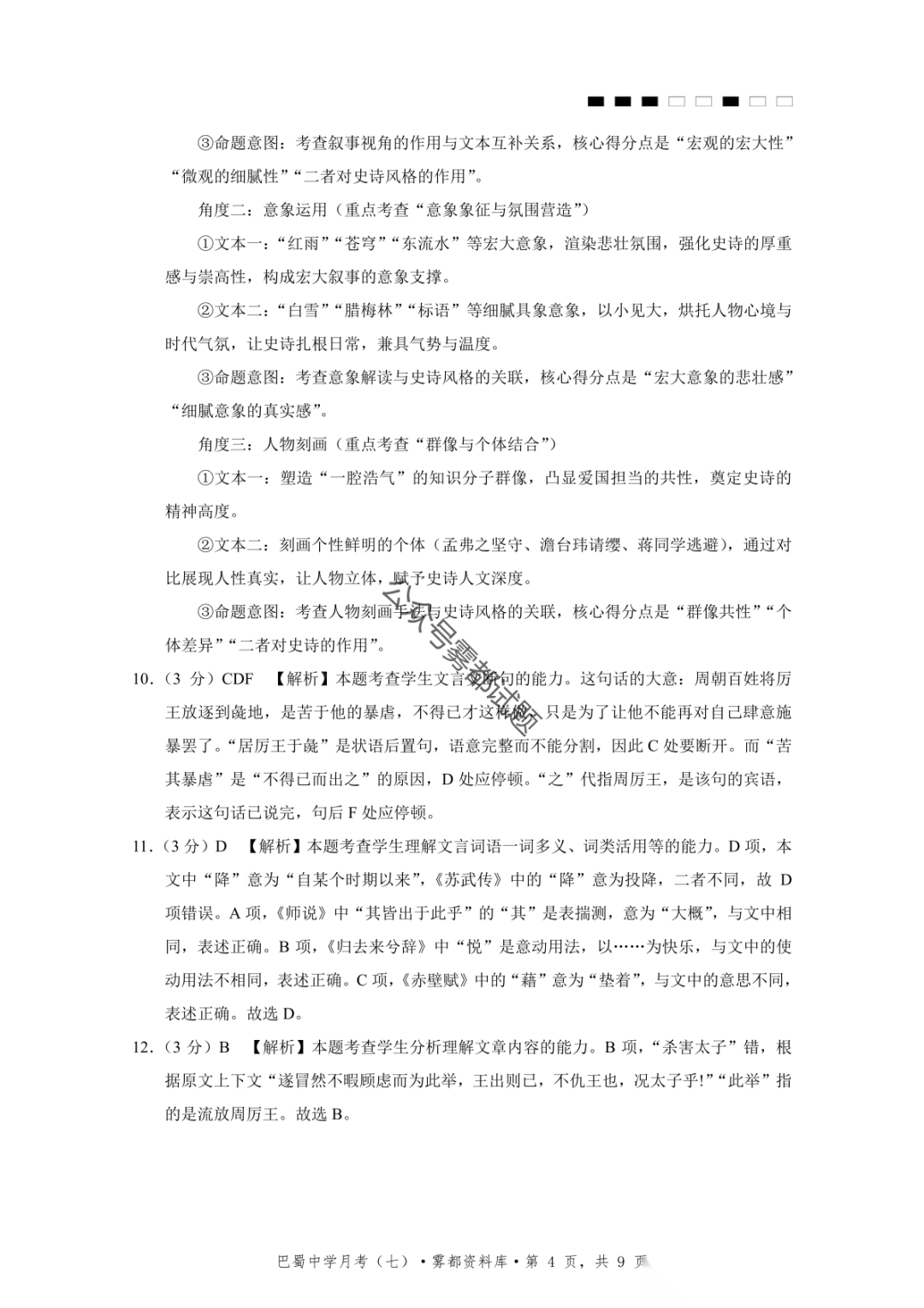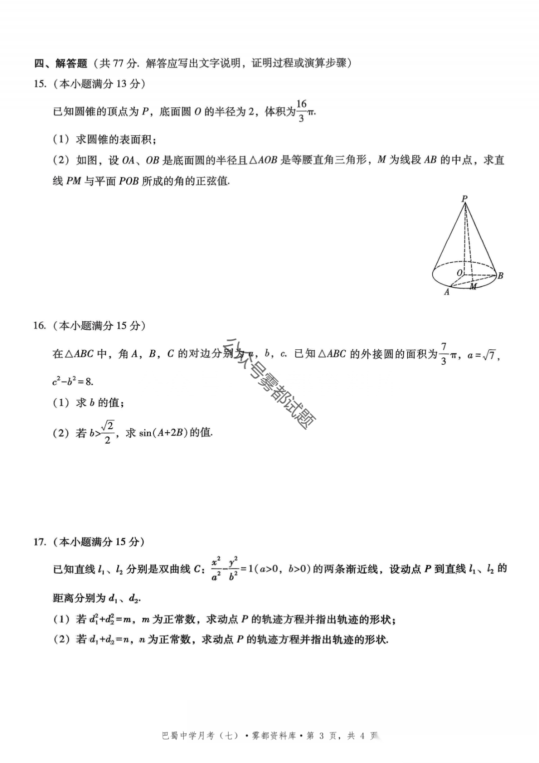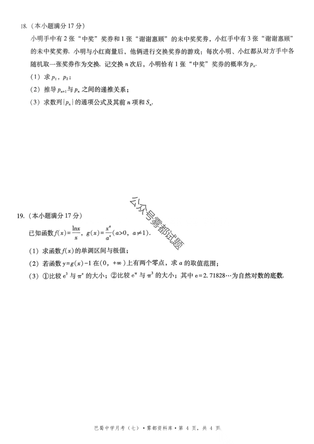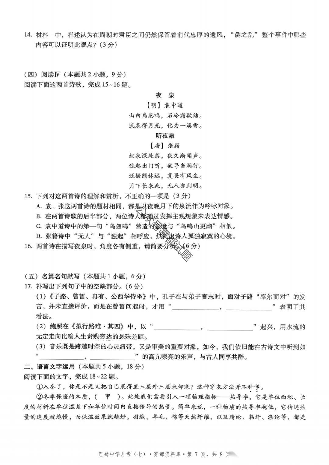 重庆市巴蜀中学2026届高三3月月考卷(七)语文、数学汇总
