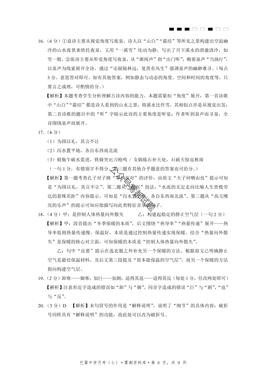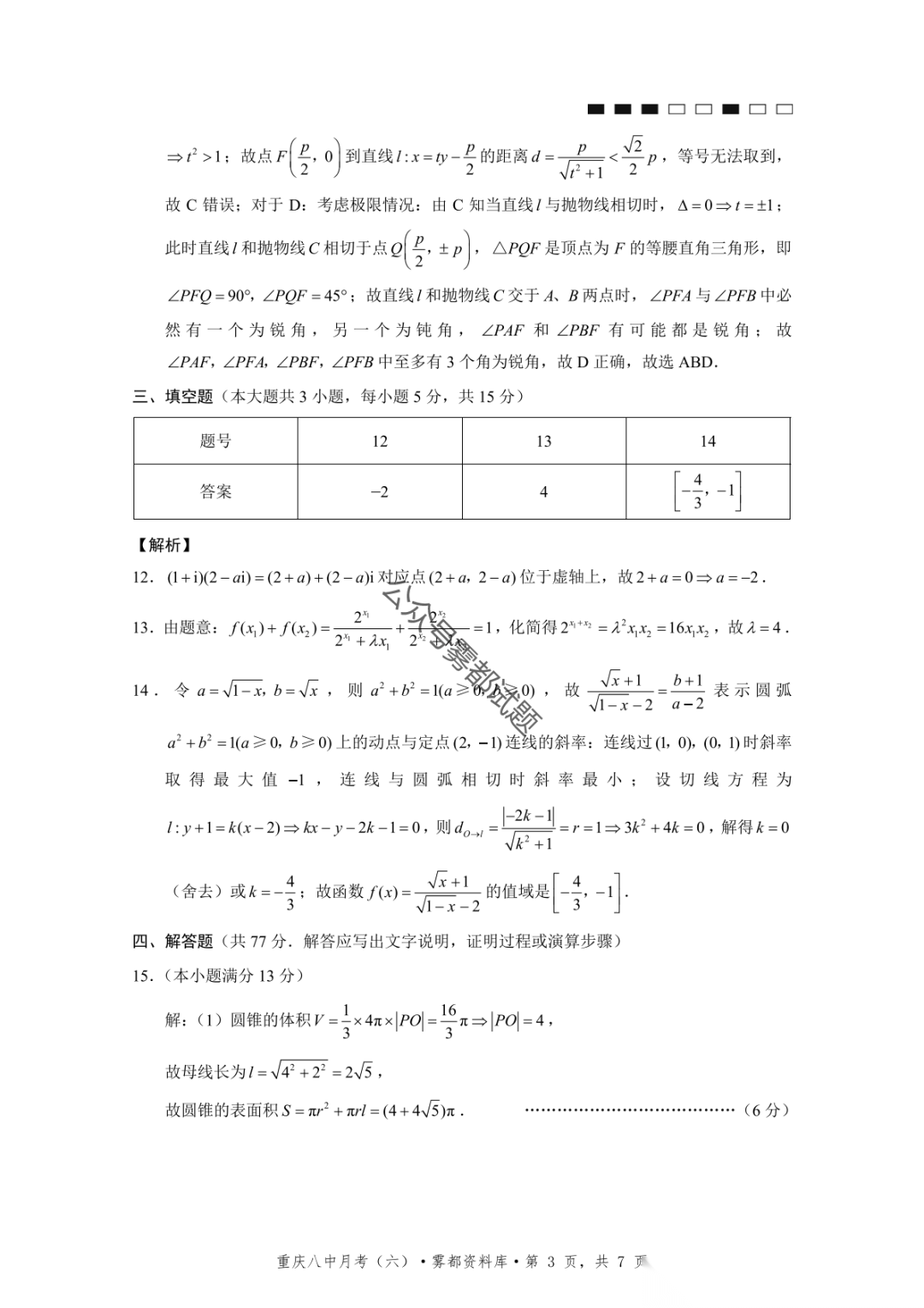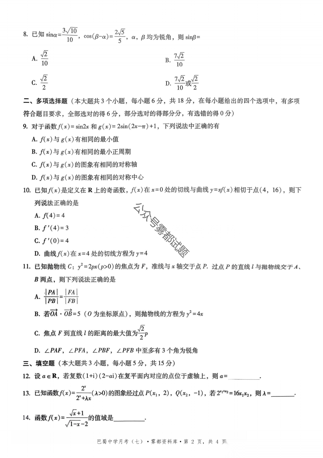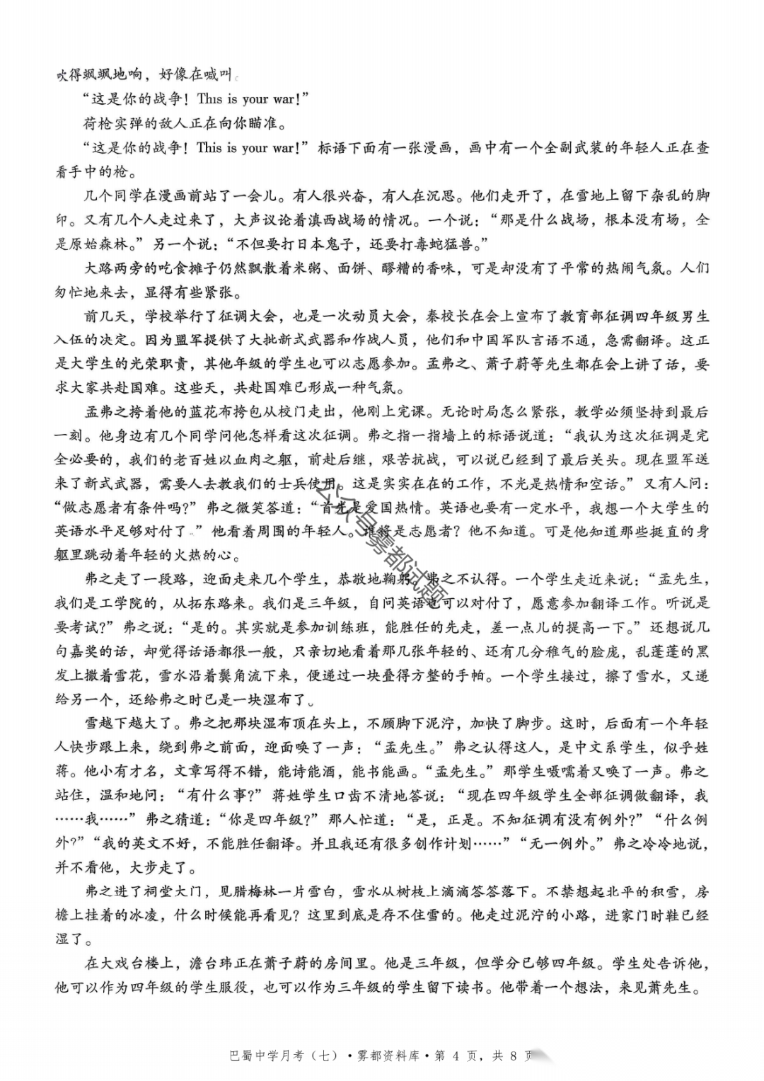 重庆市巴蜀中学2026届高三3月月考卷(七)语文、数学汇总