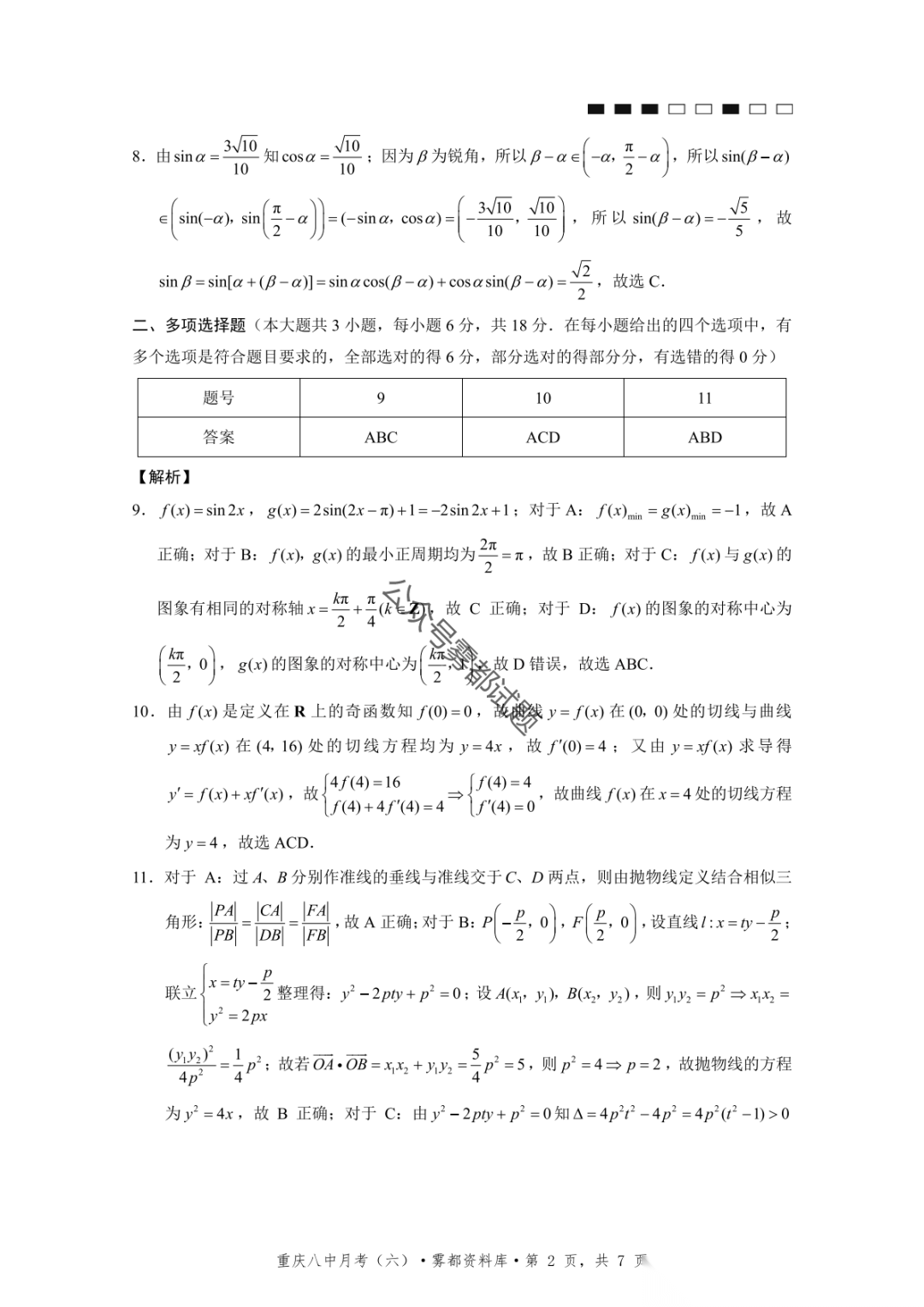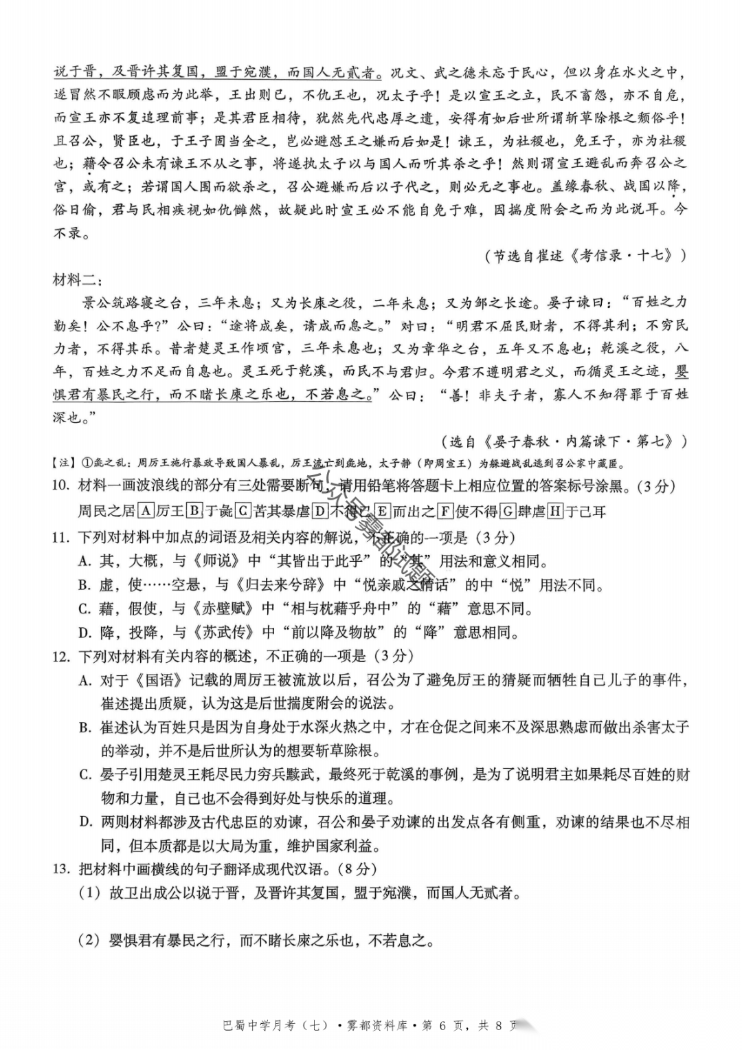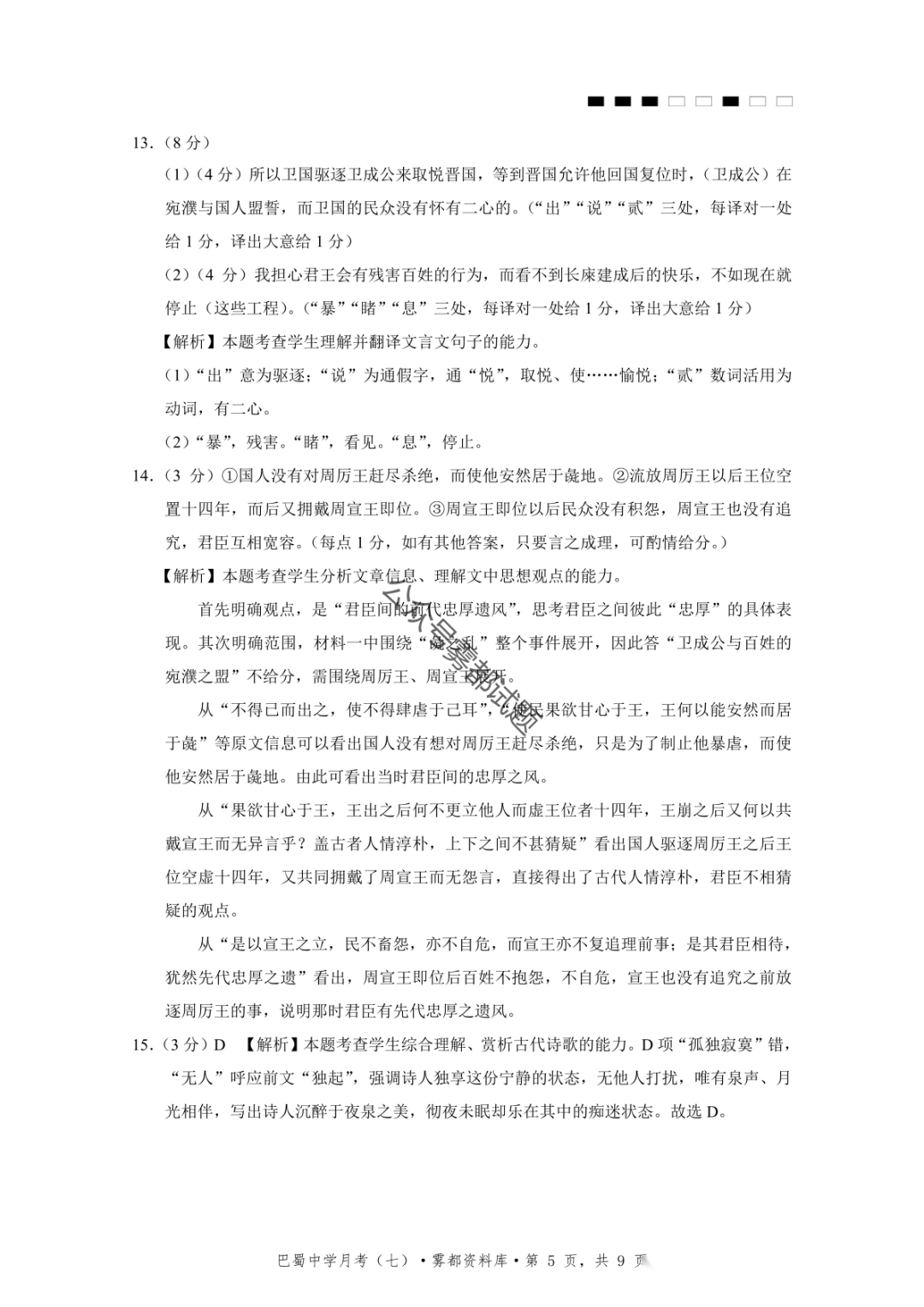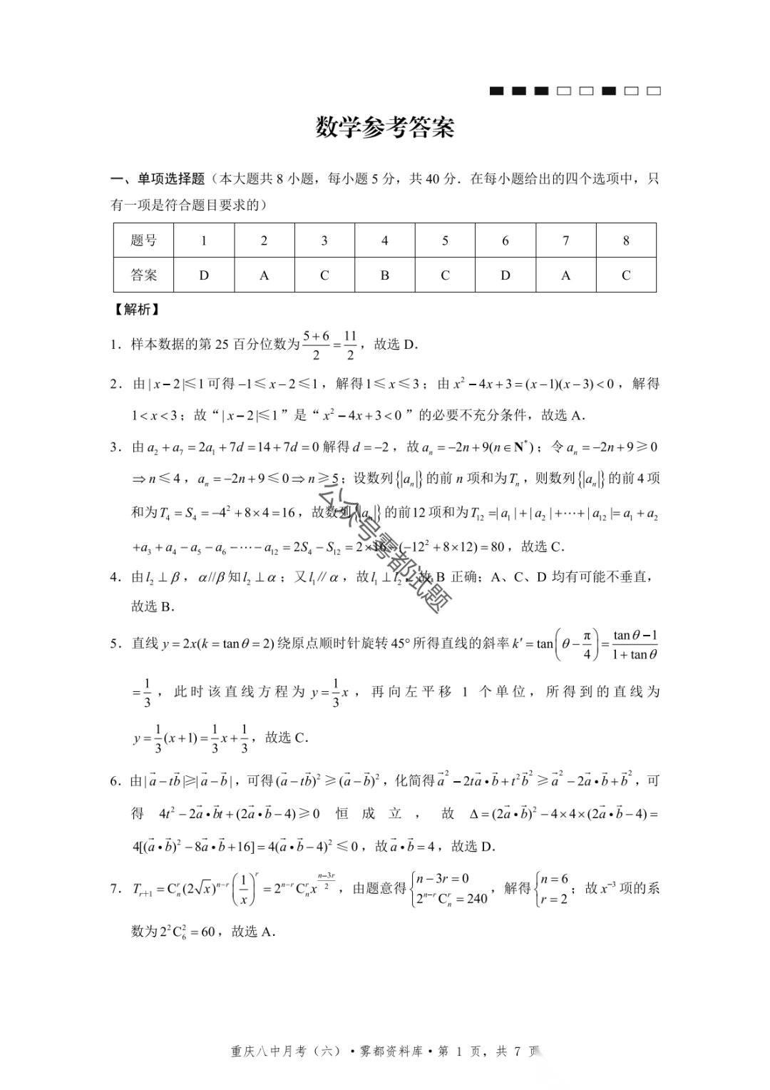 重庆市巴蜀中学2026届高三3月月考卷(七)语文、数学汇总