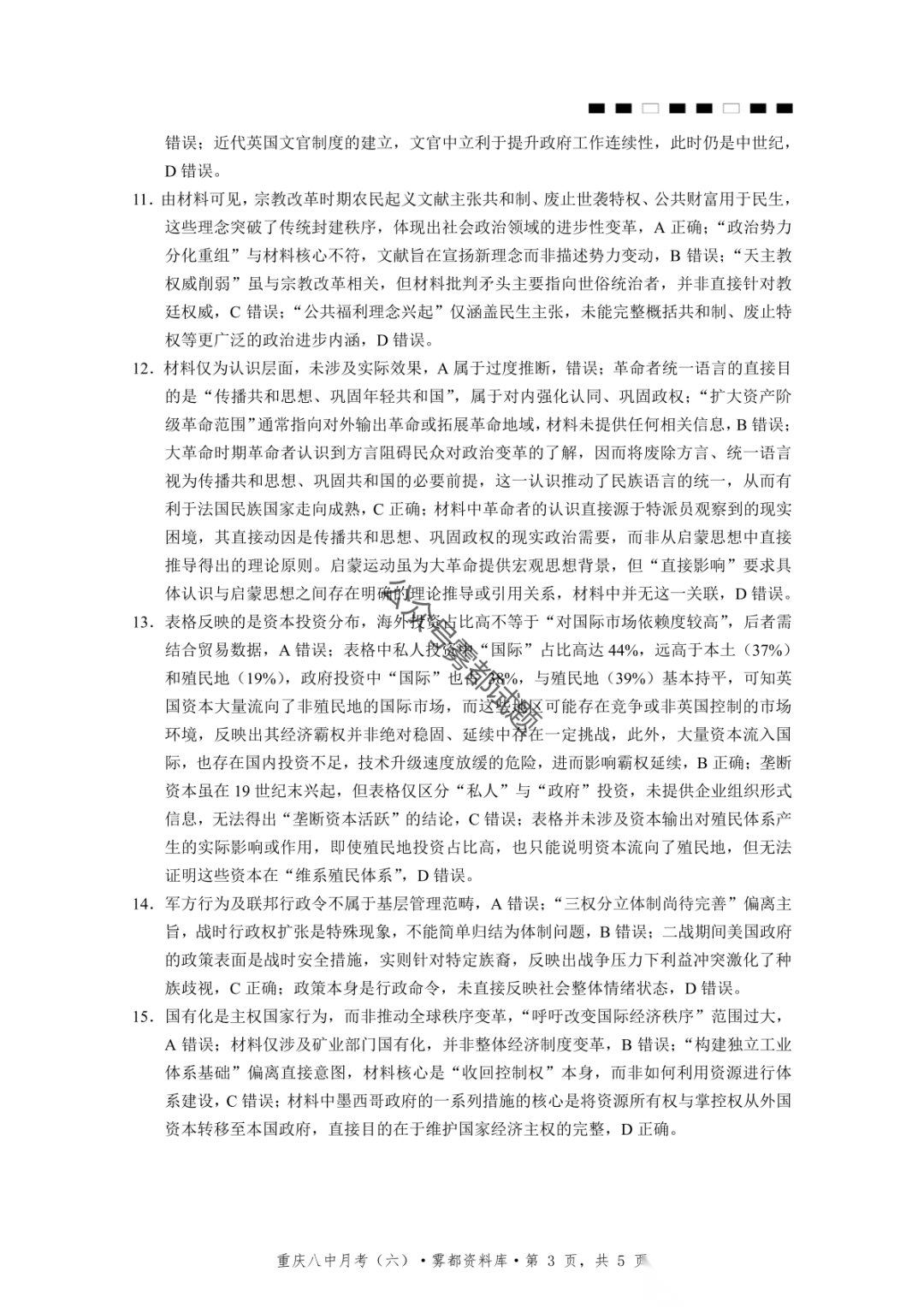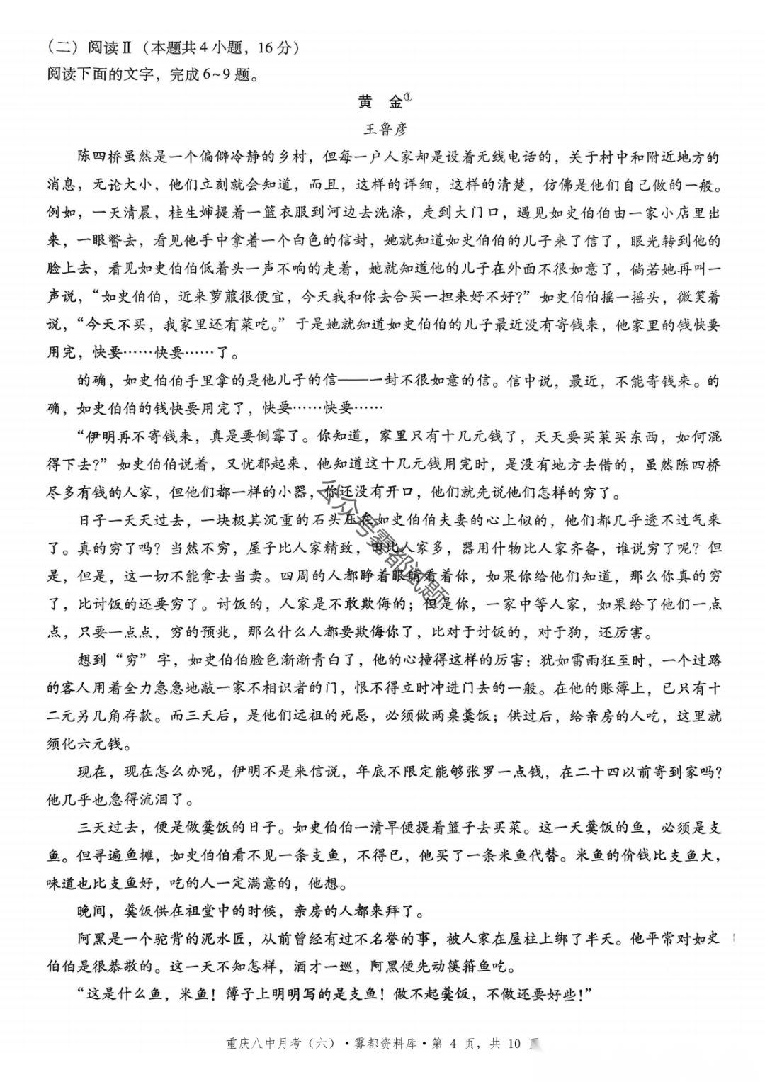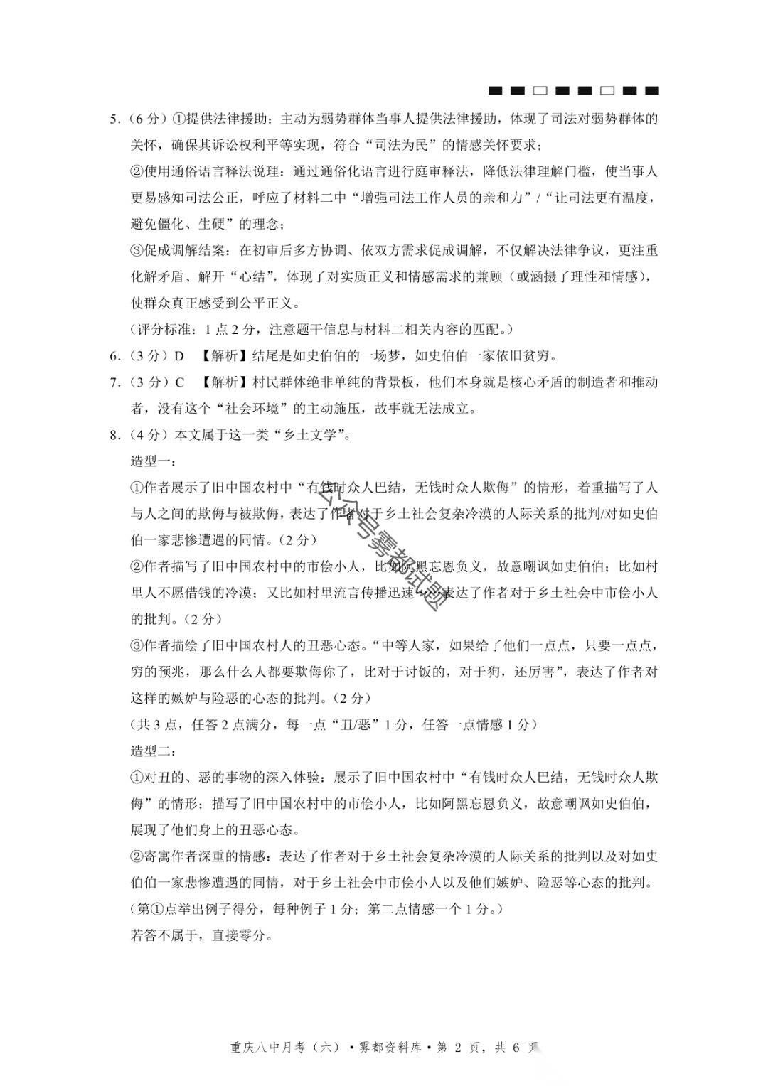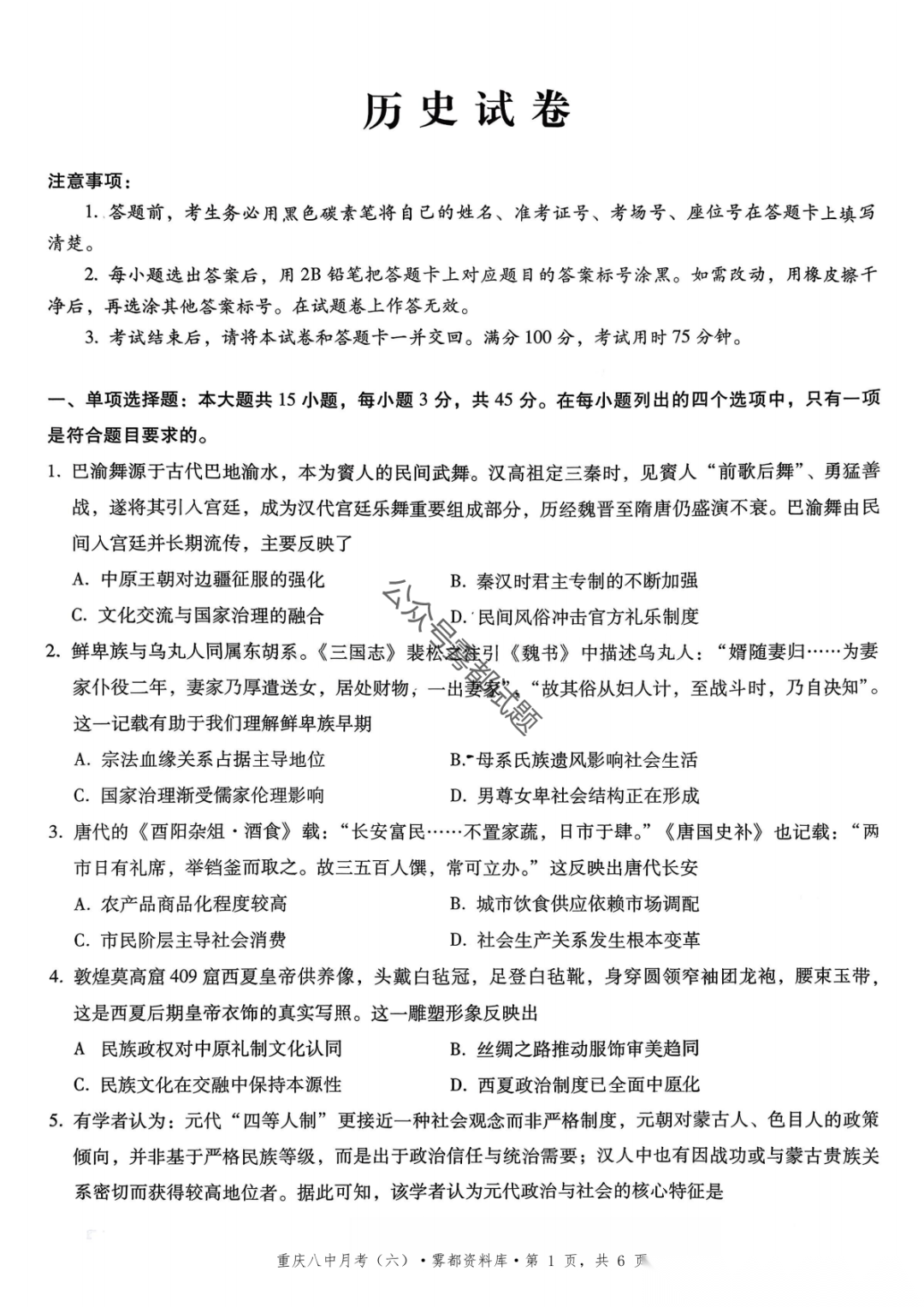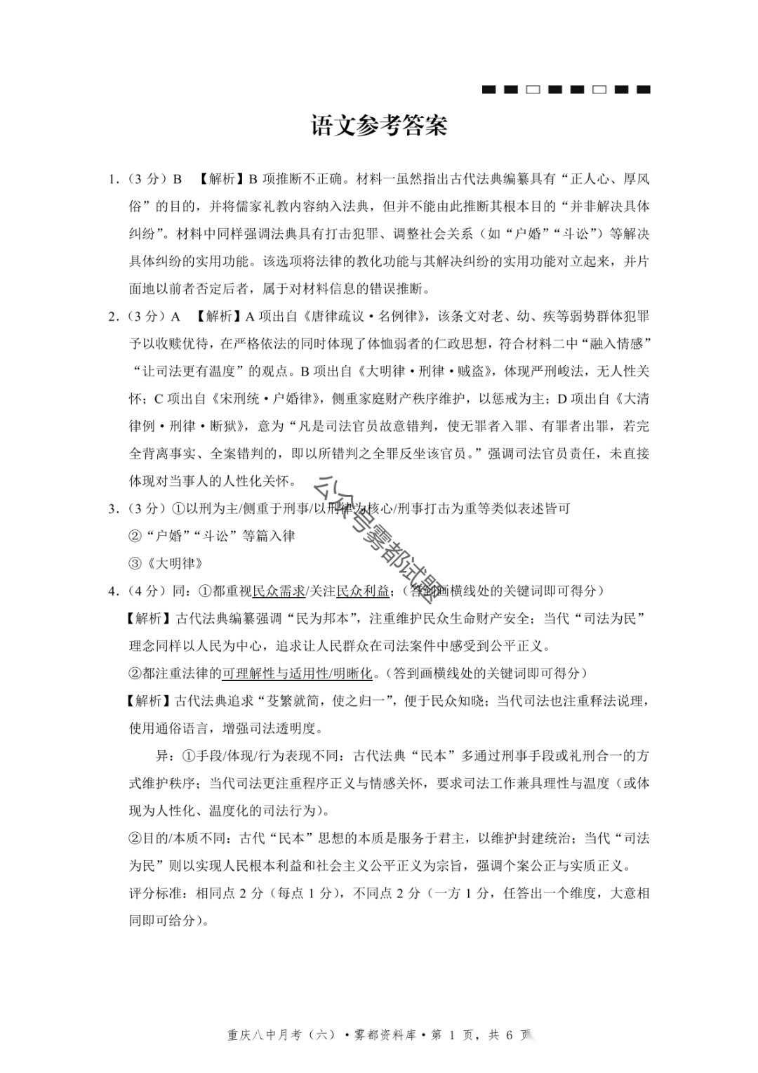 重庆市第八中学2026届高三3月月考卷(六)语文数学物理历史英语汇总