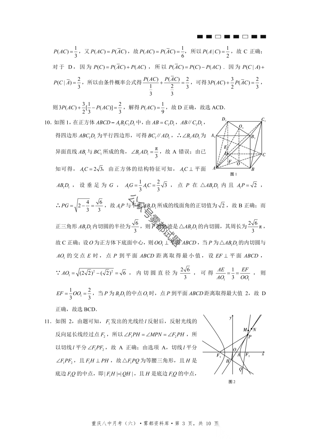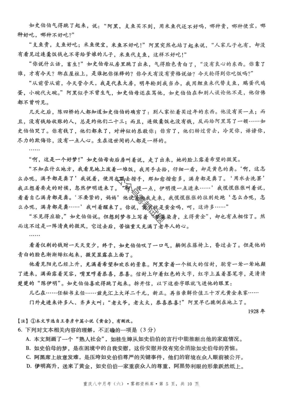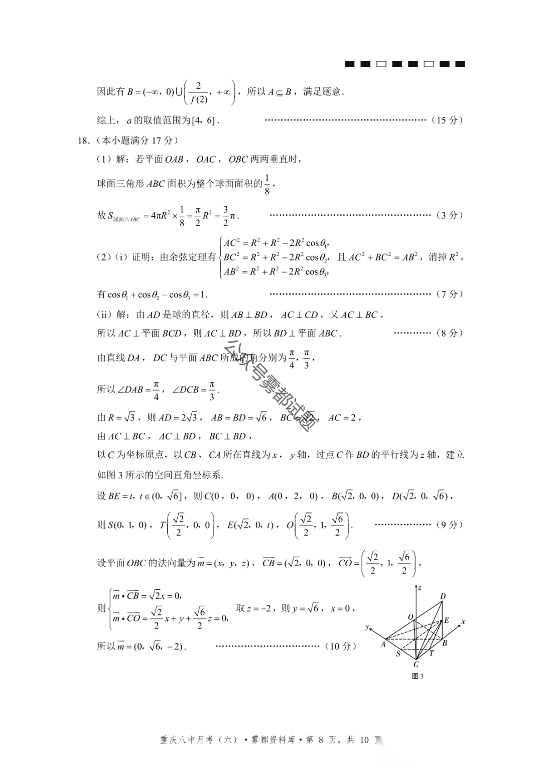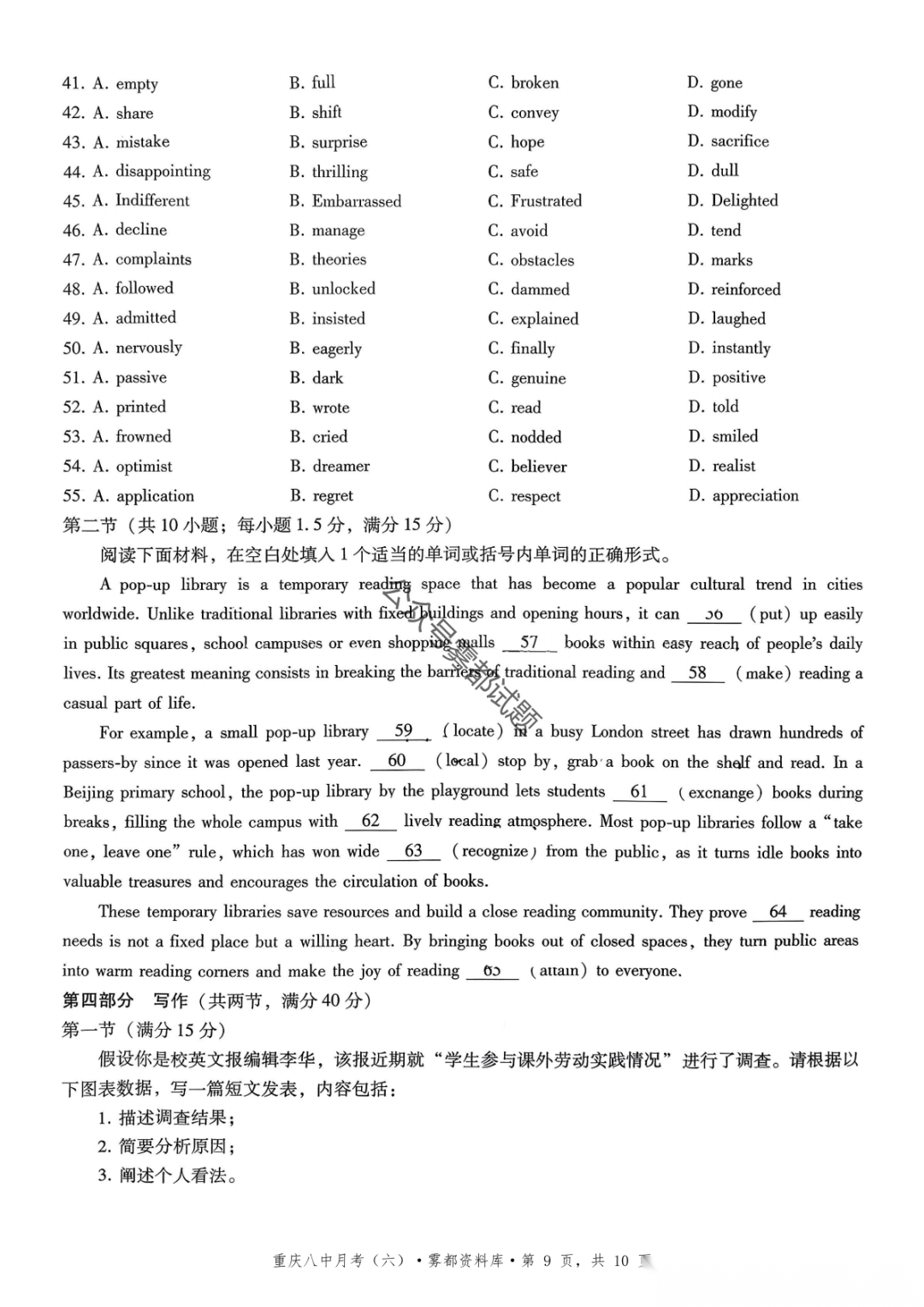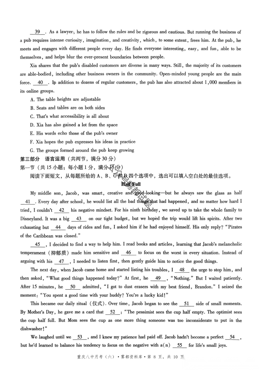 重庆市第八中学2026届高三3月月考卷(六)语文数学物理历史英语汇总