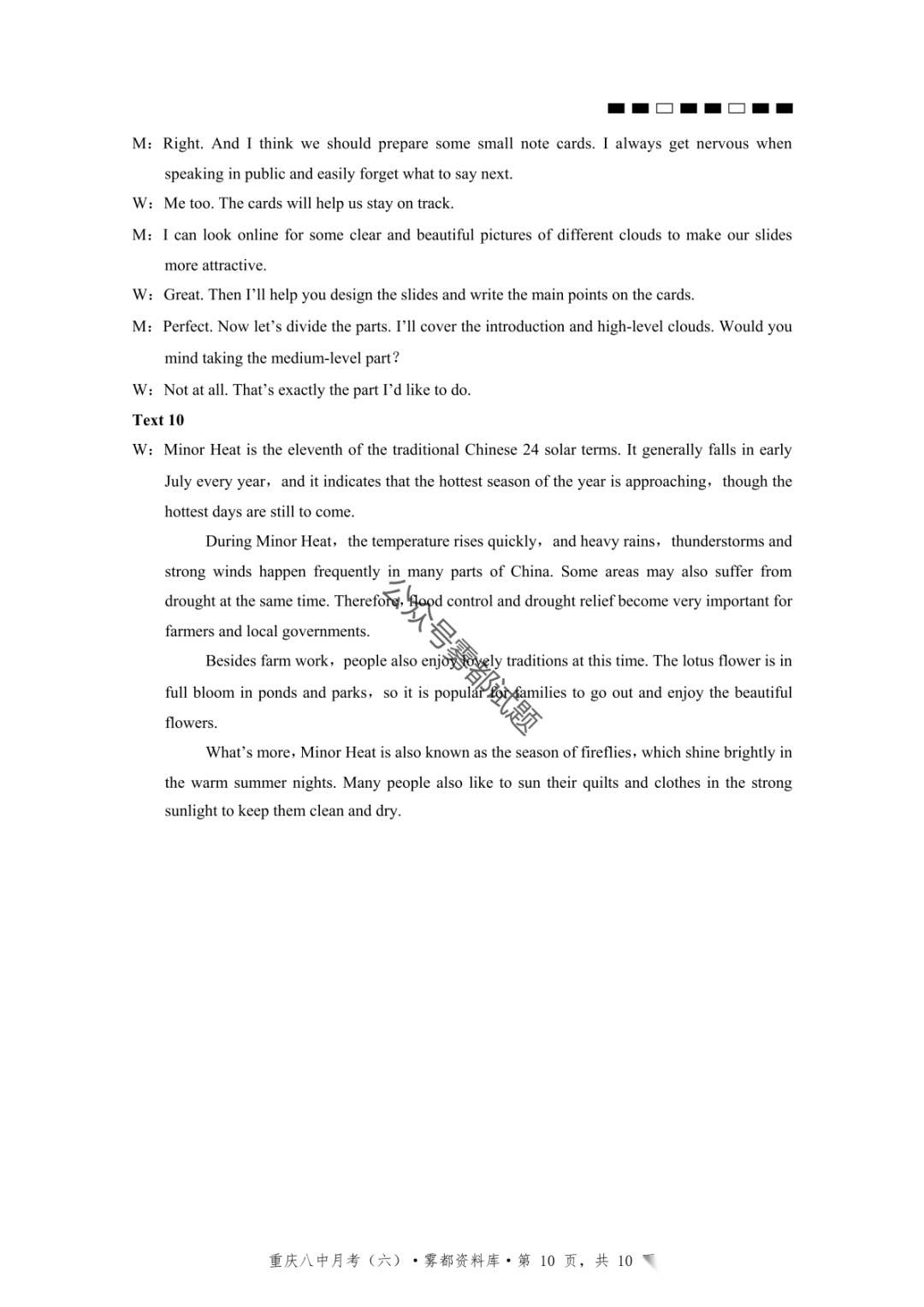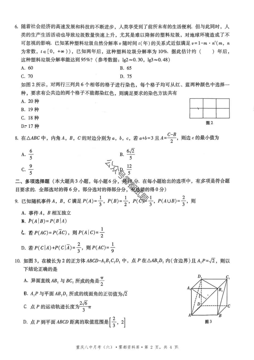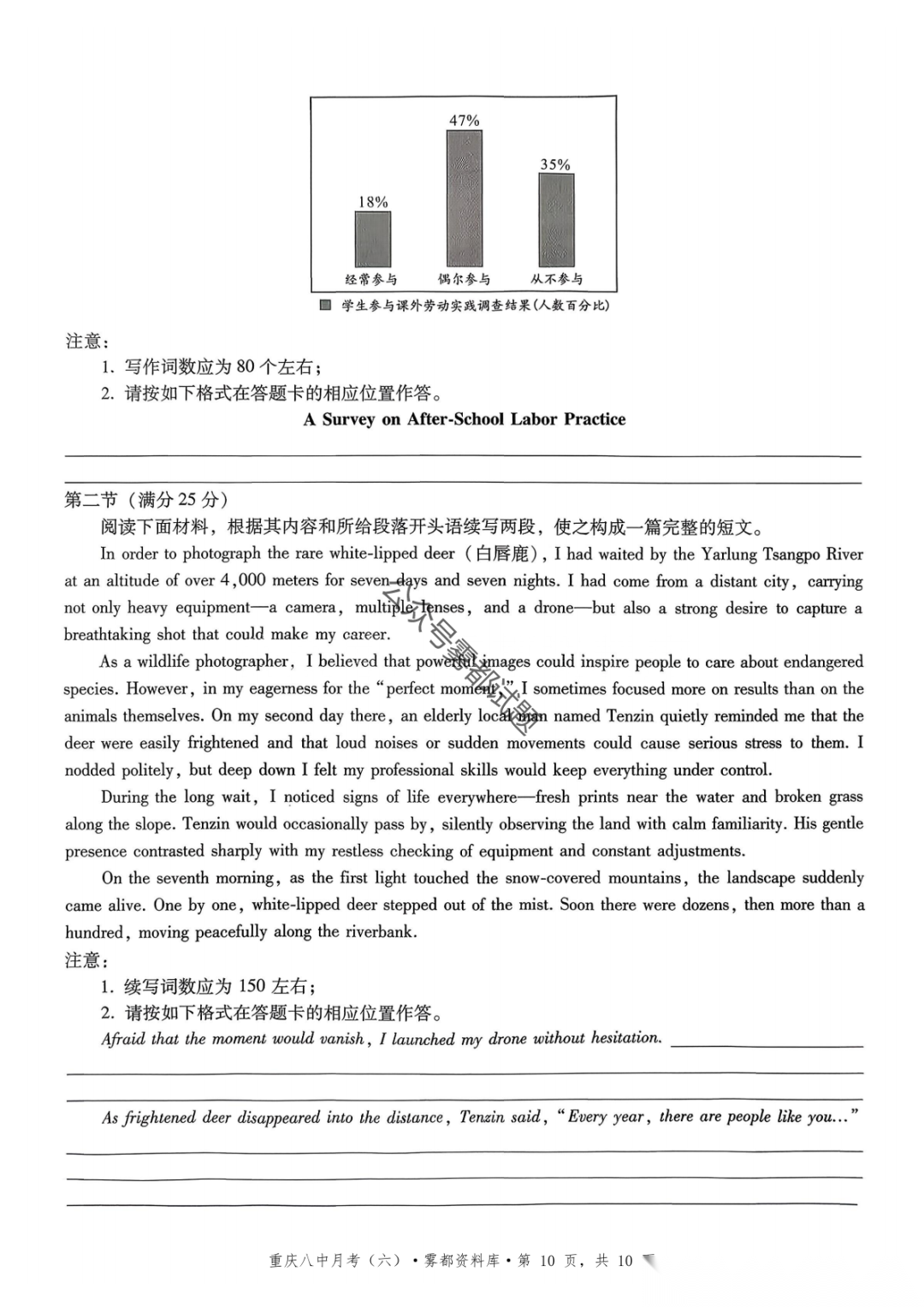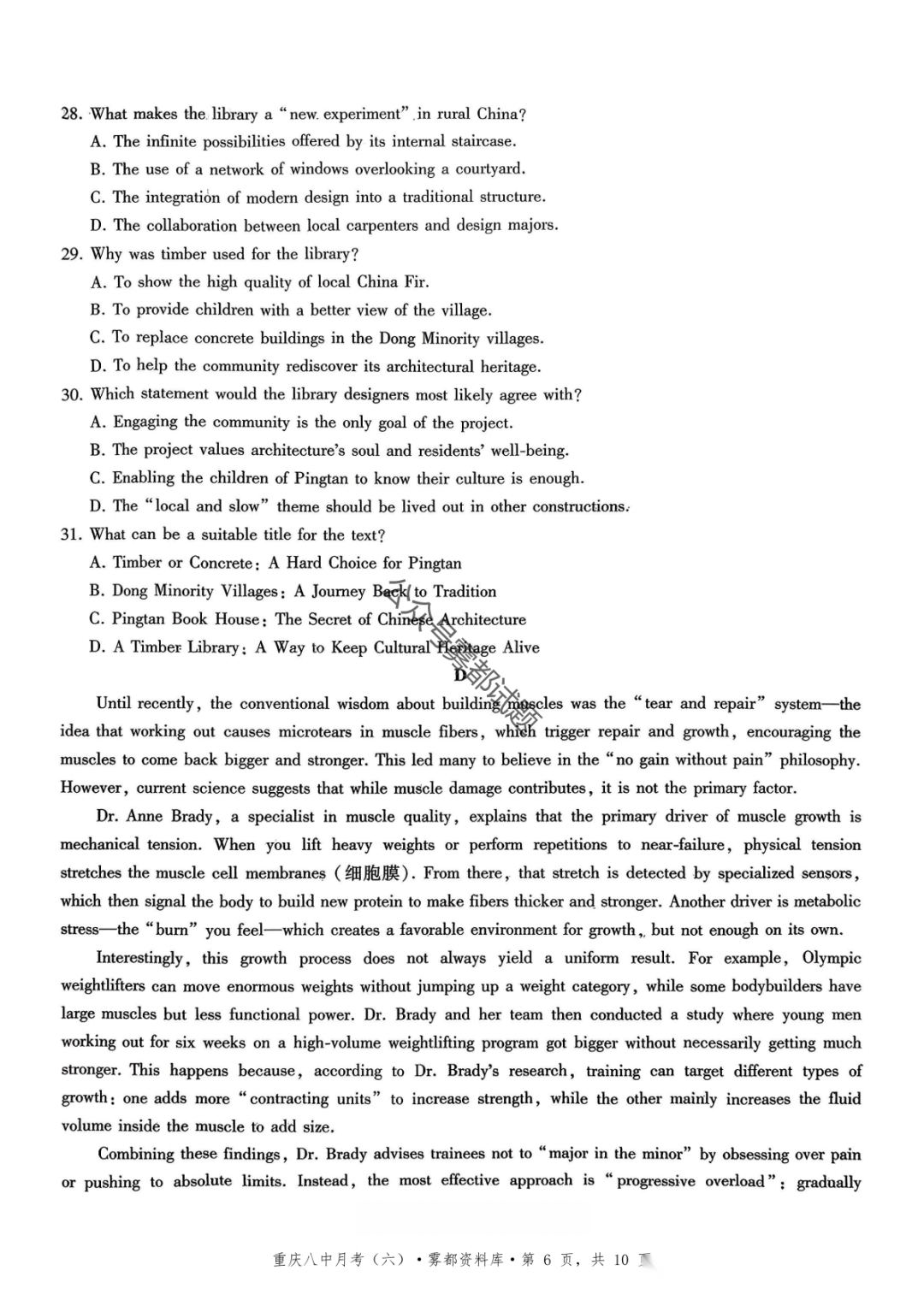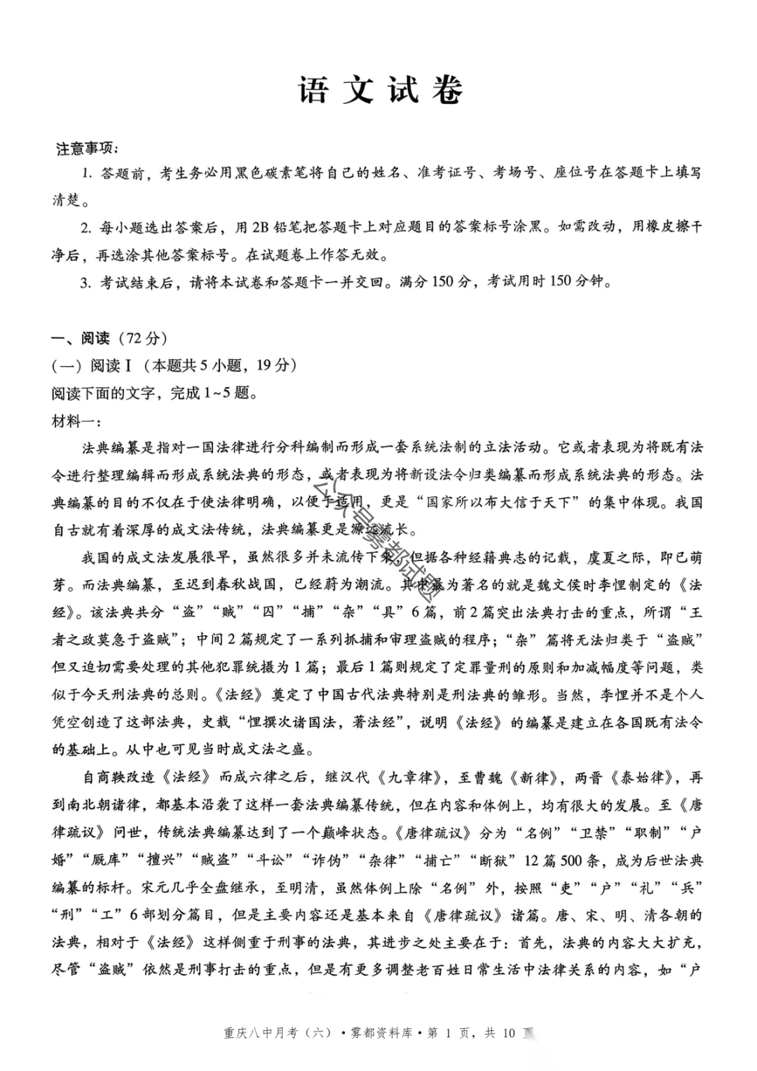 重庆市第八中学2026届高三3月月考卷(六)语文数学物理历史英语汇总