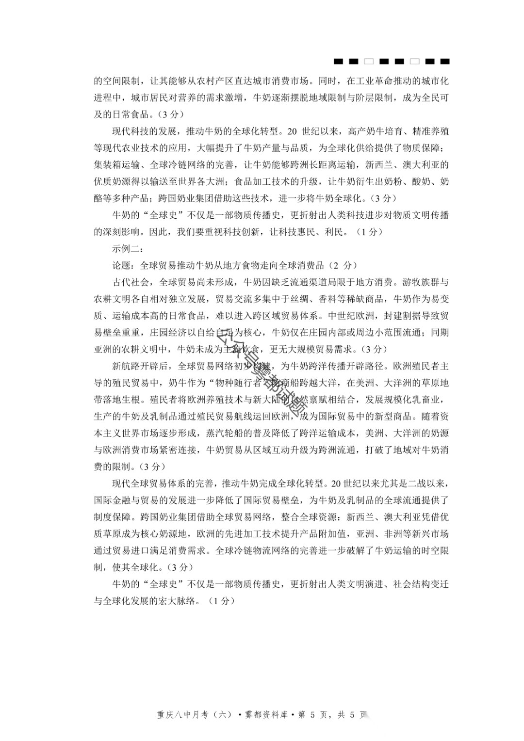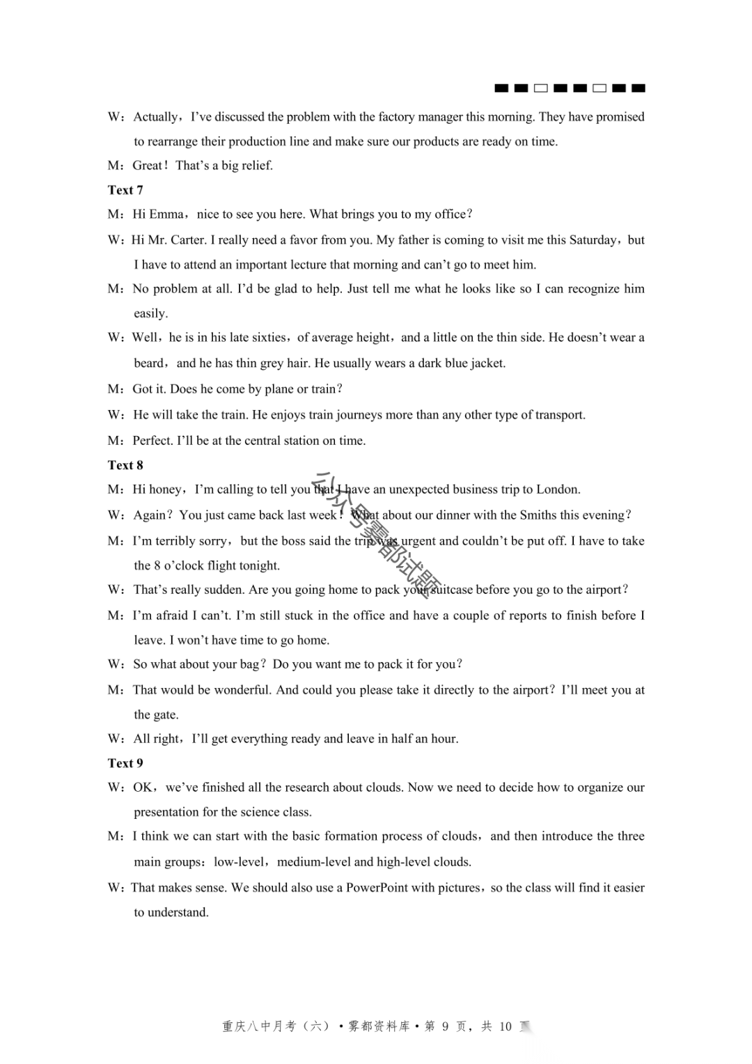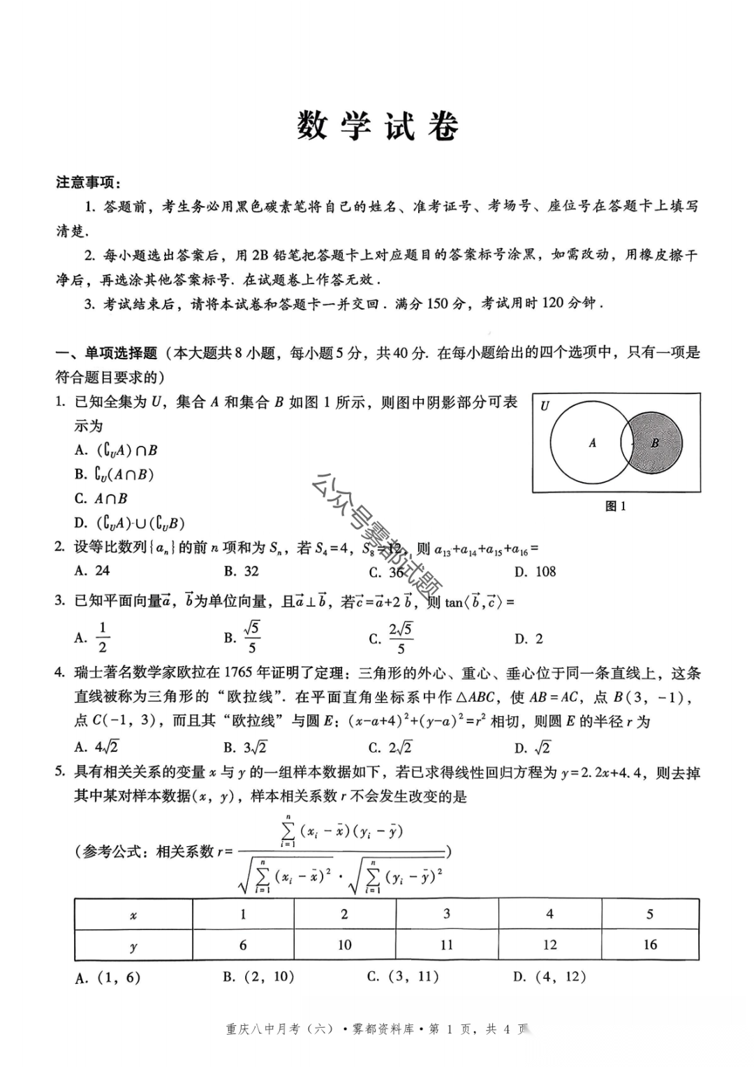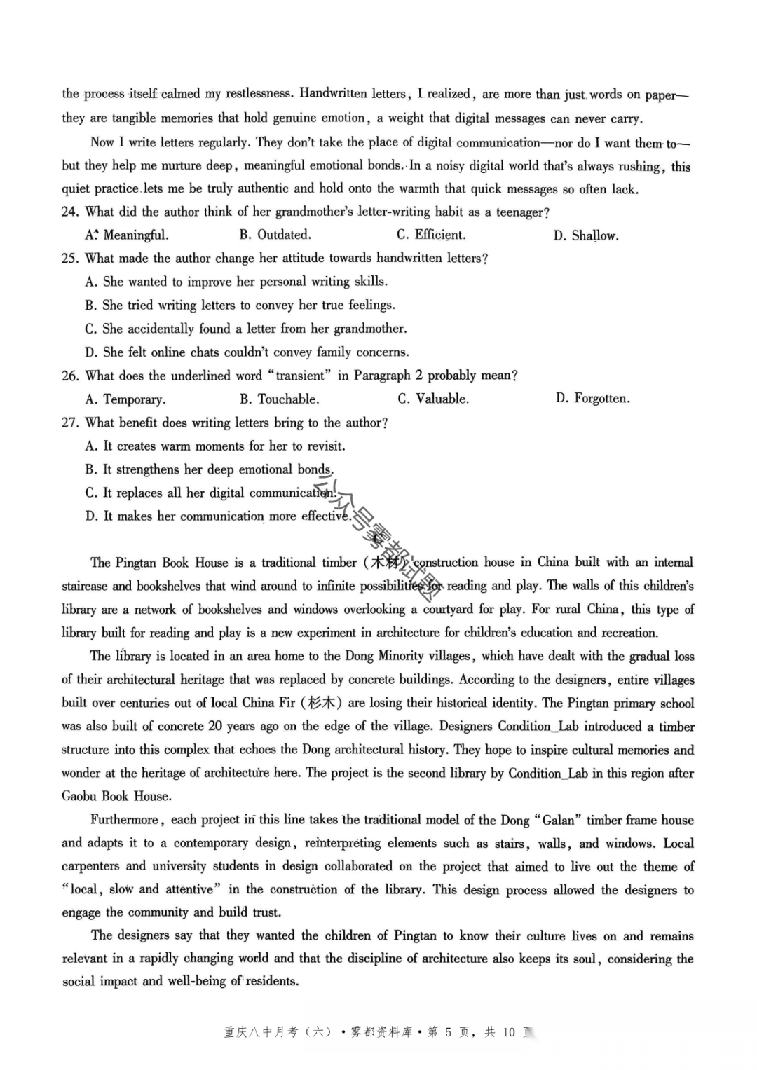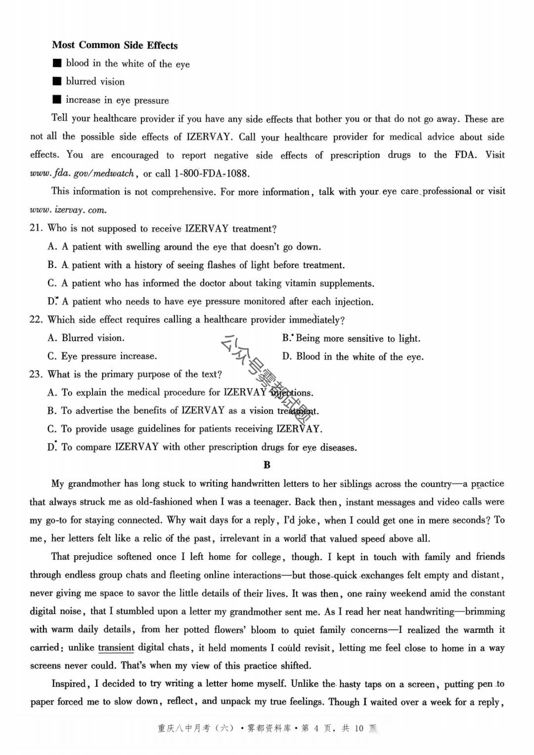 重庆市第八中学2026届高三3月月考卷(六)语文数学物理历史英语汇总