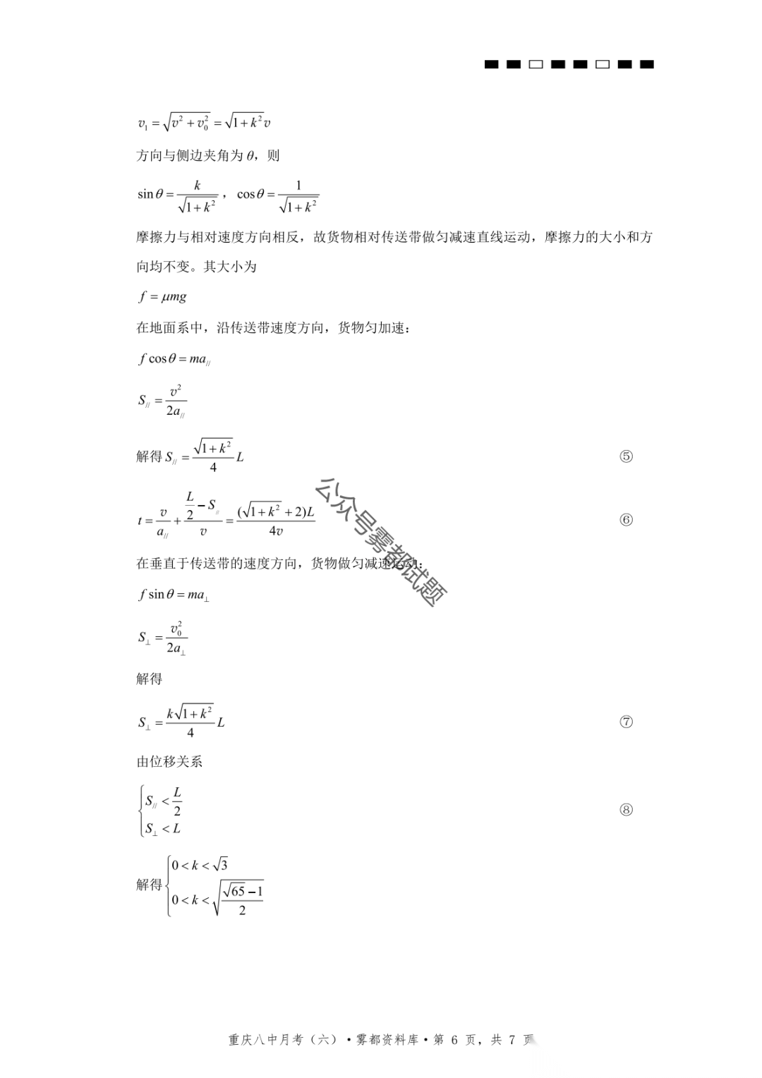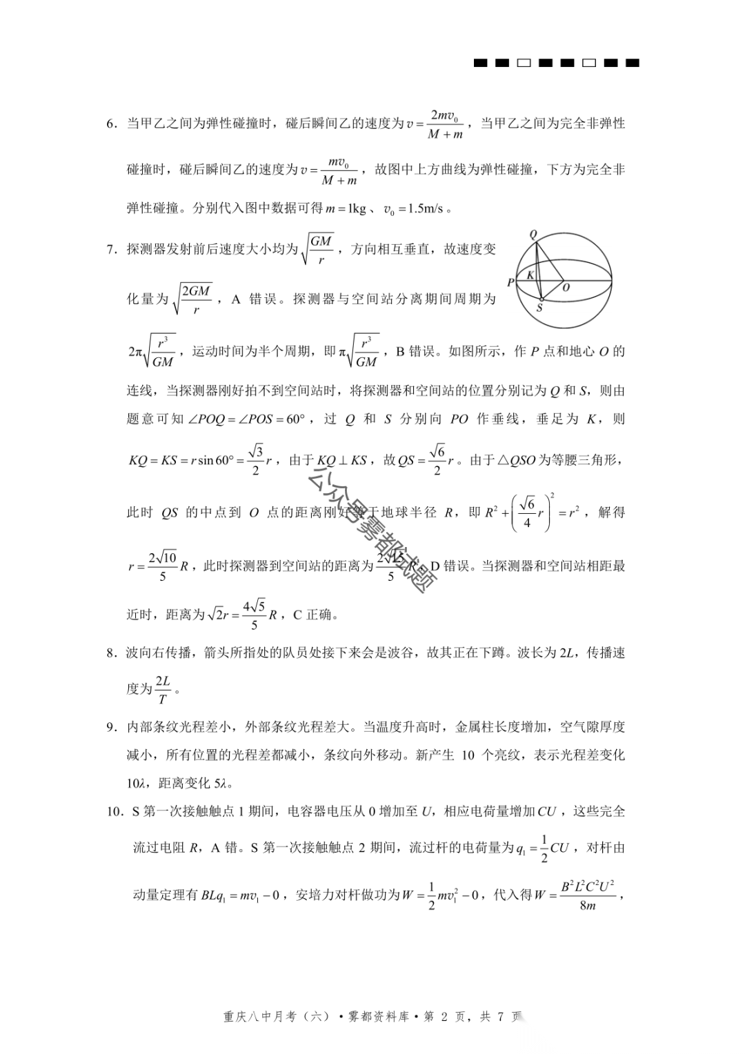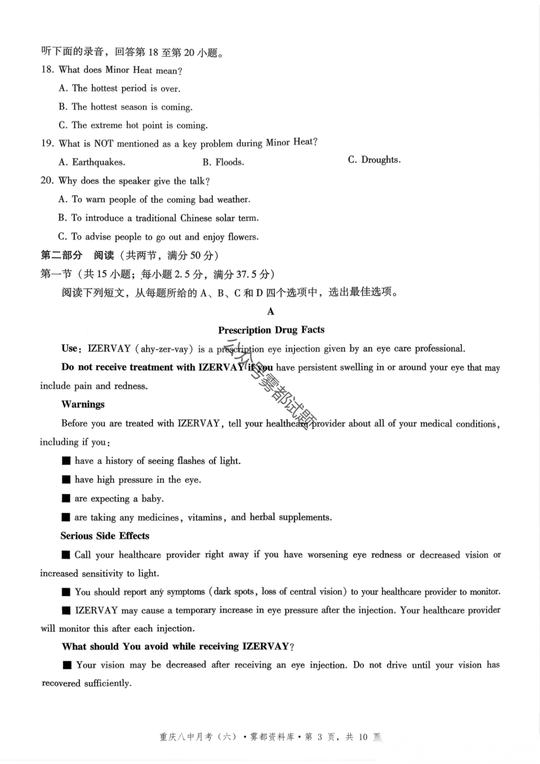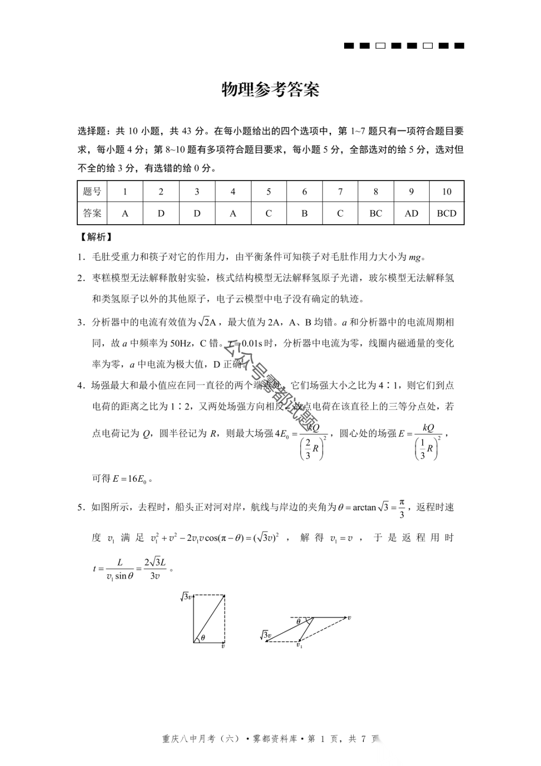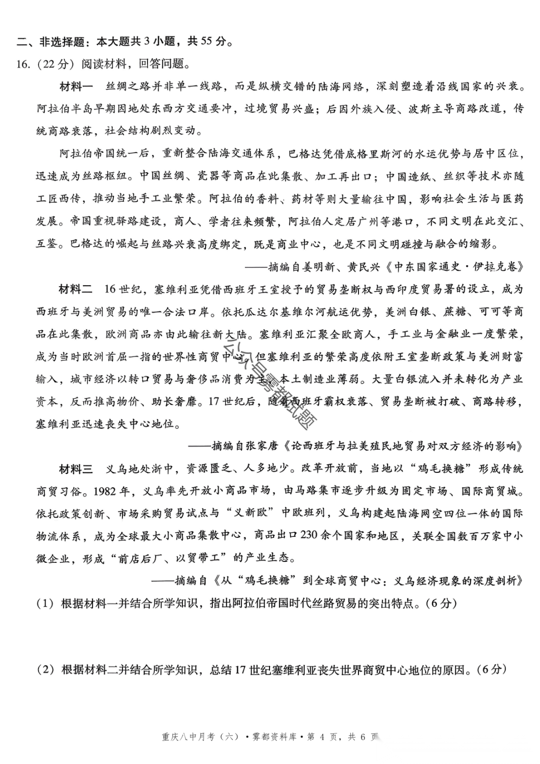 重庆市第八中学2026届高三3月月考卷(六)语文数学物理历史英语汇总