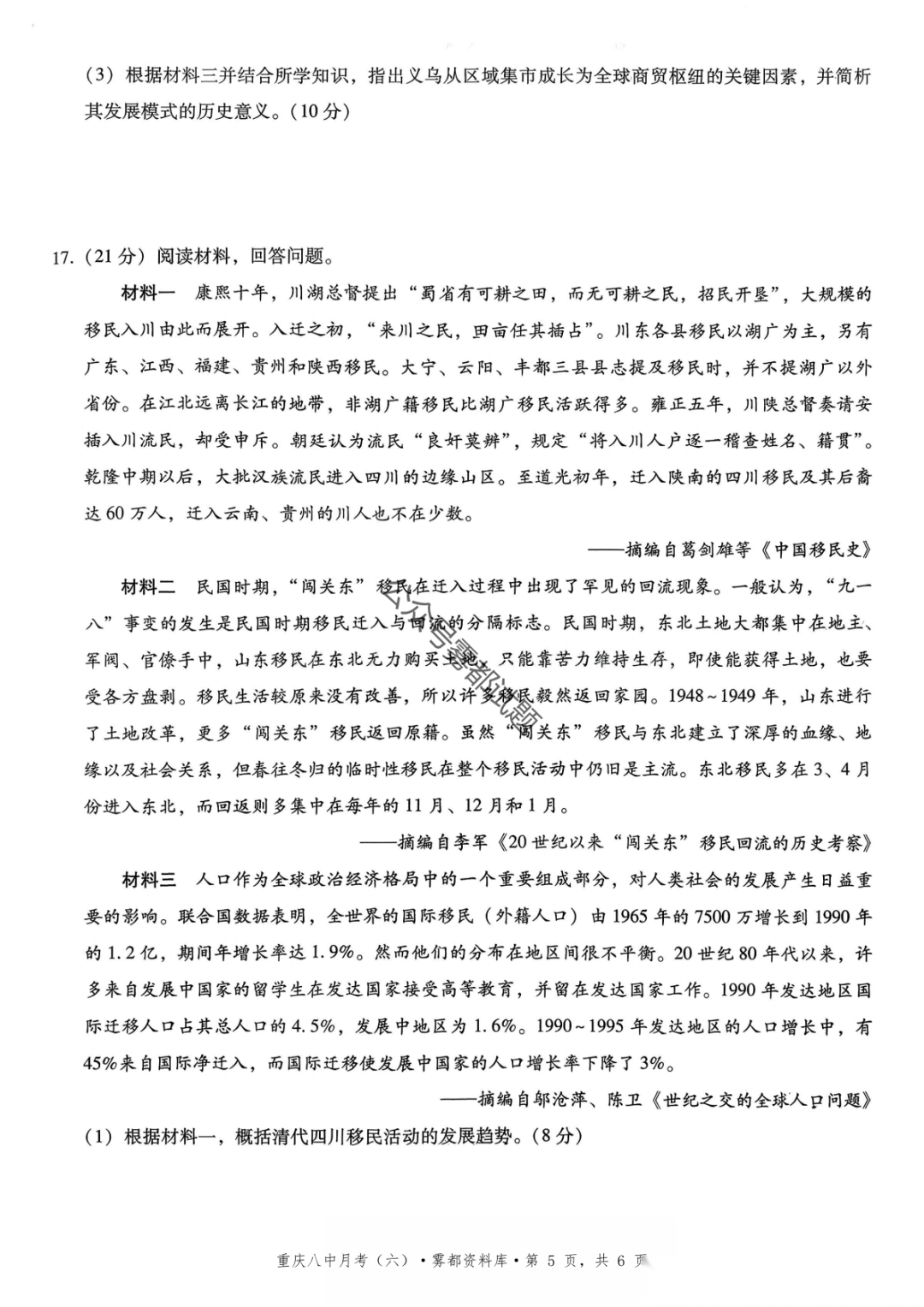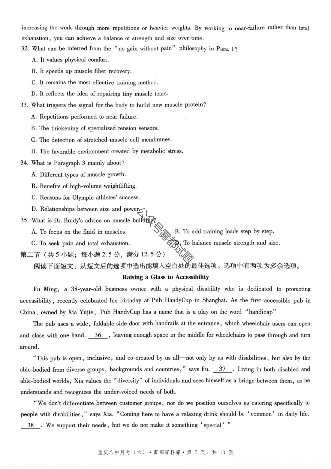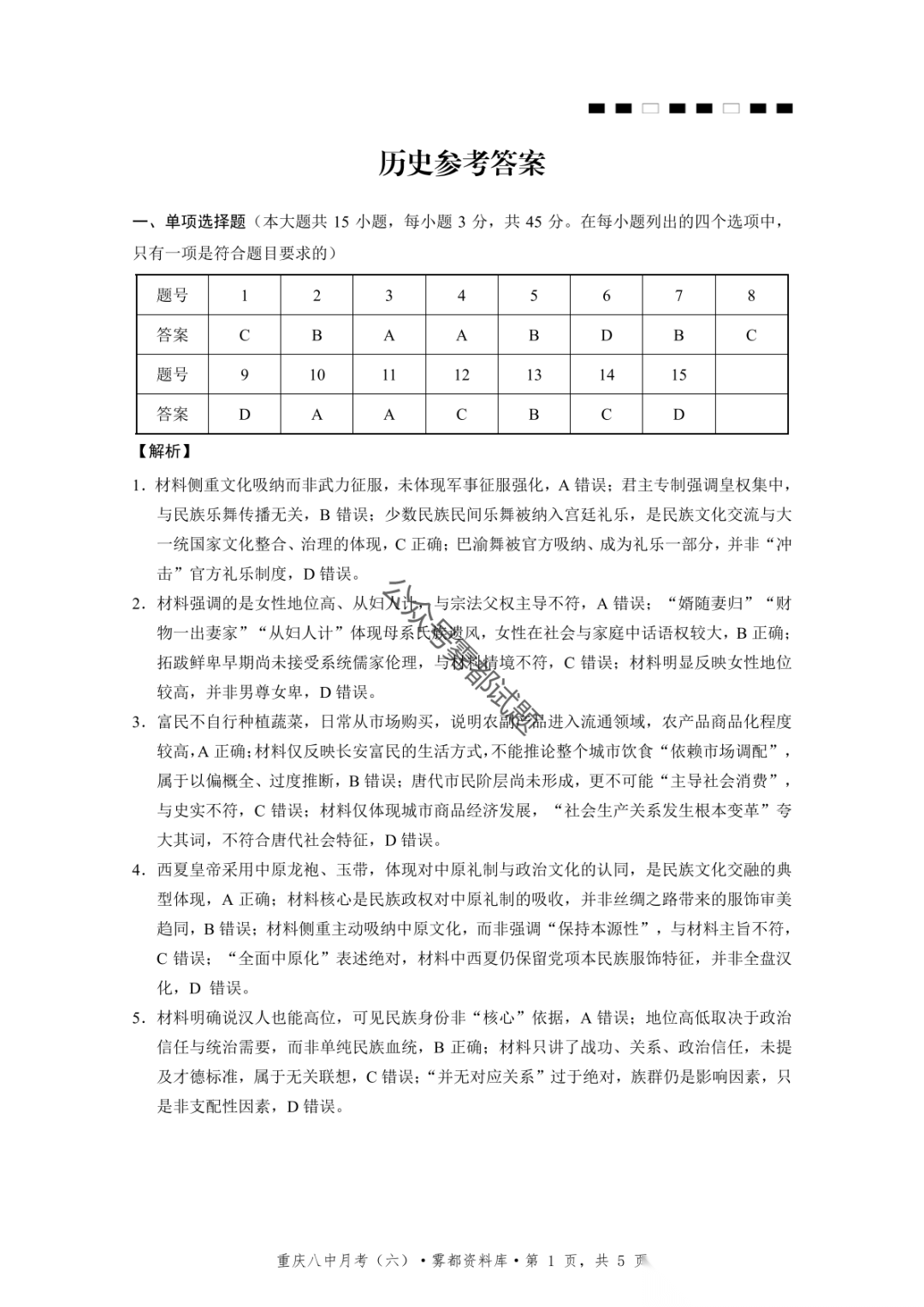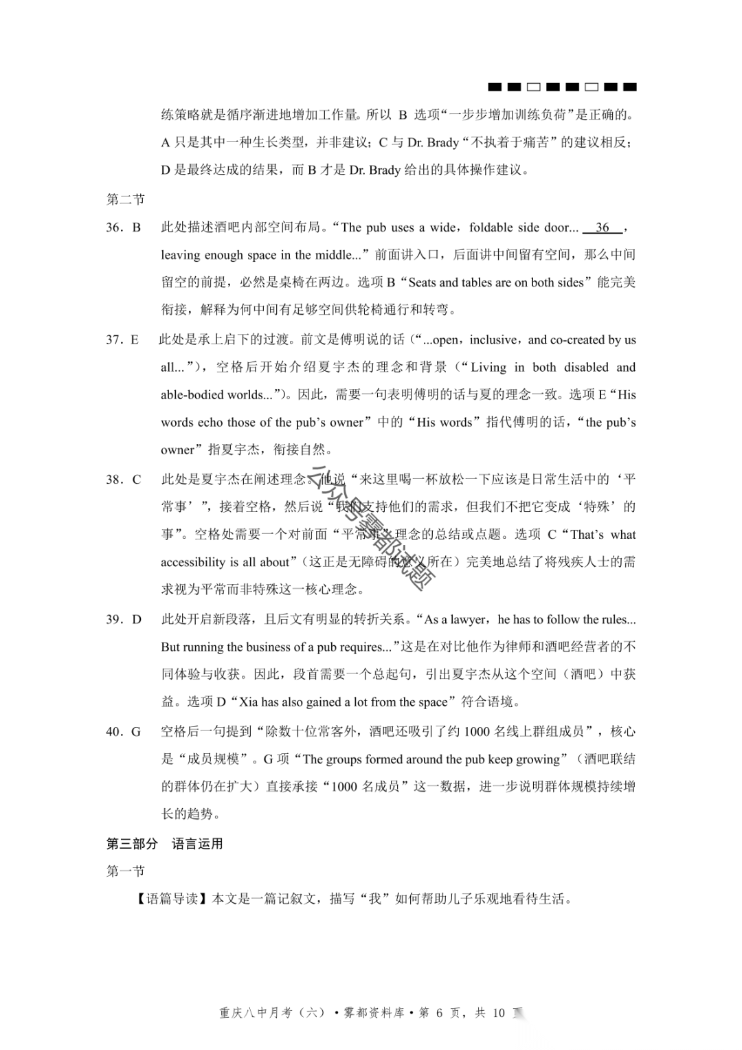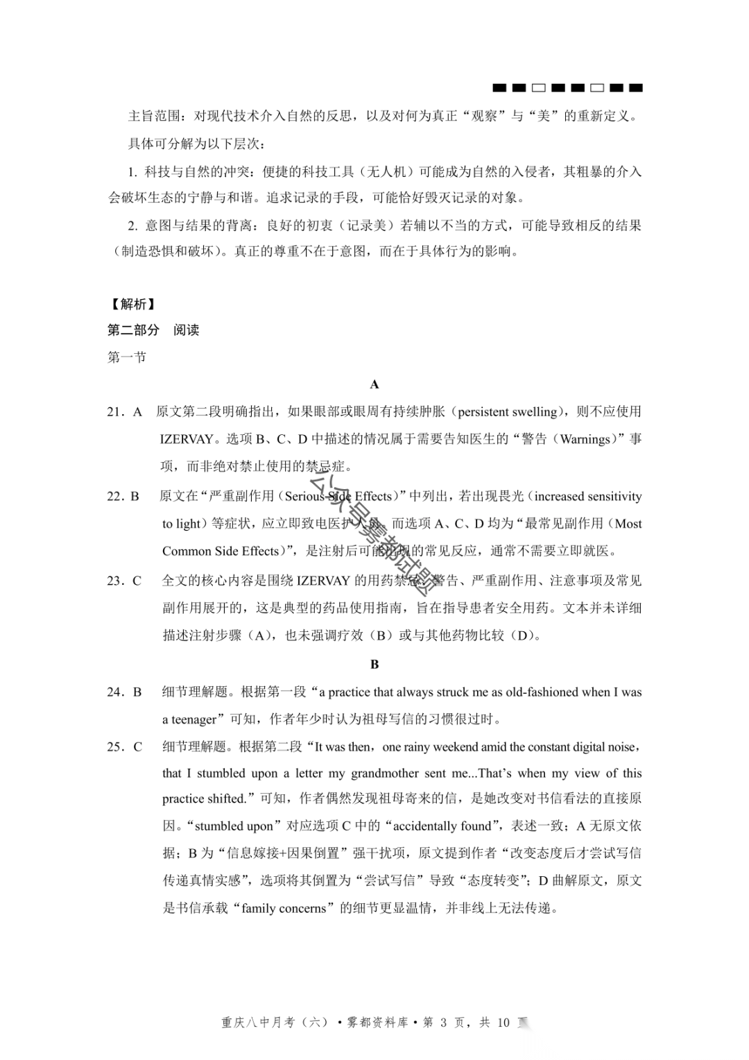 重庆市第八中学2026届高三3月月考卷(六)语文数学物理历史英语汇总