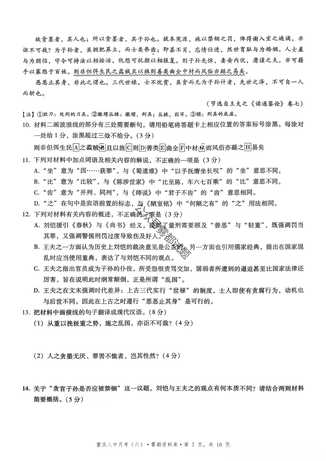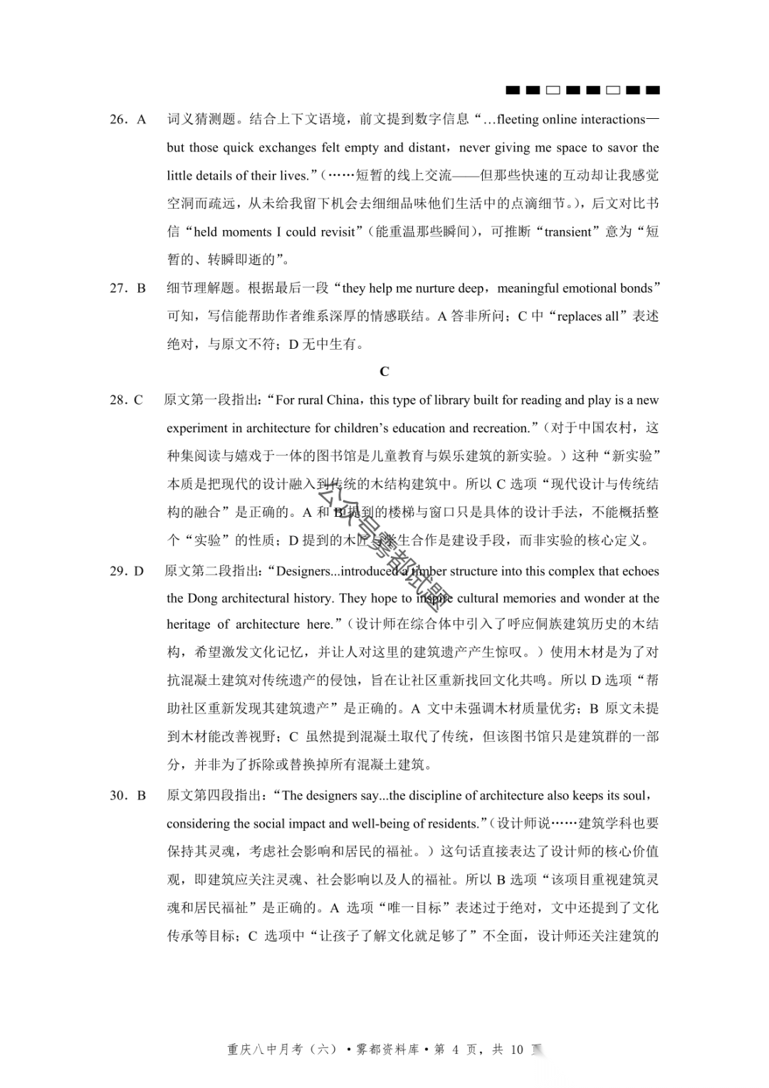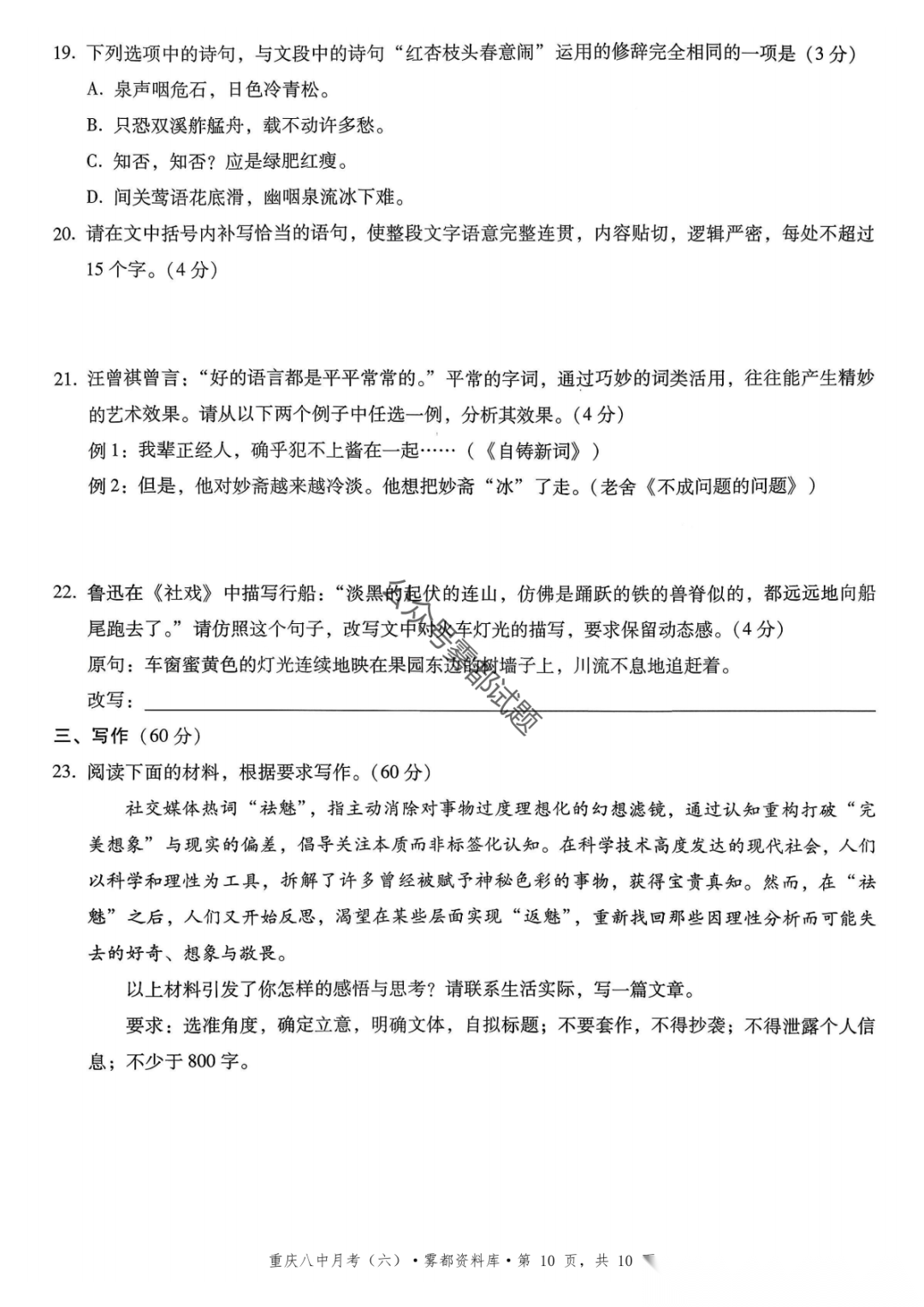 重庆市巴蜀中学2026届高三3月月考卷(七)语文、数学汇总 重庆市巴蜀中学2026届高三3月月考卷(七)语文、数学汇总