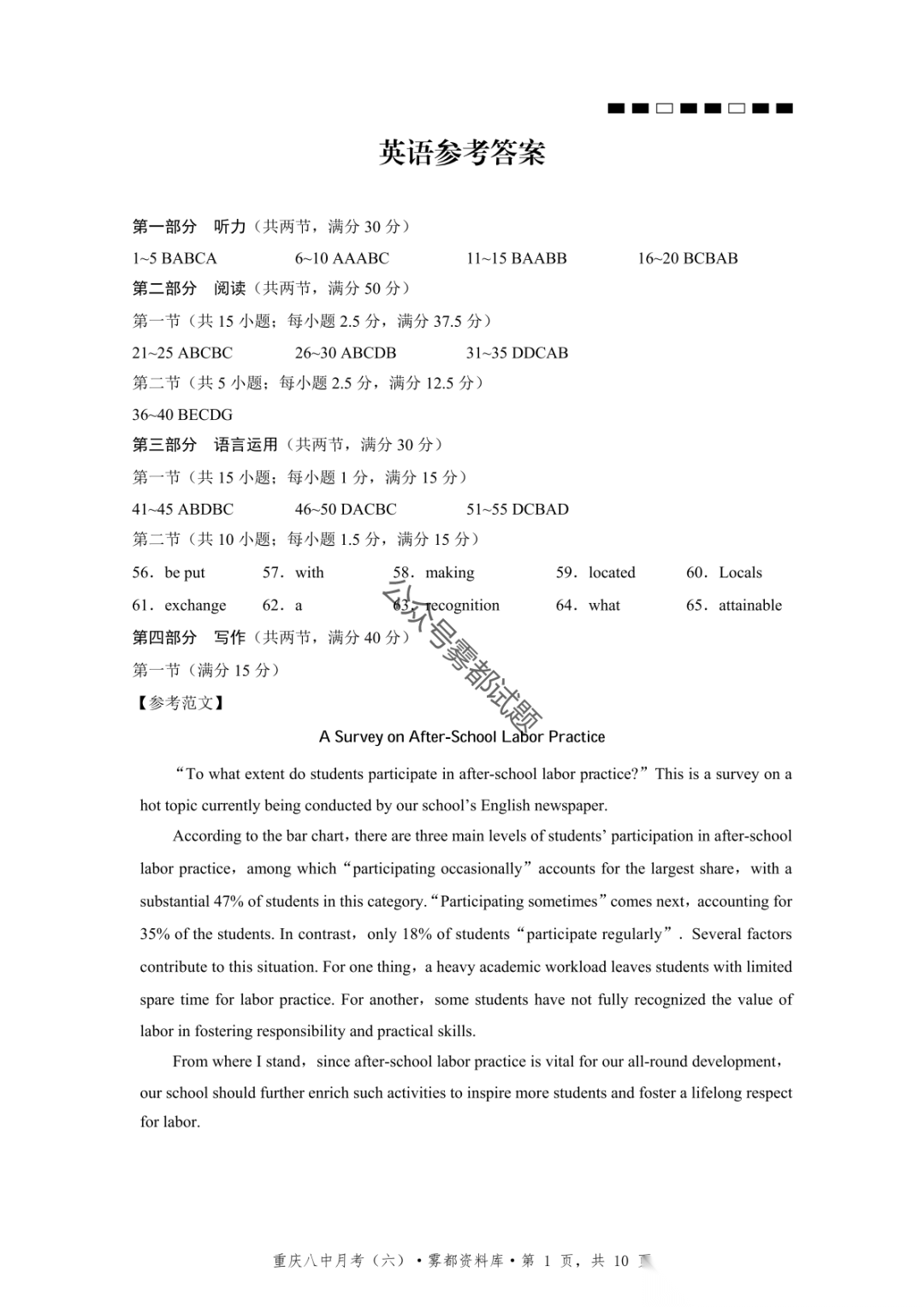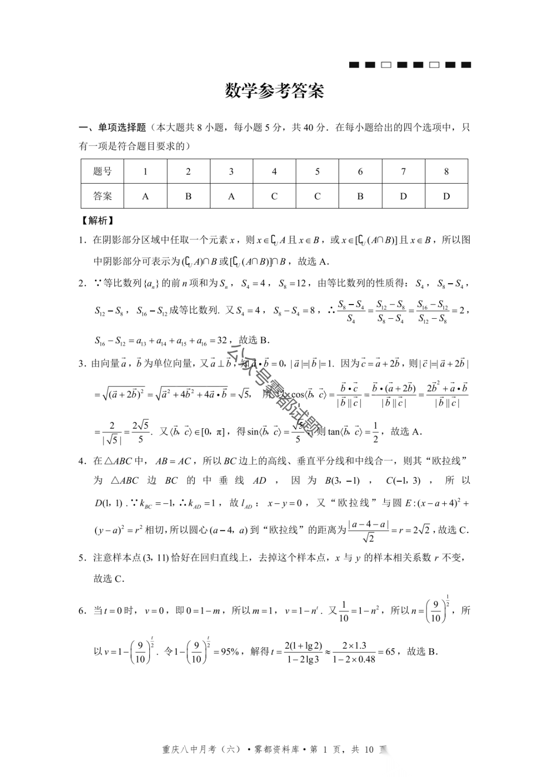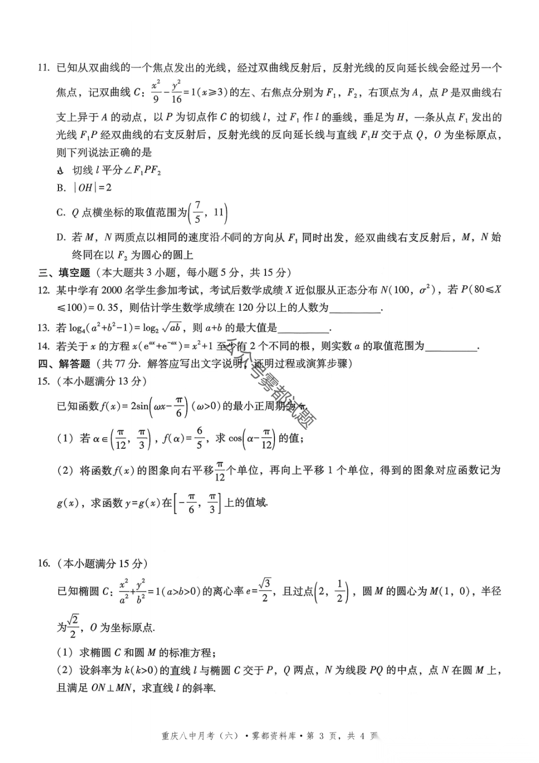 重庆市巴蜀中学2026届高三3月月考卷(七)语文、数学汇总 重庆市巴蜀中学2026届高三3月月考卷(七)语文、数学汇总