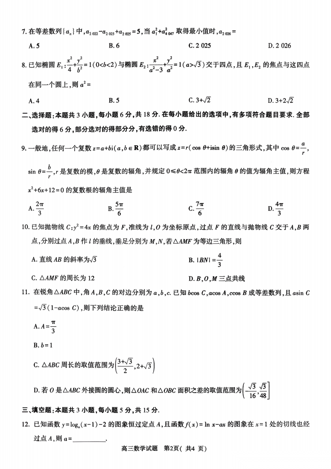 陕西省2026届高三下学期3月金太阳联考(26-287C) 陕西省2026届高三下学期3月金太阳联考(26-287C)