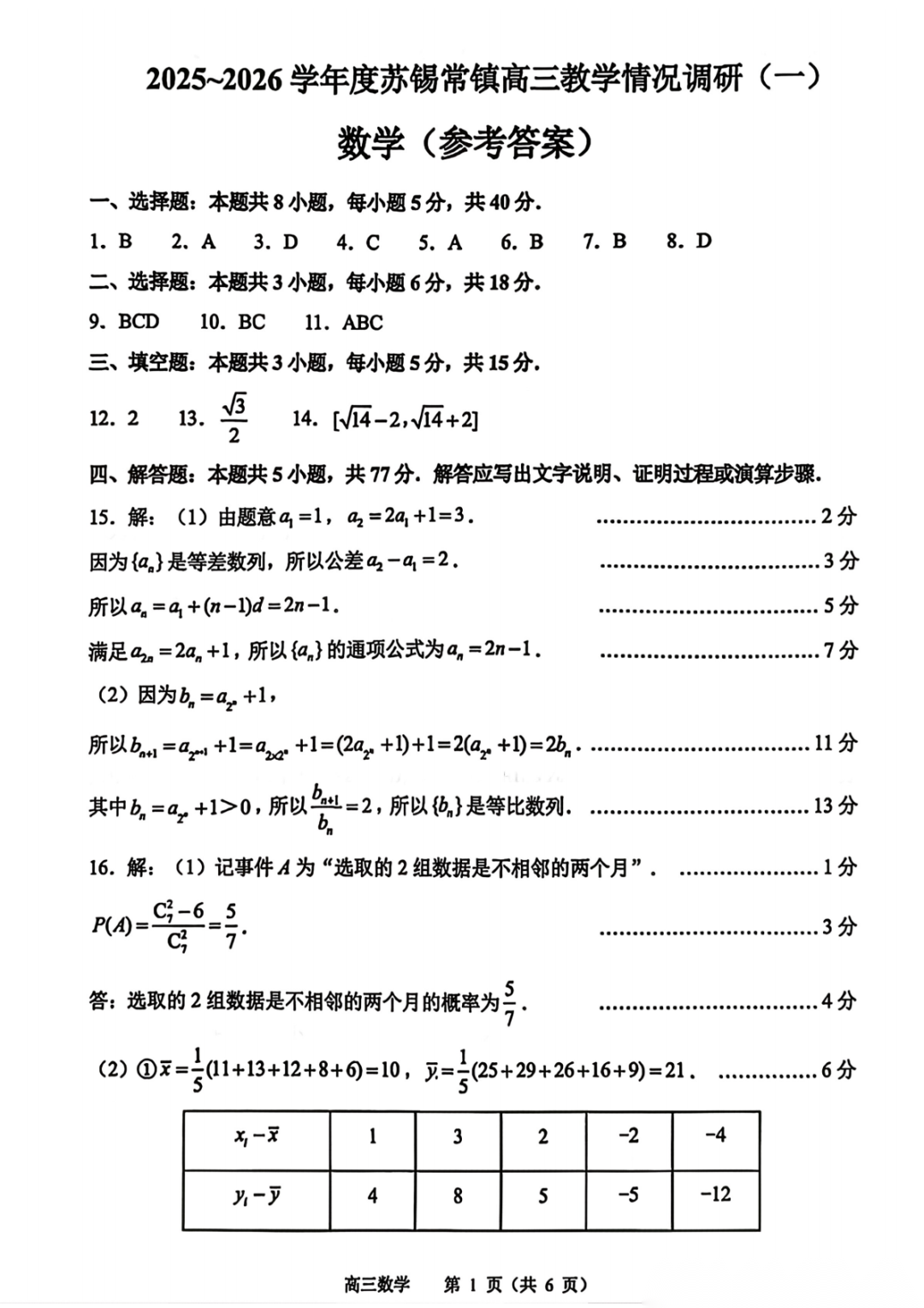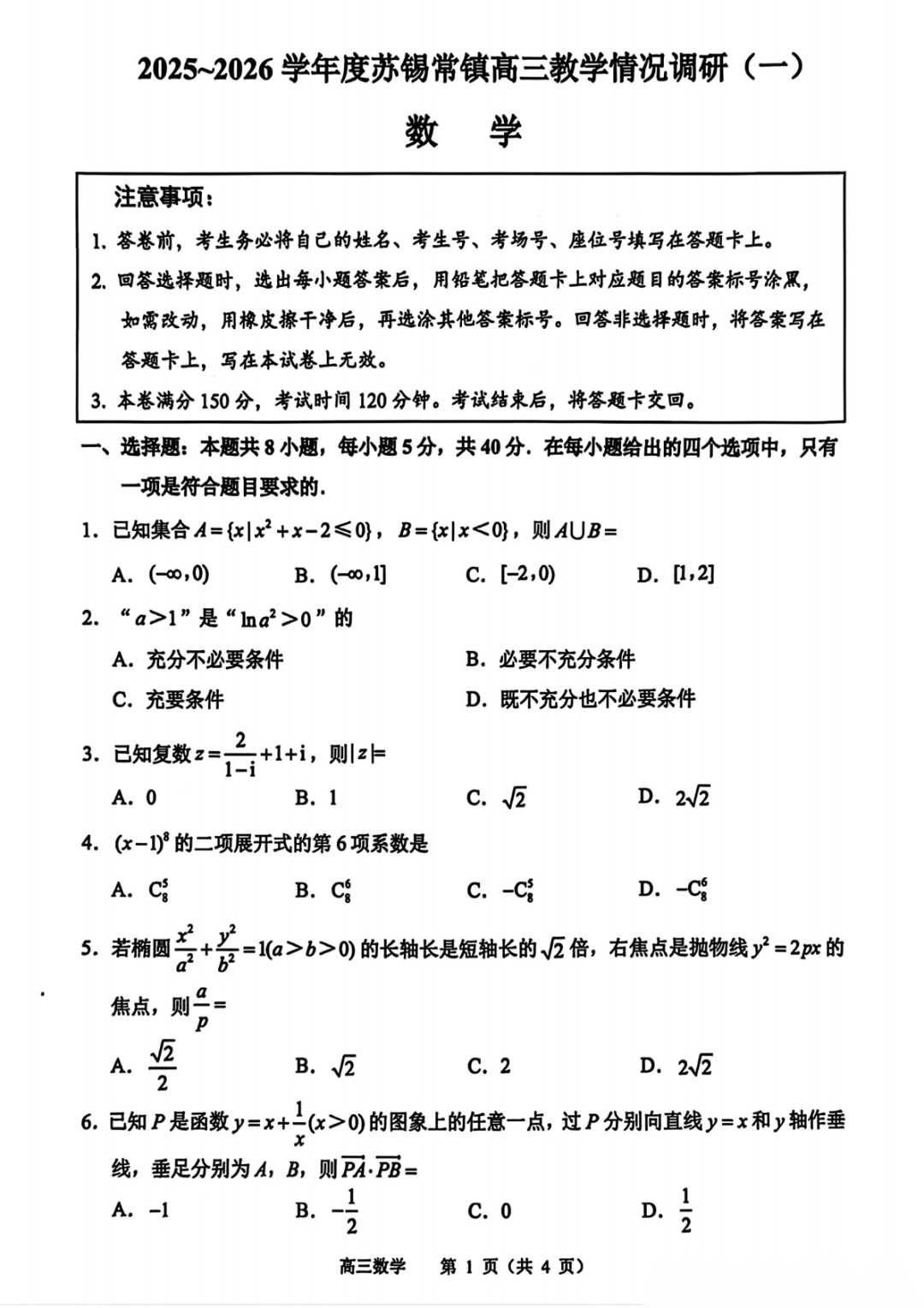 【苏锡常镇一模全科】江苏省苏锡常镇四市2026届高三教学情况调研(一)