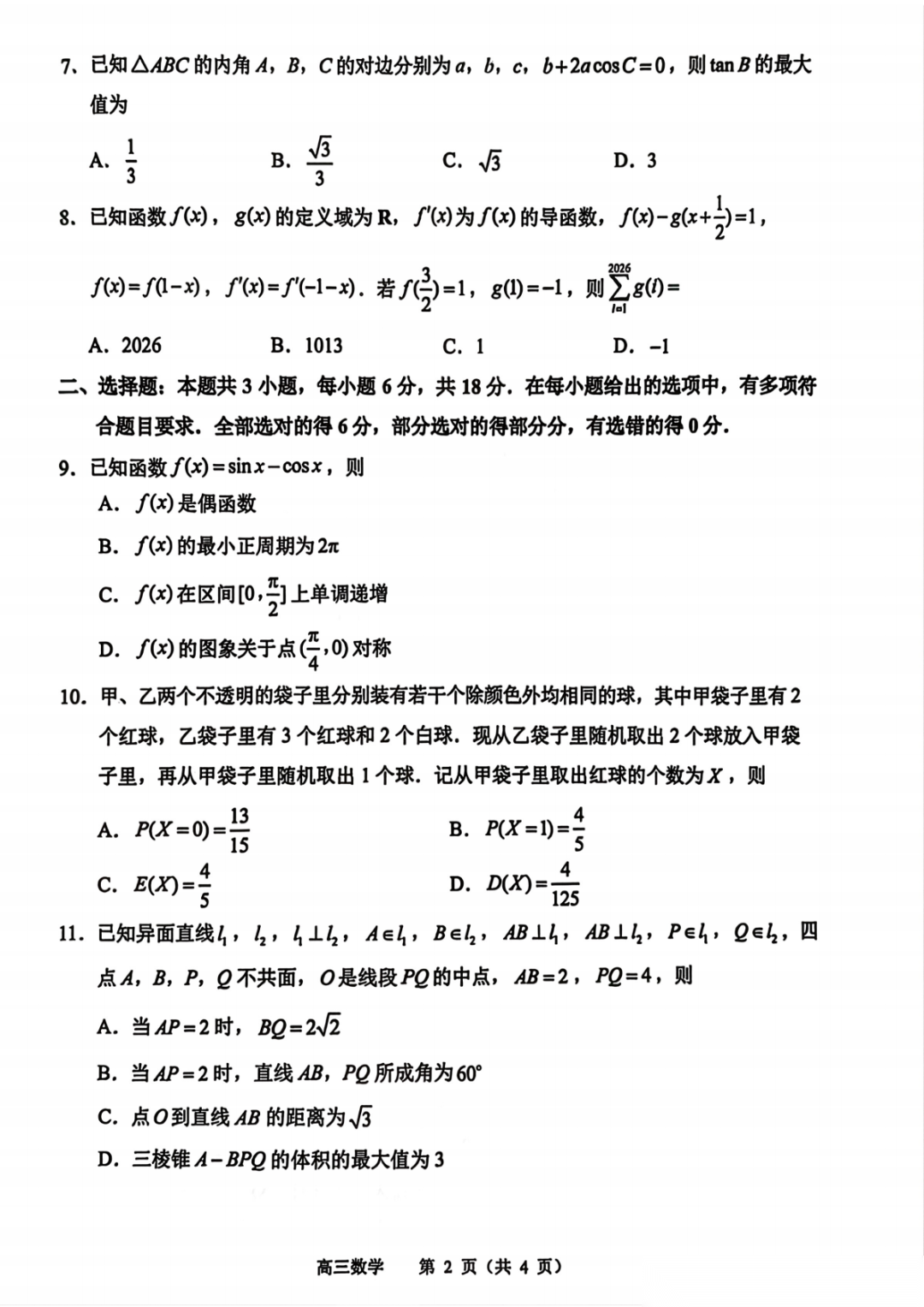 湖北省黄冈市2026届高三下学期3月模考(黄冈二模) 湖北省黄冈市2026届高三下学期3月模考(黄冈二模)