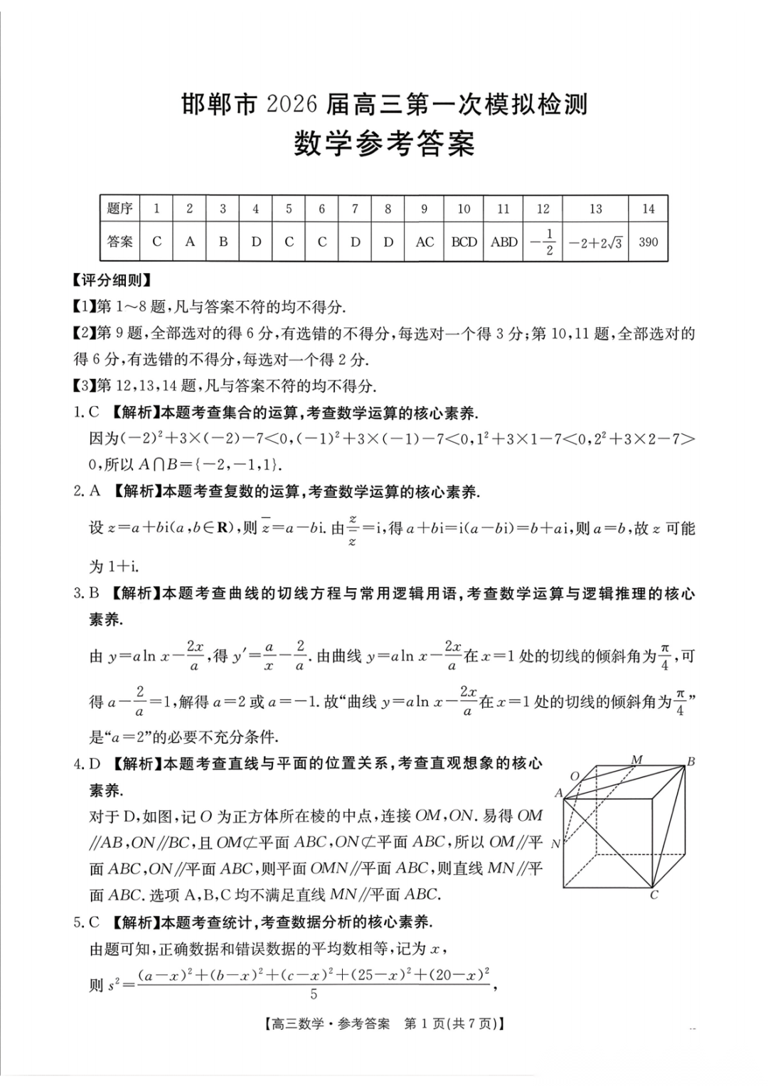 【邯郸一模全科】河北省邯郸市2026届高三第一次模拟检测