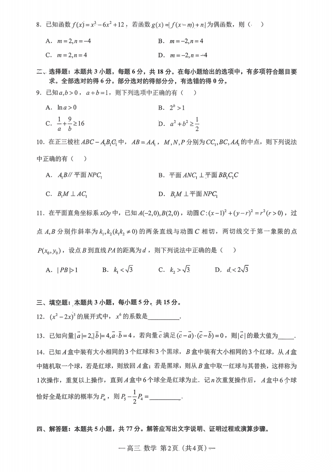 【南昌一模全科】江西省南昌市2026届高三年级三月测试