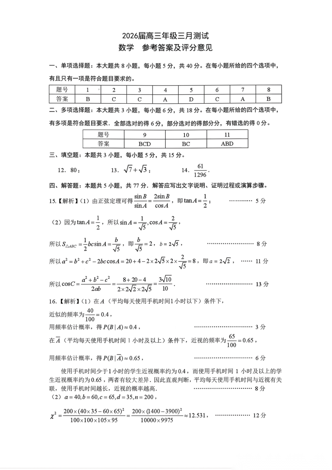 重庆市巴蜀中学2026届高三3月月考卷(七)语文、数学汇总 重庆市巴蜀中学2026届高三3月月考卷(七)语文、数学汇总