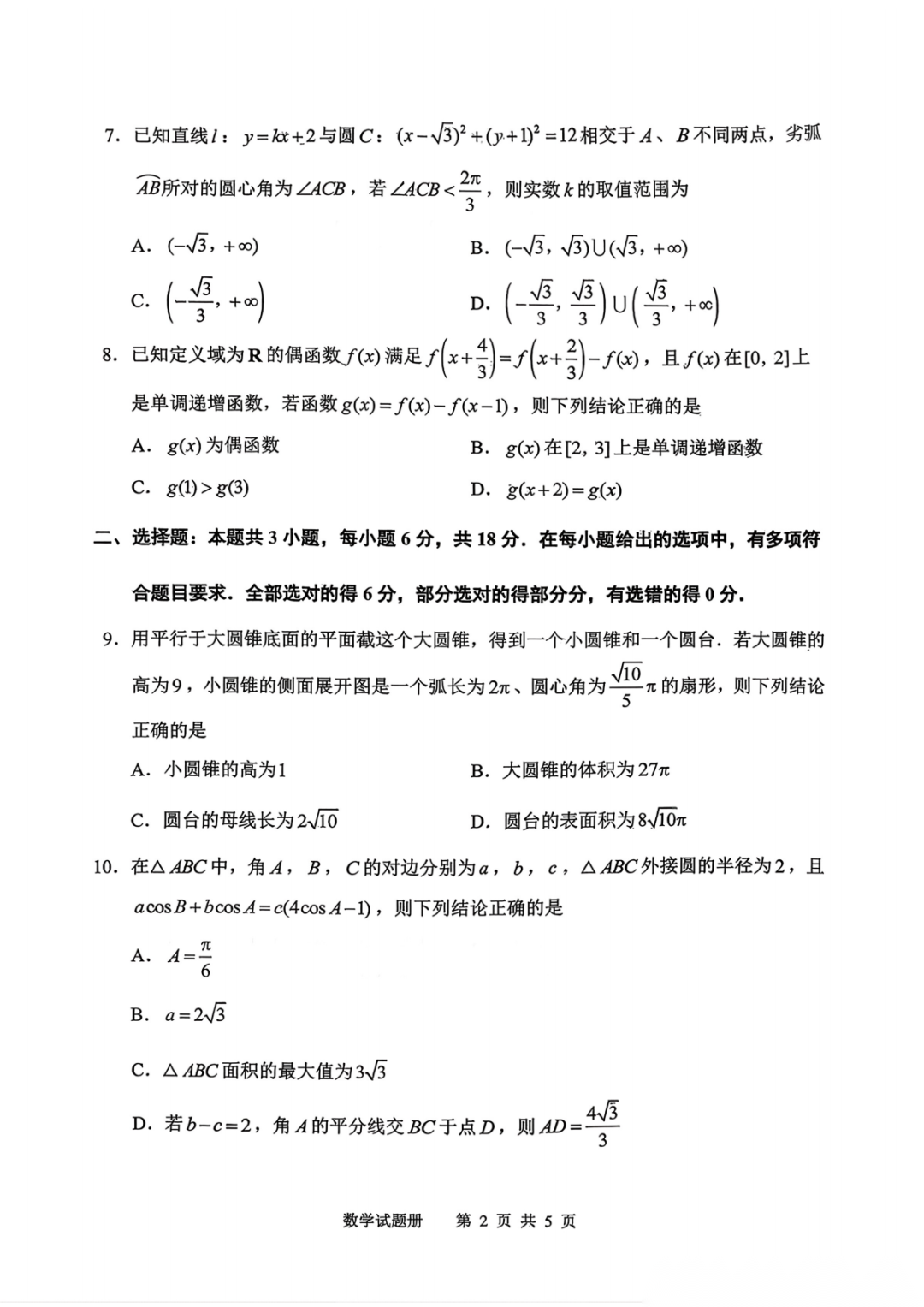 【邵阳二模全科】2026年湖南省邵阳市高三第二次联考试题卷 【邵阳二模全科】2026年湖南省邵阳市高三第二次联考试题卷