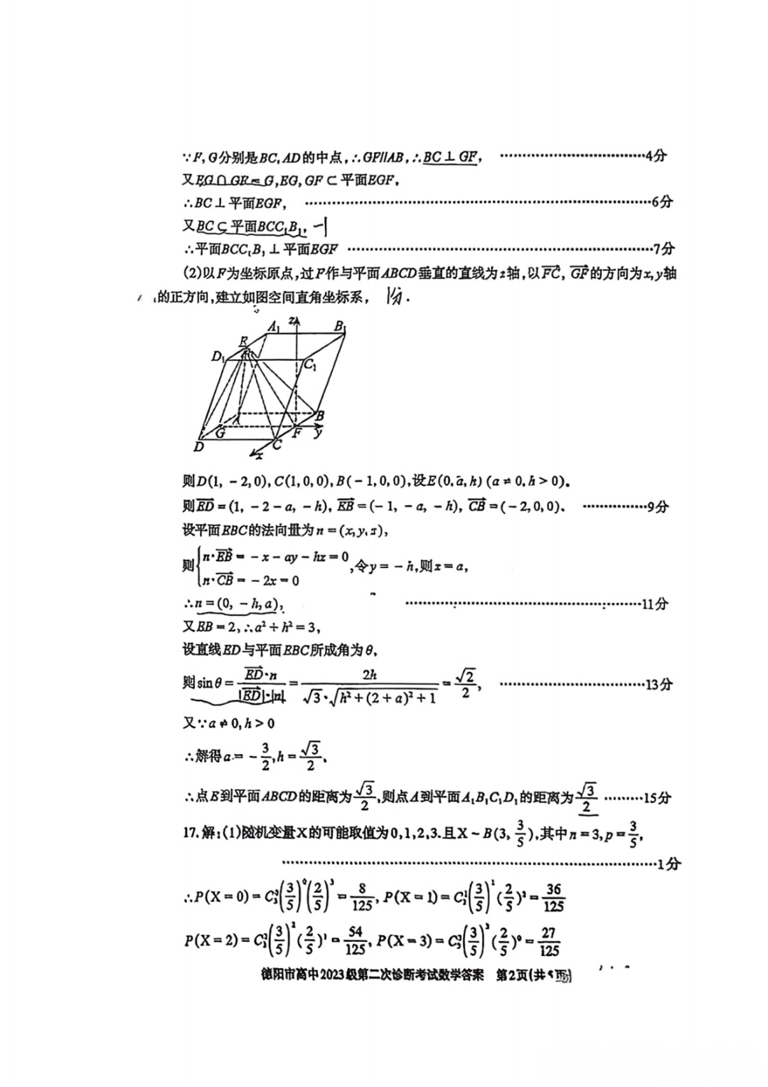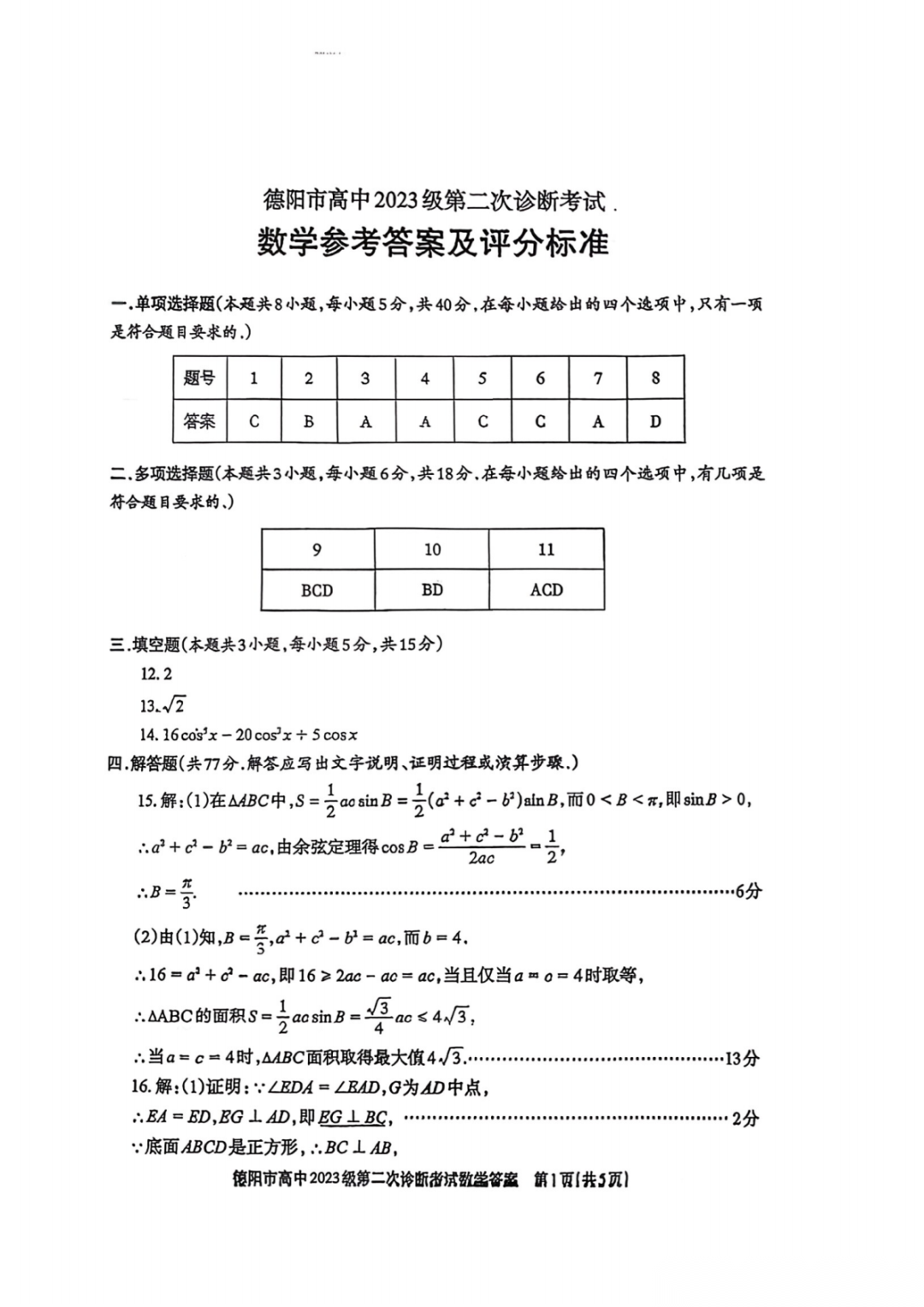 【德阳二诊全科】德阳市高中2023级高三第二次诊断性考试