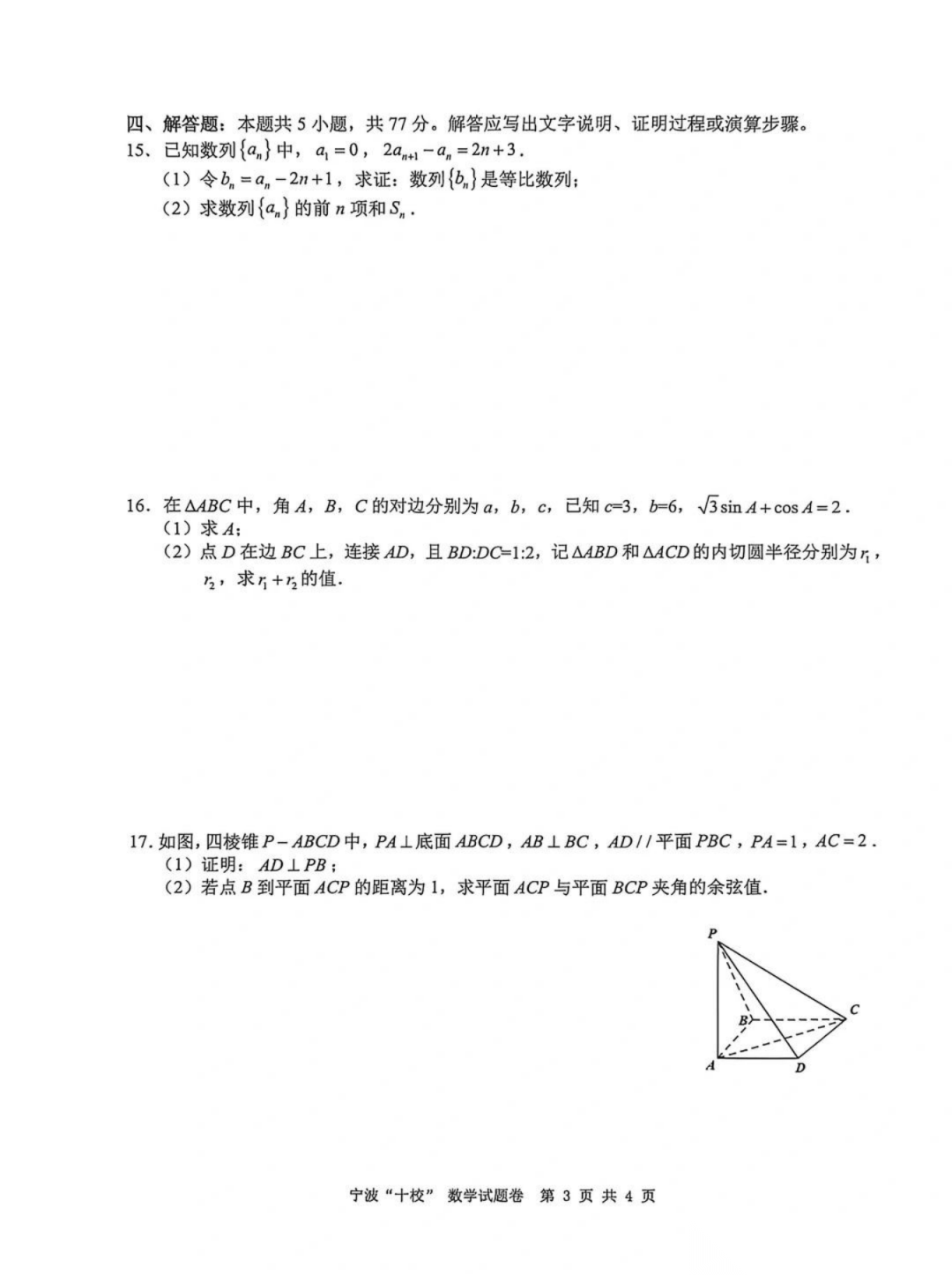 【金丽衢十二联考】浙江省金丽衢十二校2025/2026学年高三下学期第二次联考 试卷及答案解析【全科】