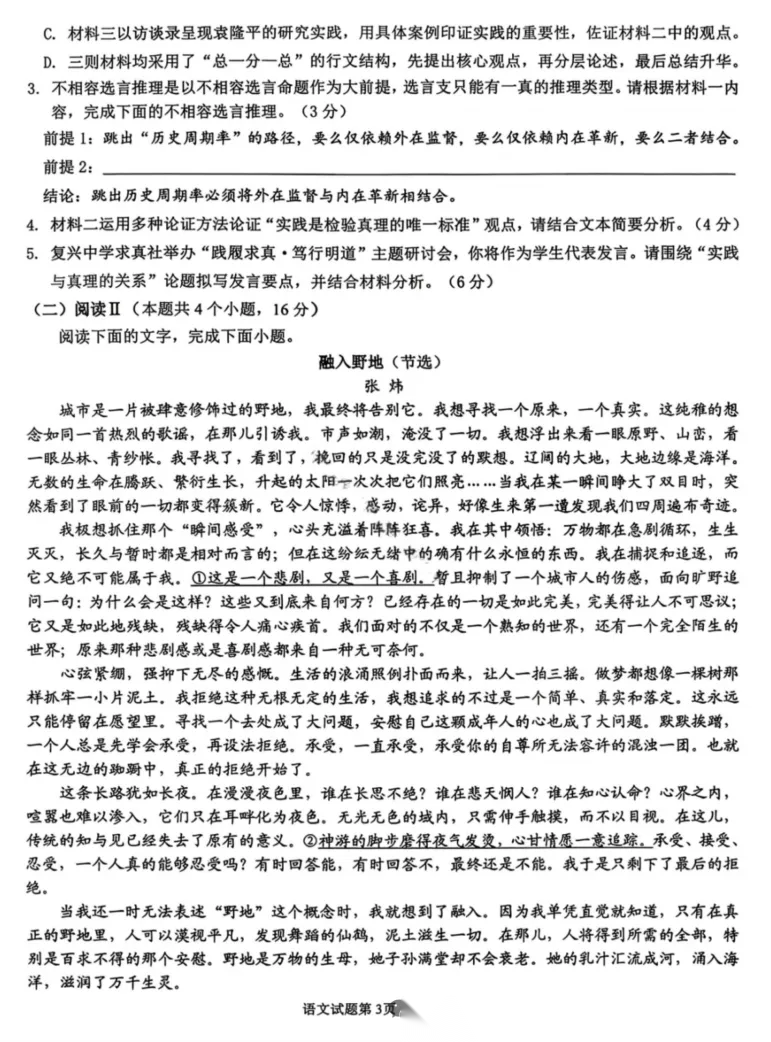 2026届湖北省楚天协作体高三3月联考试卷及答案解析 2026届湖北省楚天协作体高三3月联考试卷及答案解析