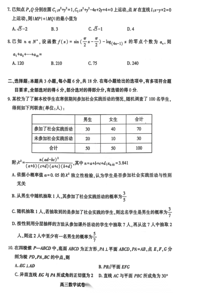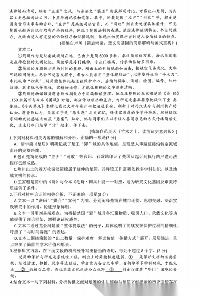 2026届湖北省楚天协作体高三3月联考试卷及答案解析 2026届湖北省楚天协作体高三3月联考试卷及答案解析