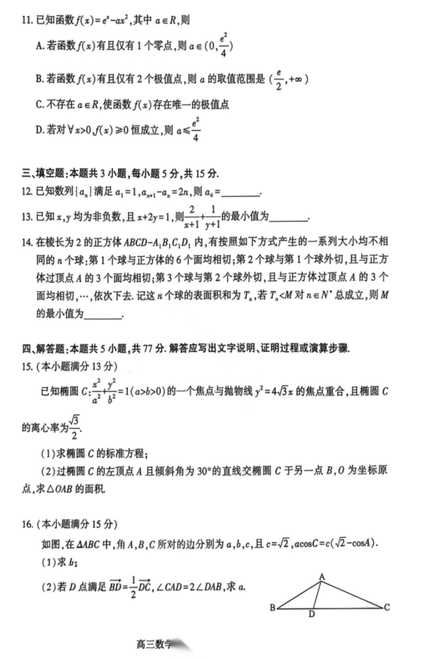 【安徽卷】安徽省安庆市2026年高三年级模拟考试(安庆二模)(3.18-3.20) 全科试题卷+答案 【安徽卷】安徽省安庆市2026年高三年级模拟考试(安庆二模)(3.18-3.20) ...