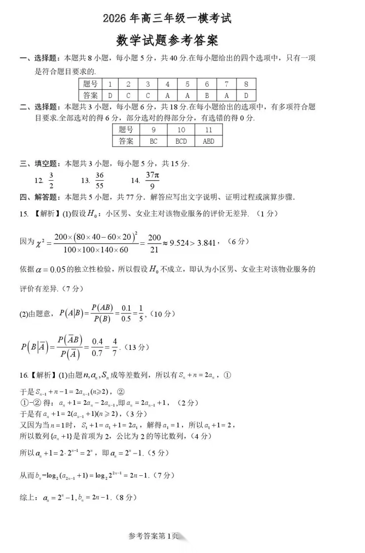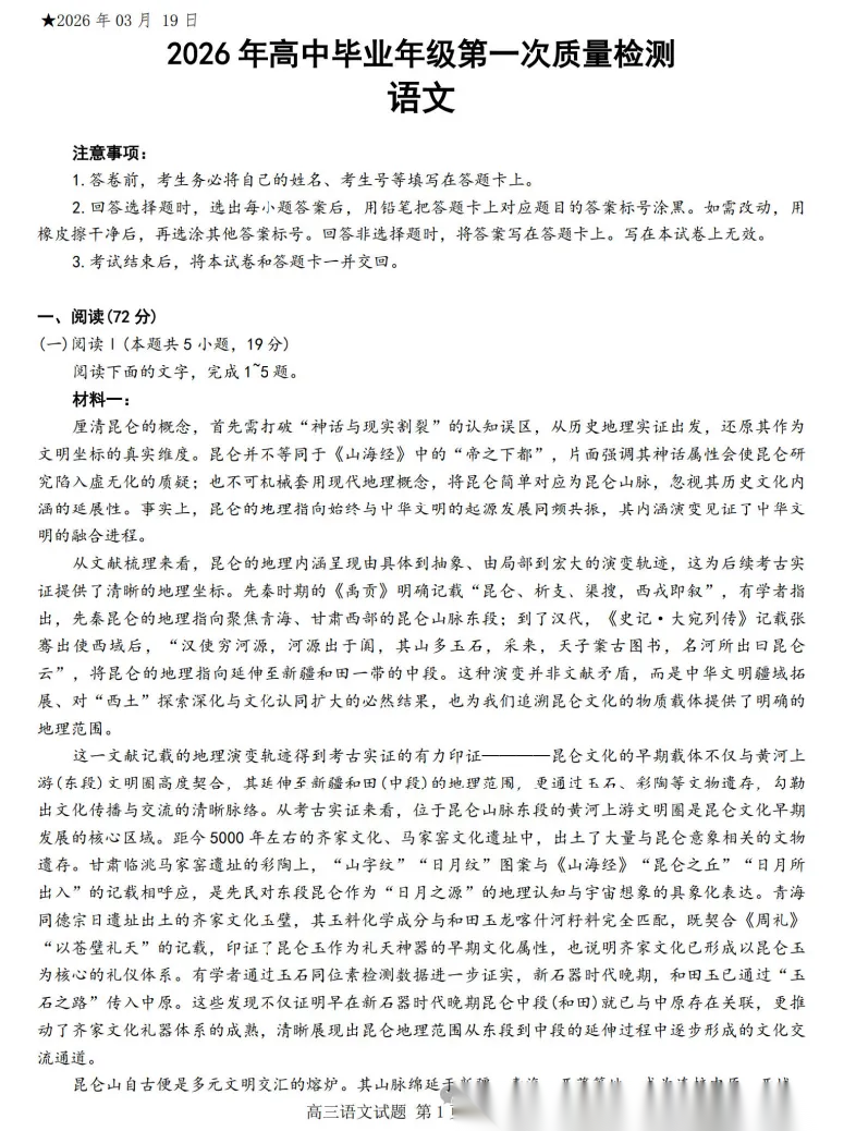 【江西卷】江西省南昌市2026届南昌市高三年级三月测试暨一模考试(南昌一模)(3.18-3.20) 全科试题卷+答案 【江西卷】江西省南昌市2026届南昌市高三年级三月测试暨一模考试(南昌一模)(3.18-3.20) 全科...