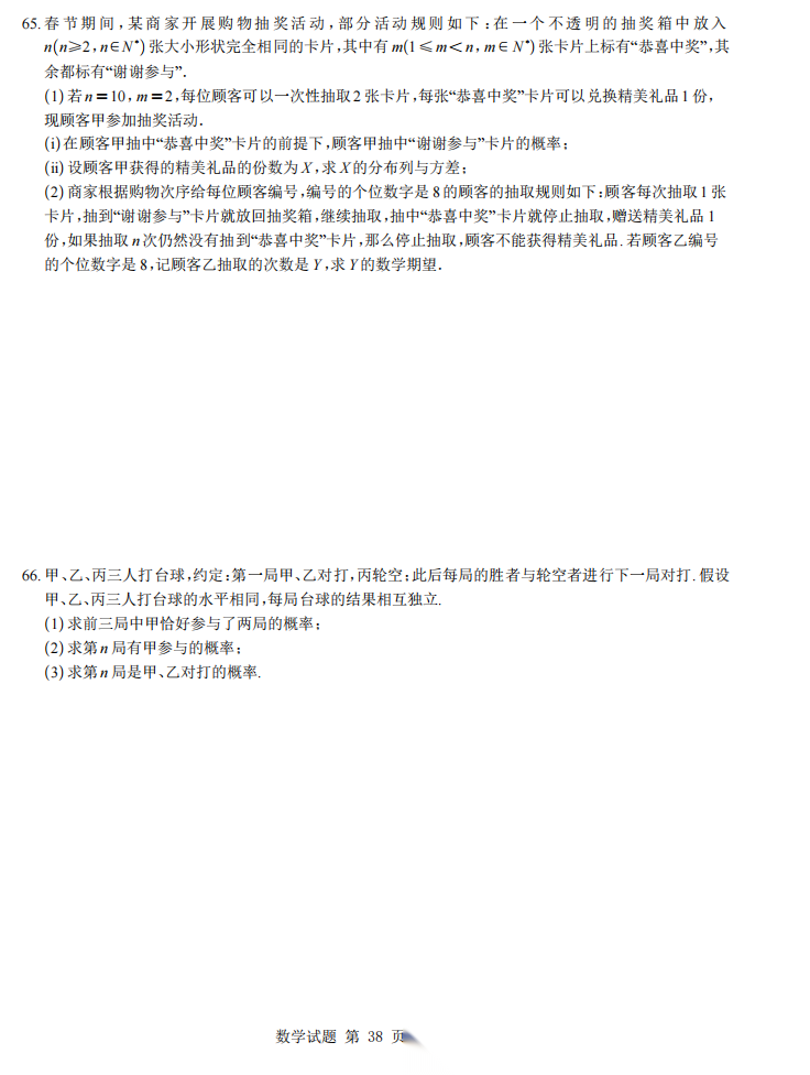 【独家发布】【高考数学】【模考难题合集】2026年2月以后至今近期概率较难大题(66道大题)合集(含解析答案)(88页完整版)